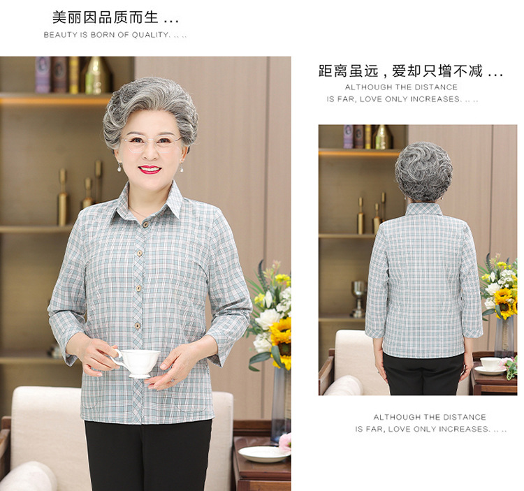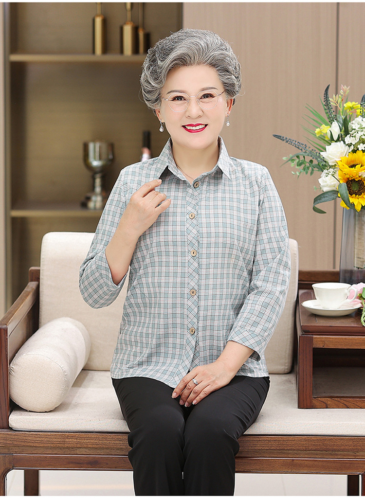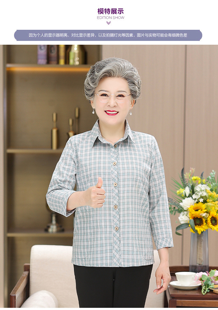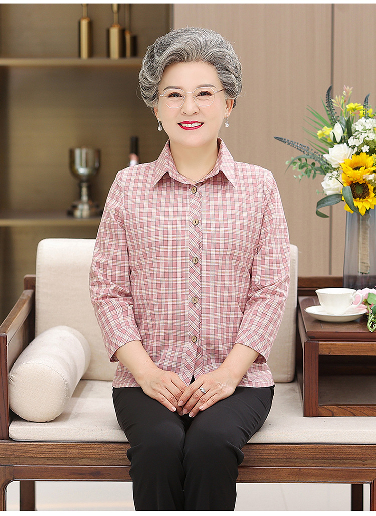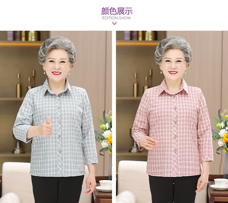 中老年人衬衫女全棉奶奶夏装七分袖上衣妈妈装衬衣老太太纯棉衣服