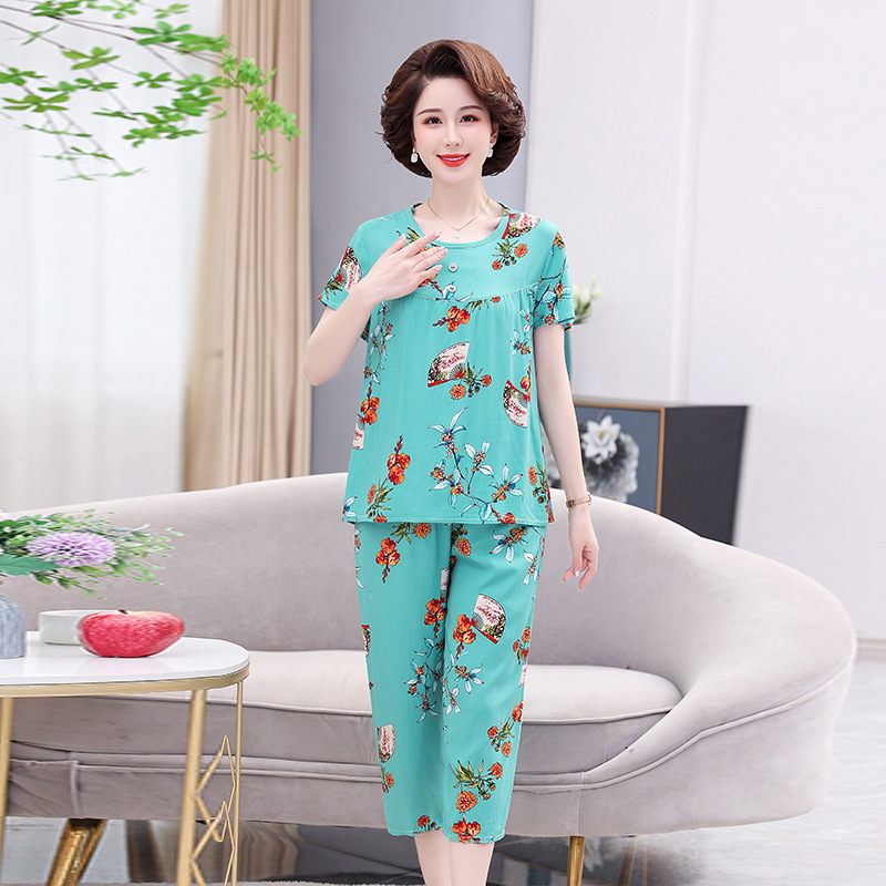 棉绸睡衣女装家居服中老年人造棉夏季妈妈装短袖七分裤薄款两件套