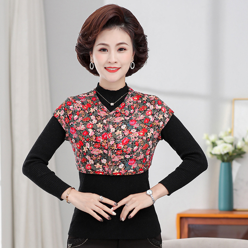 中老年秋冬保暖护肩防寒妈妈装驼绒棉护颈老人短袖马甲护肩膀坎肩