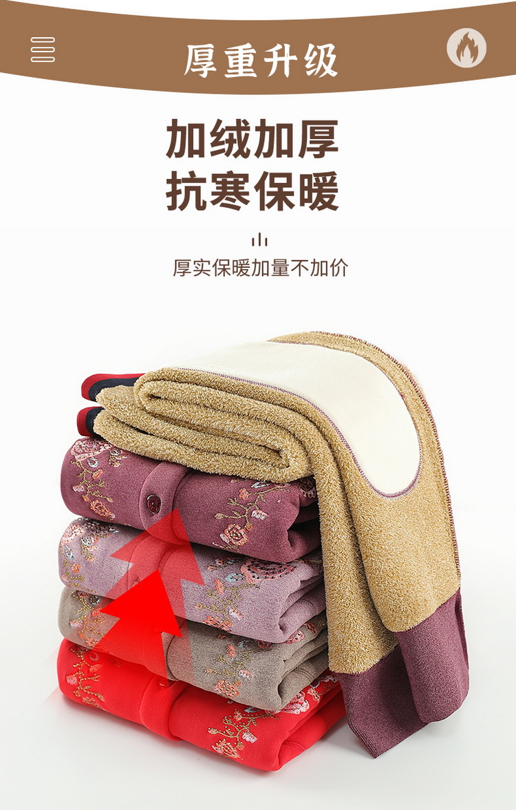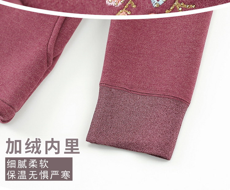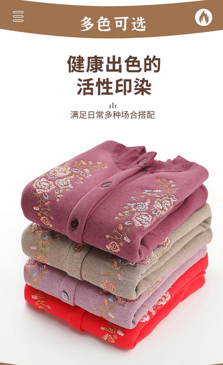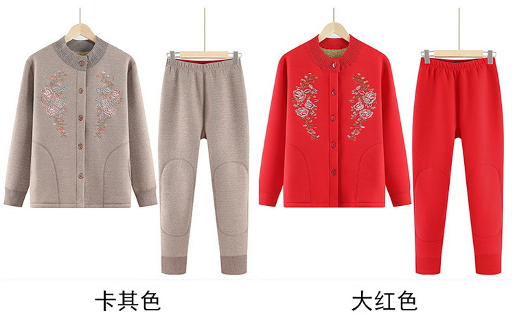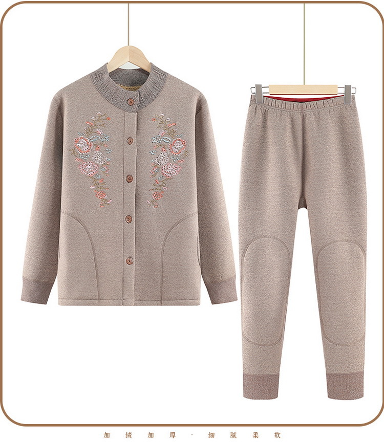 奶奶秋冬开衫保暖内衣中老年人女妈妈加绒加厚羊羔绒外套两件套装