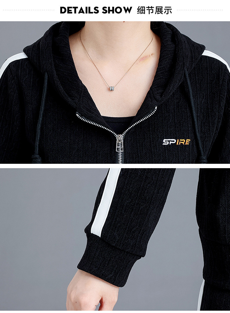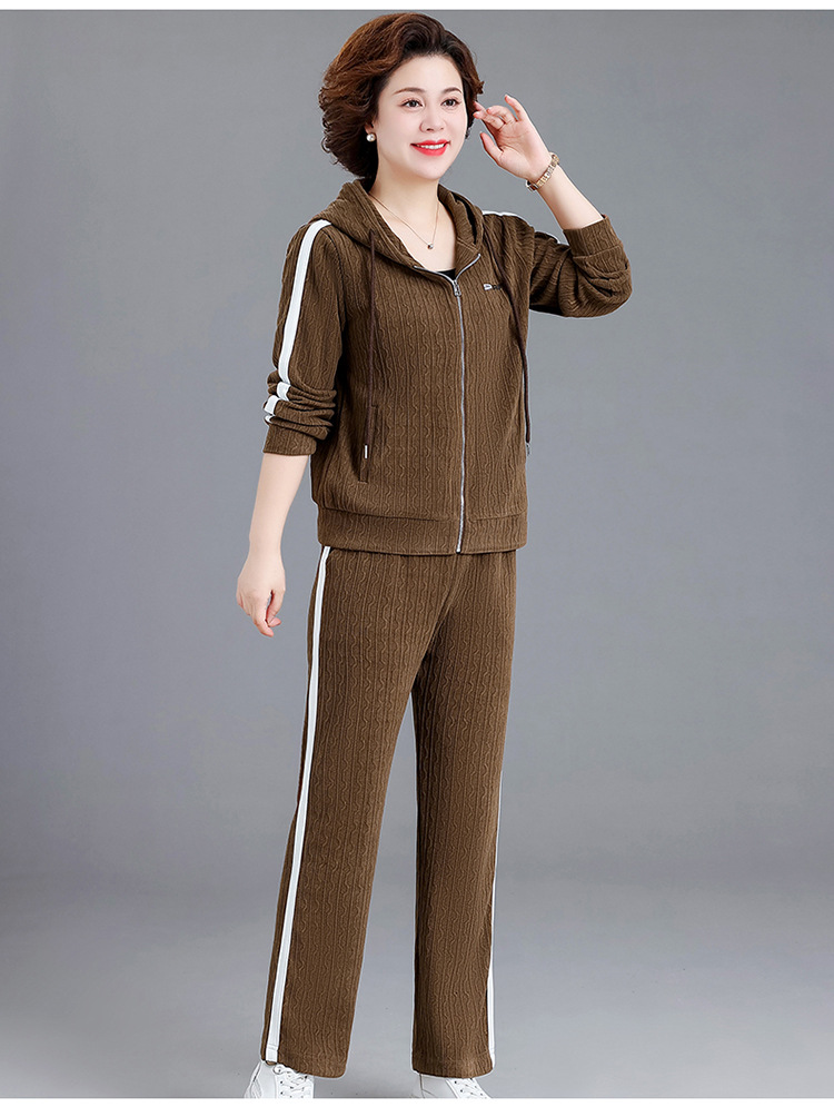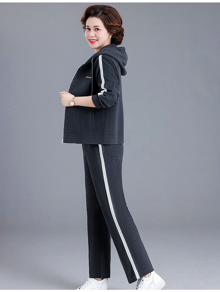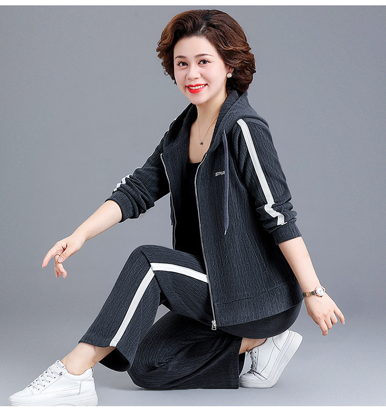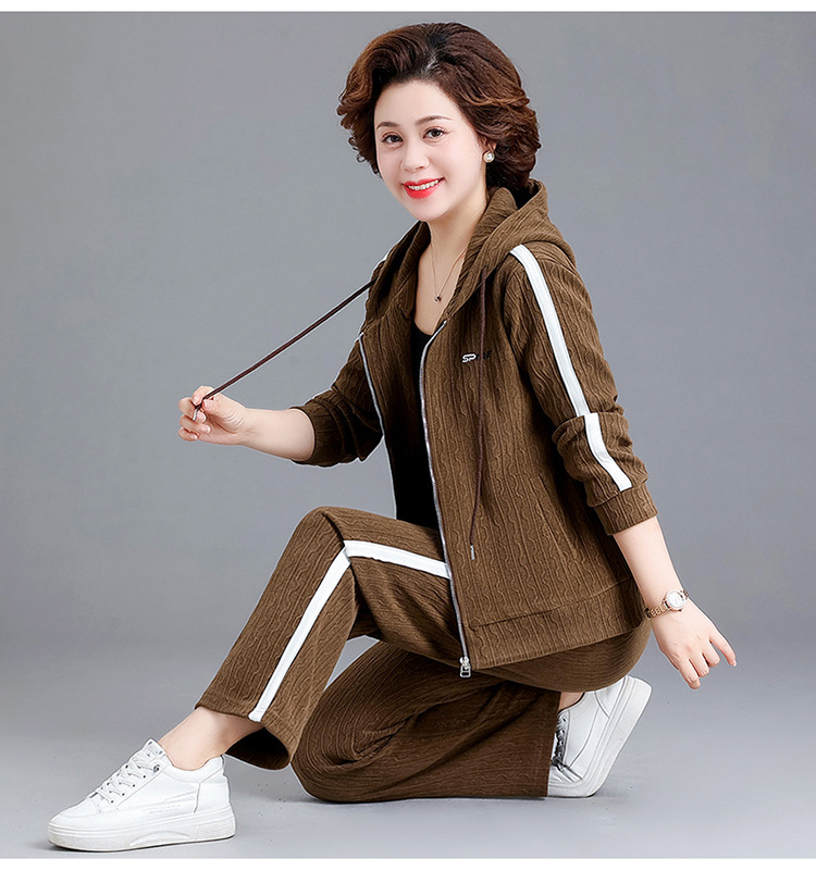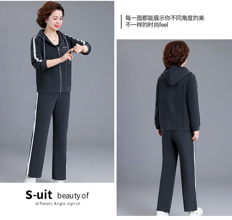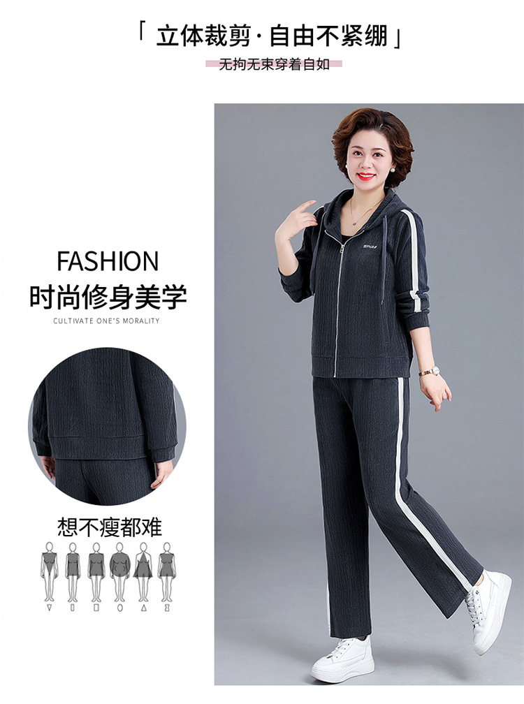 妈妈春秋装休闲运动套装女连帽卫衣中老年女装秋季新款时尚两件套