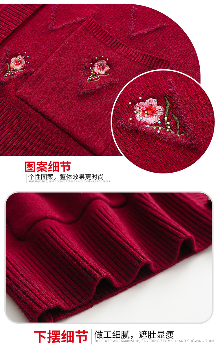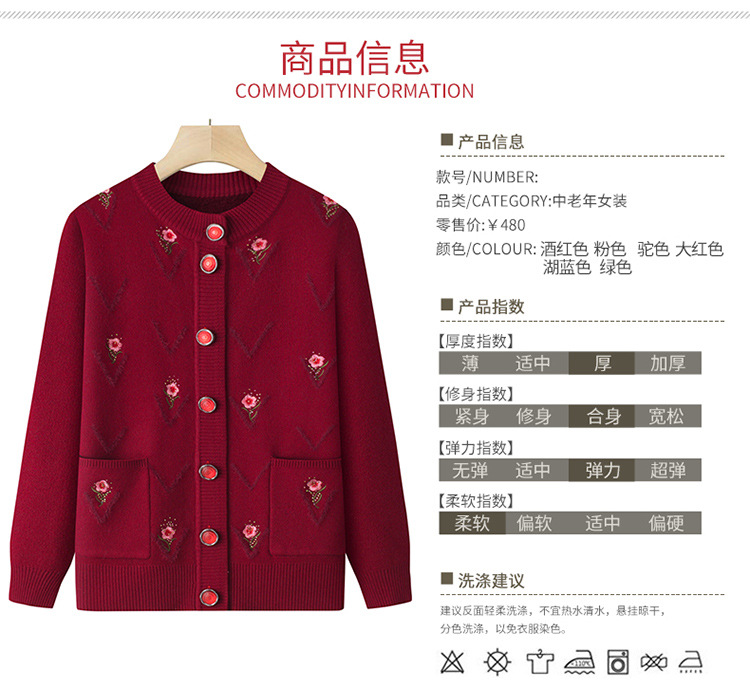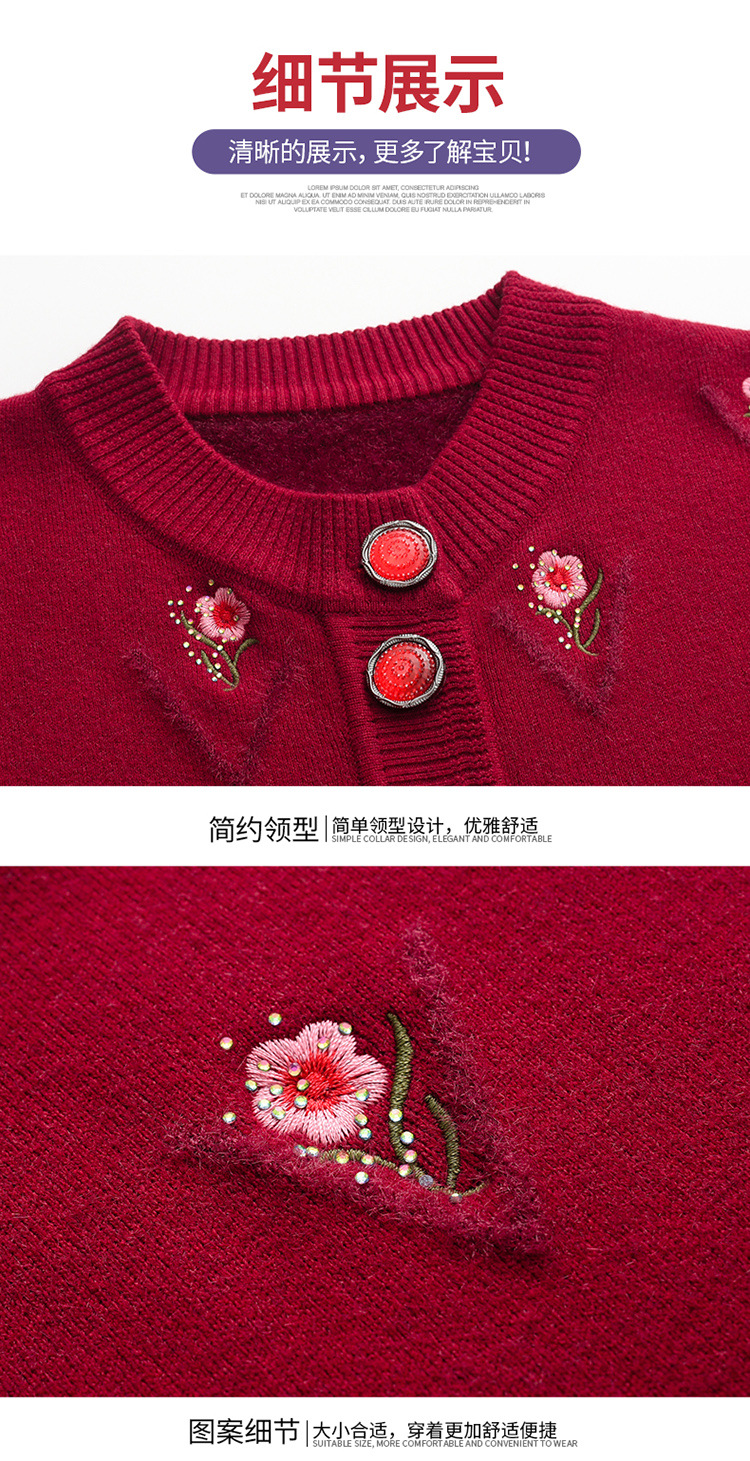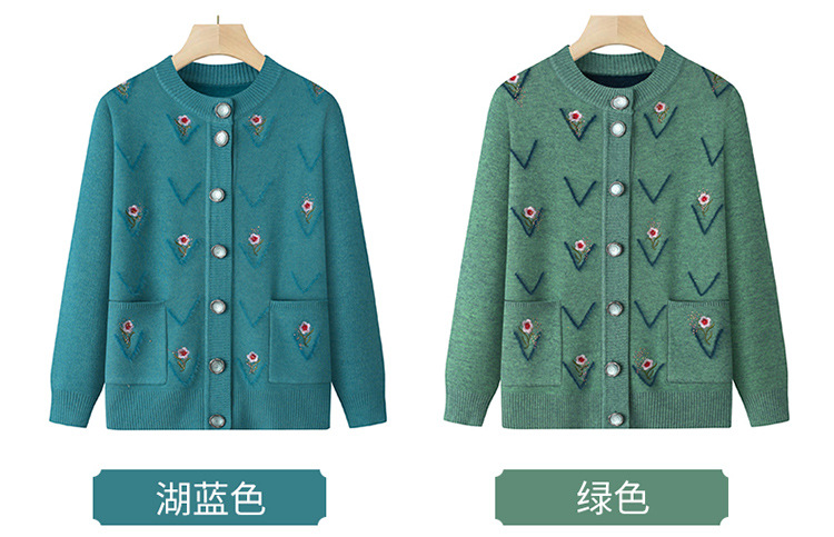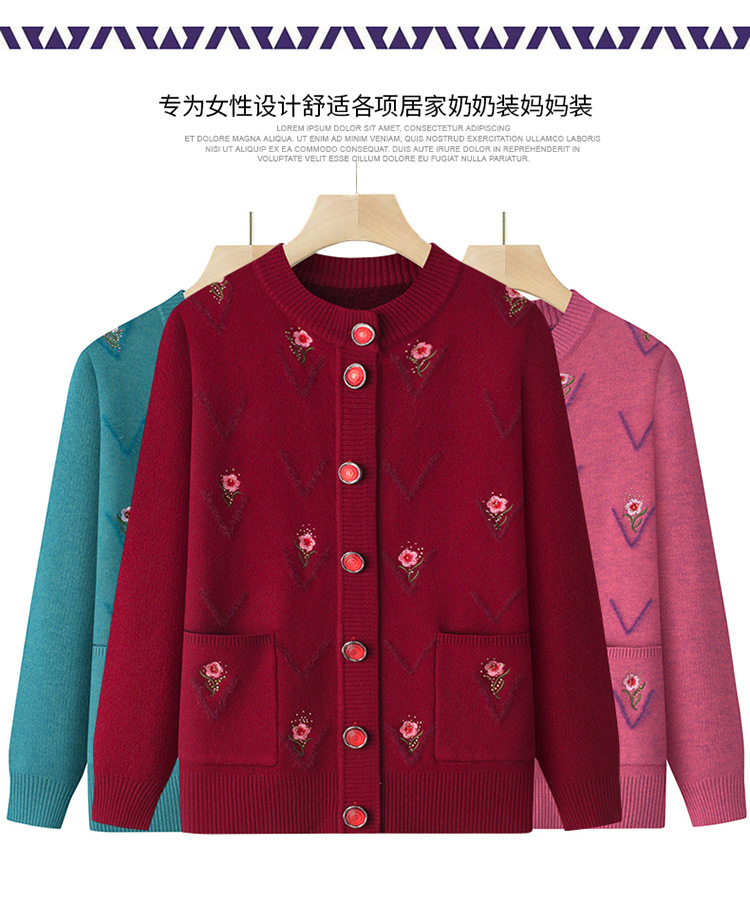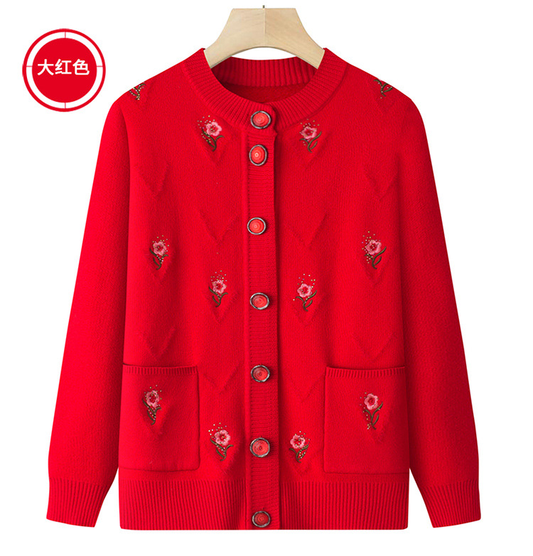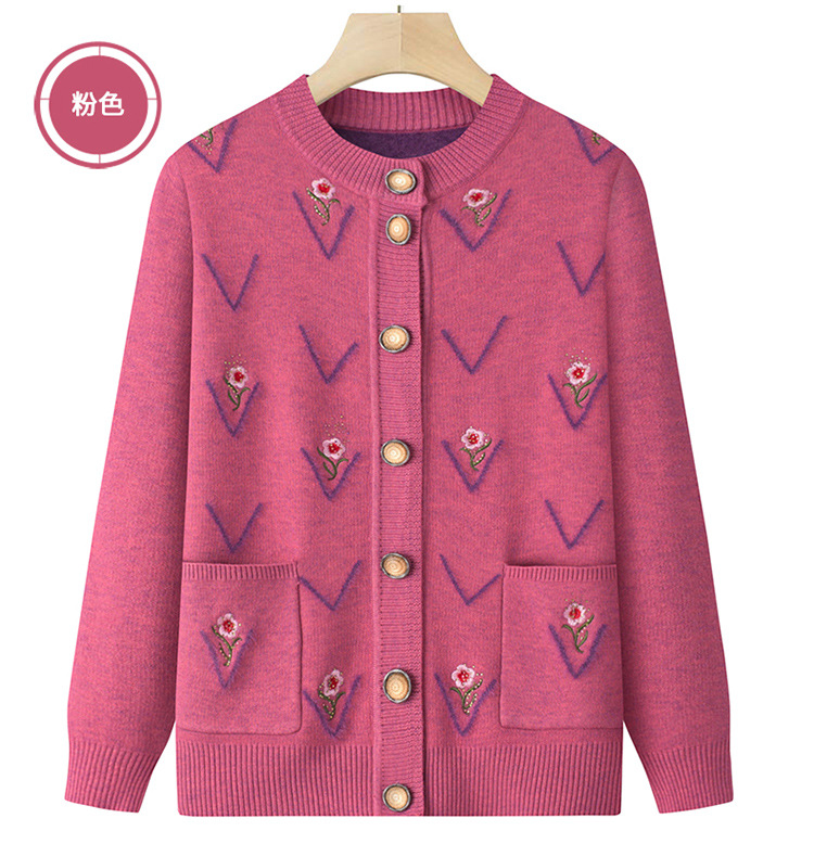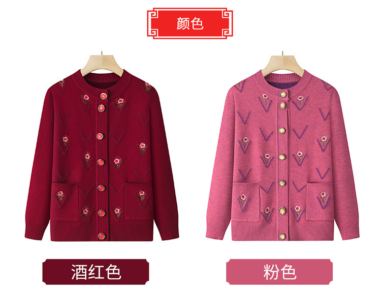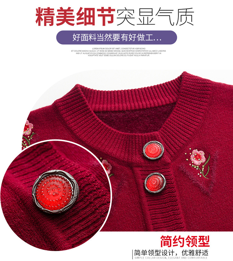 中老年女装加绒针织开衫50岁妈妈秋冬季绣花毛衣奶奶洋气保暖外套
