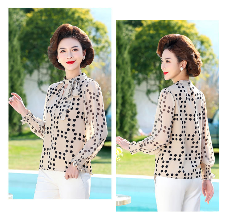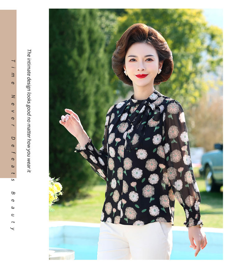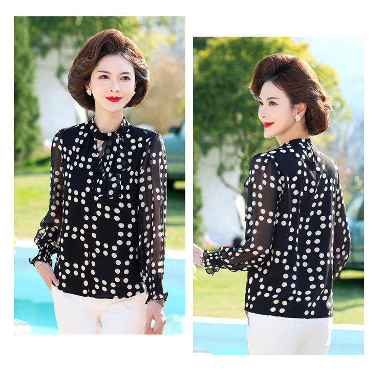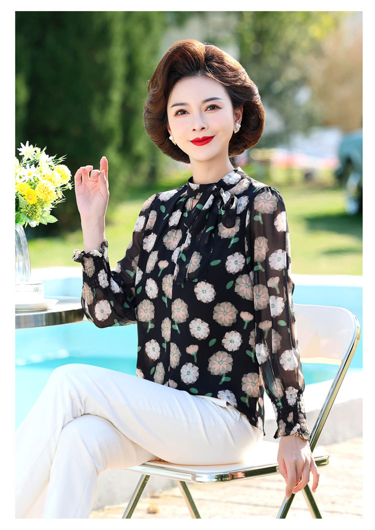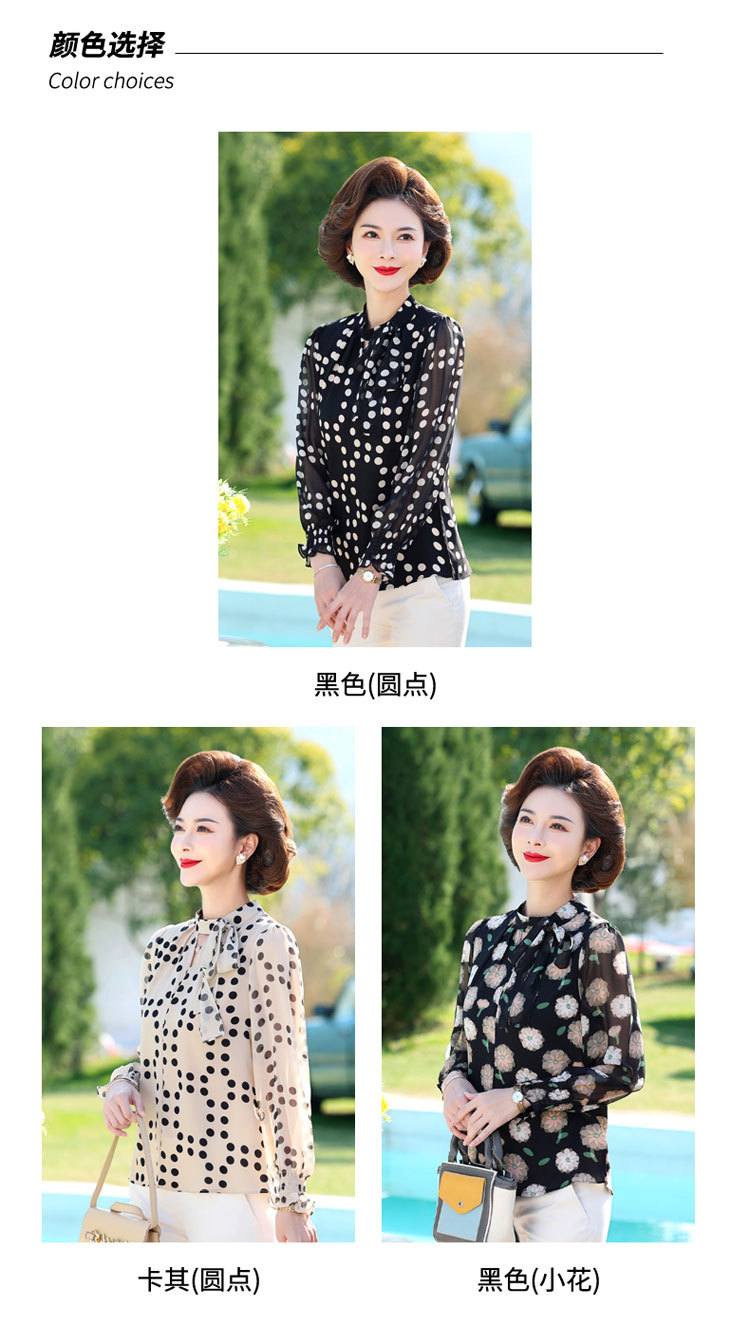 中老年女长袖衬衫妈妈装春秋新款雪纺衫2023秋季中年妇女打底小衫