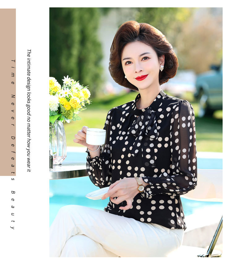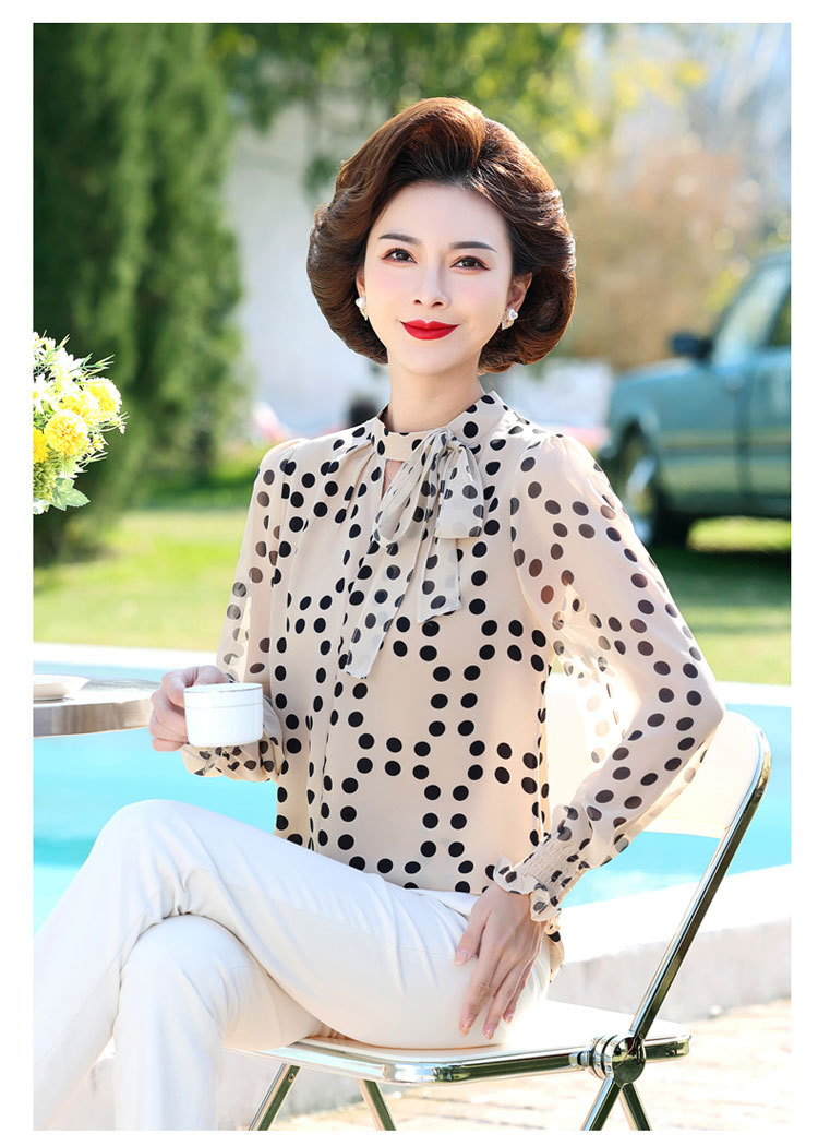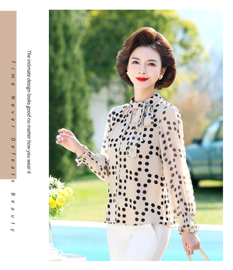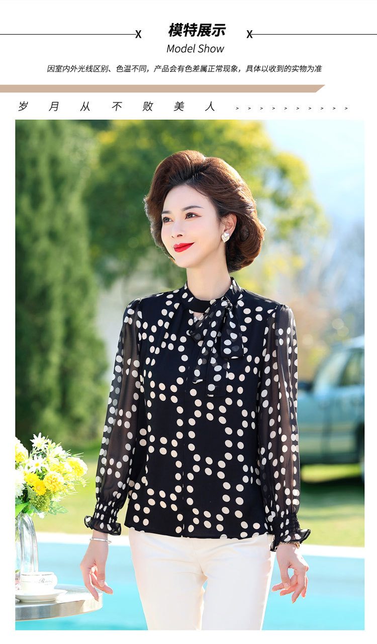 中老年女长袖衬衫妈妈装春秋新款雪纺衫2023秋季中年妇女打底小衫