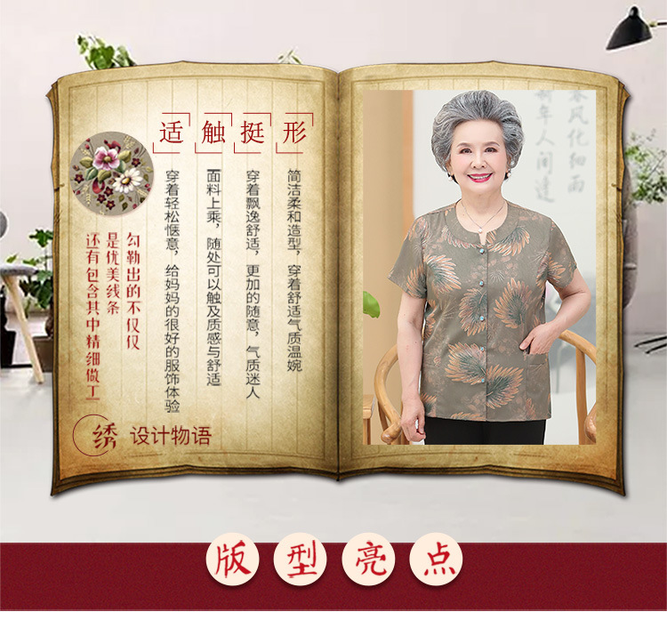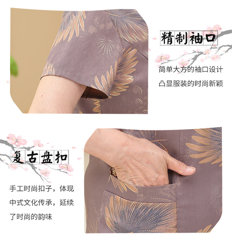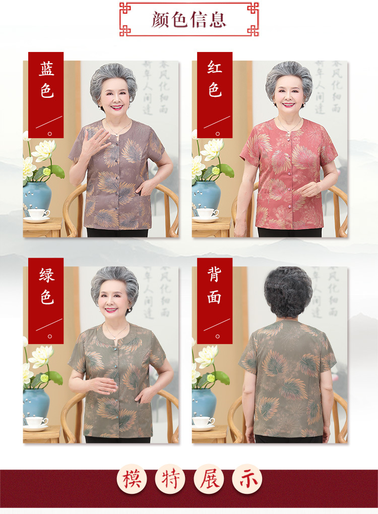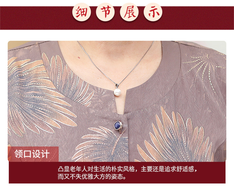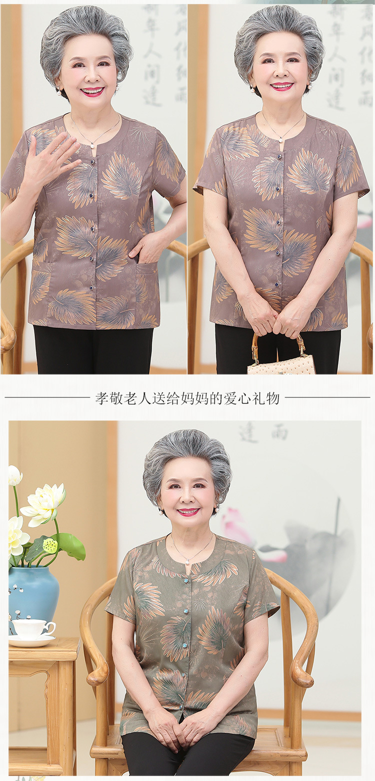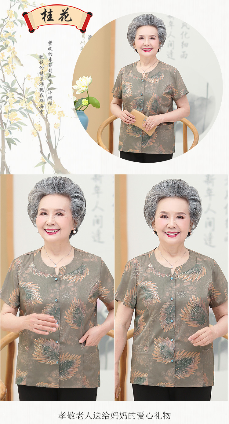 妈妈夏装短袖衬衫中老年女70岁老太太上衣洋气奶奶圆领衬衣带口袋