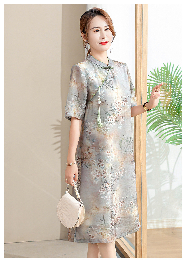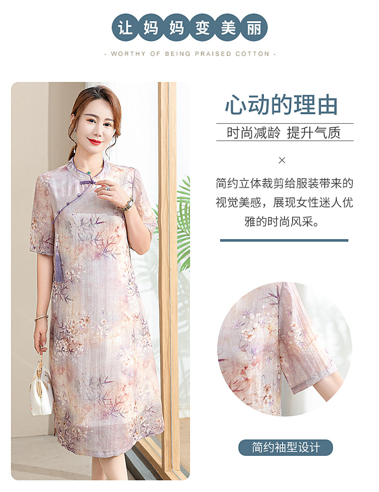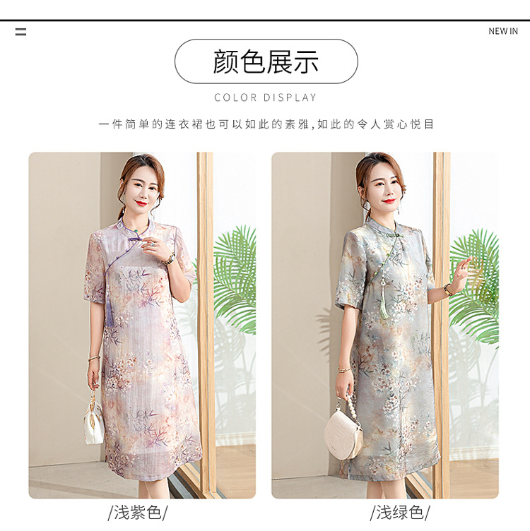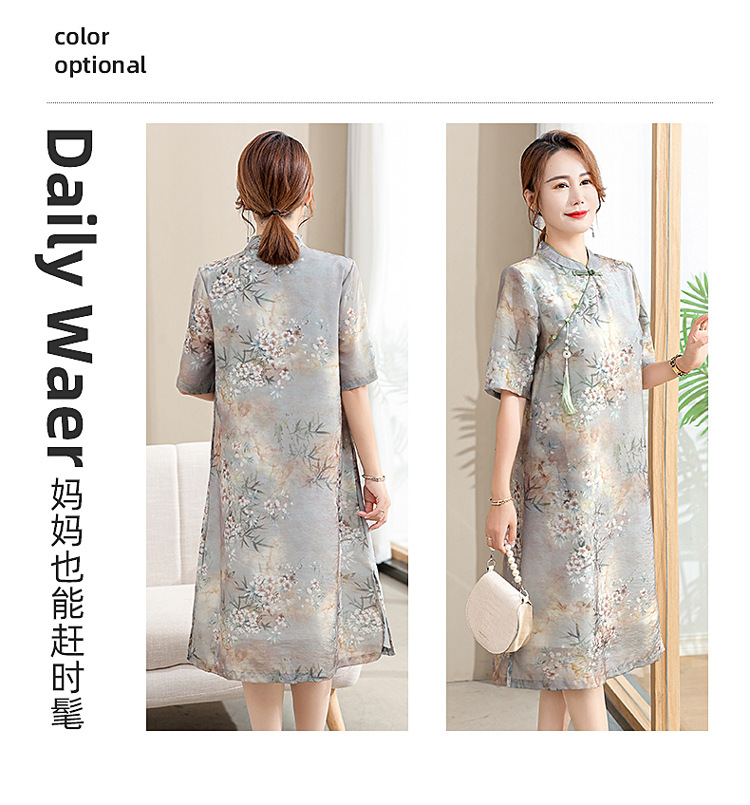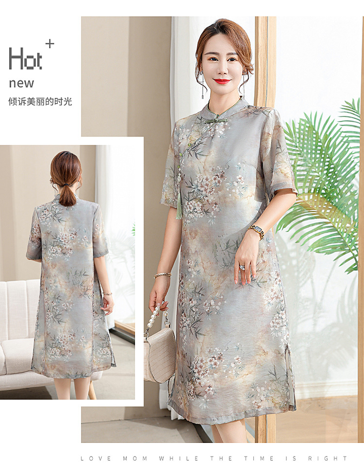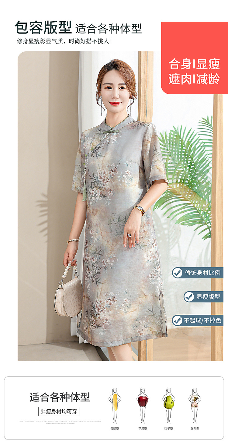 中年妈妈夏装连衣裙新款洋气改良旗袍中老年女装夏季时尚短袖裙子