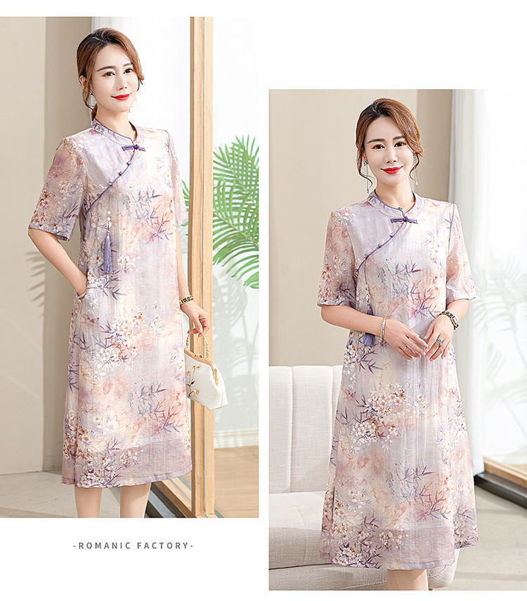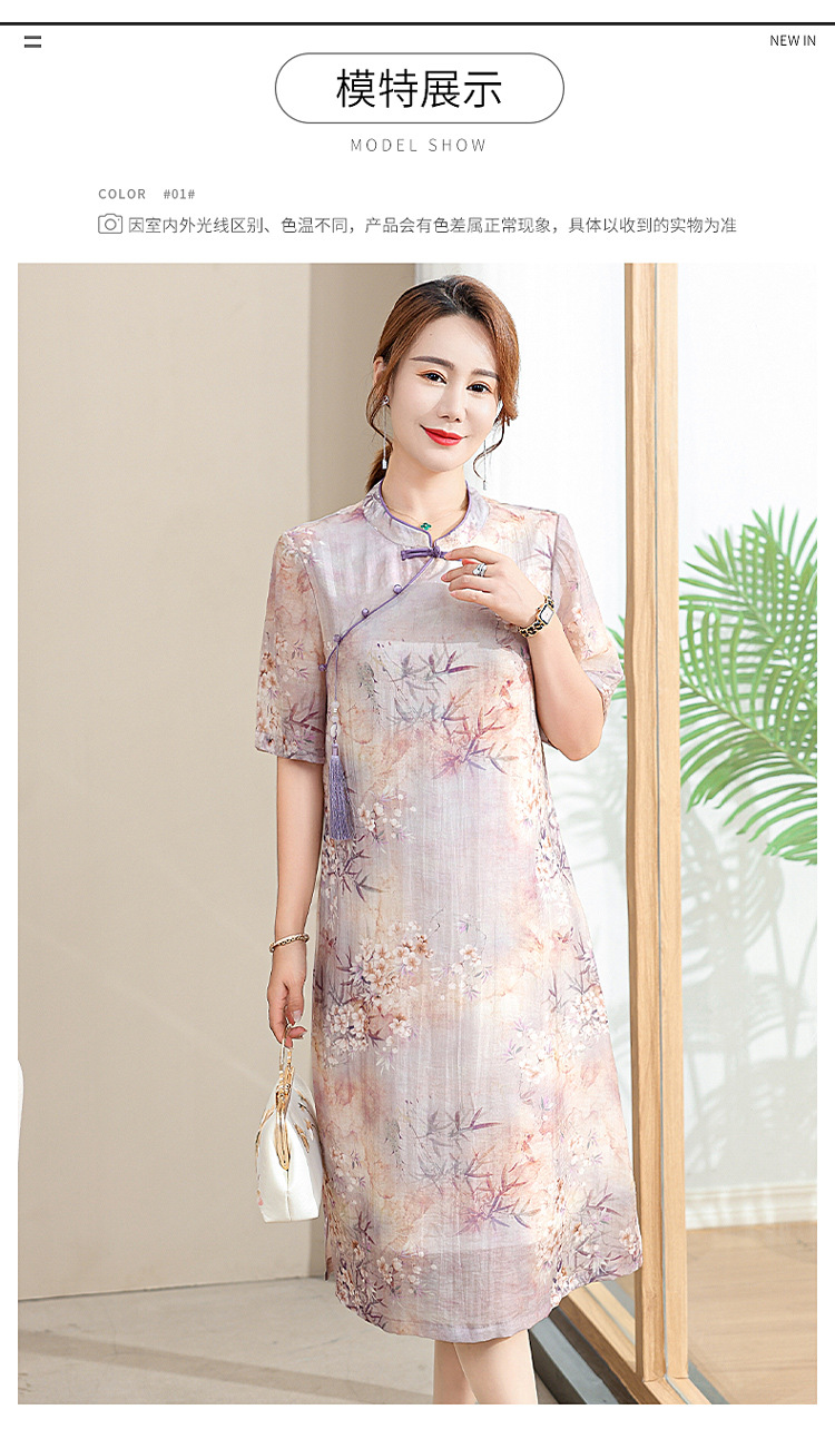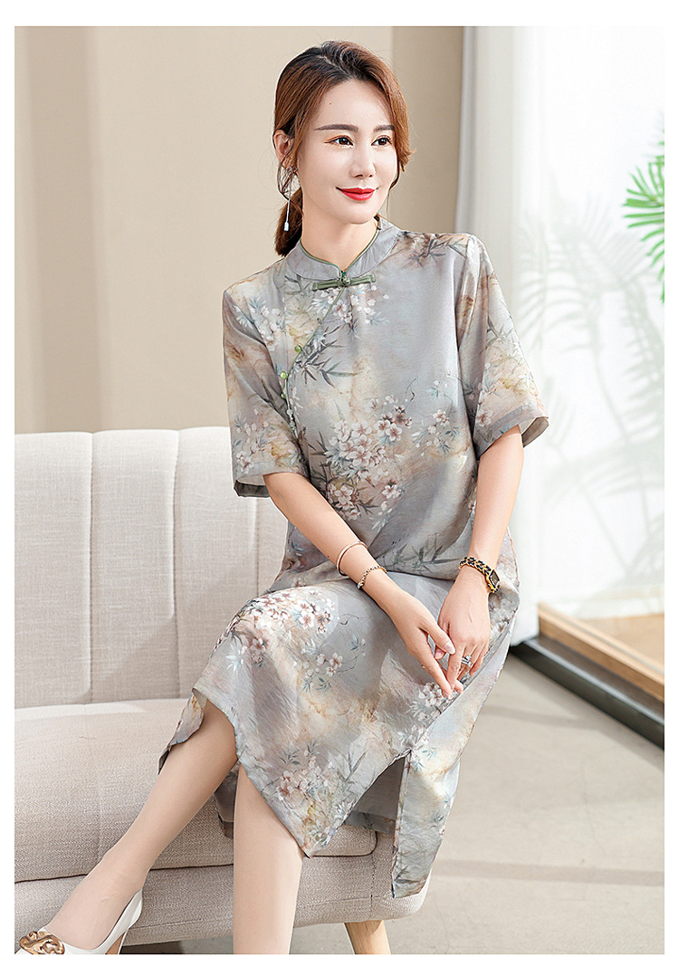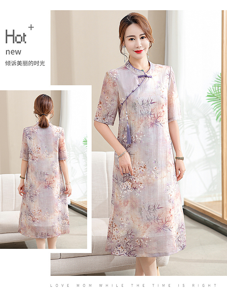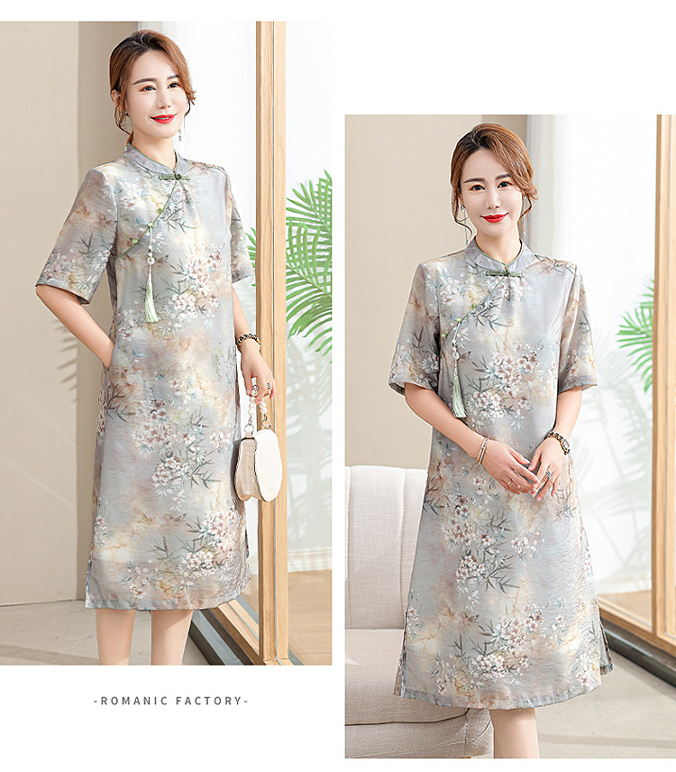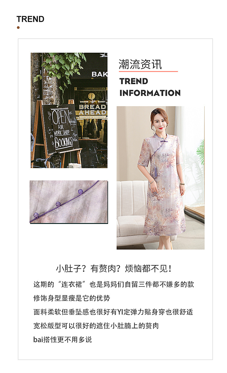 中年妈妈夏装连衣裙新款洋气改良旗袍中老年女装夏季时尚短袖裙子