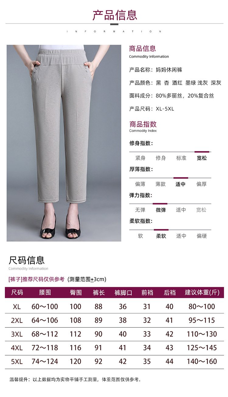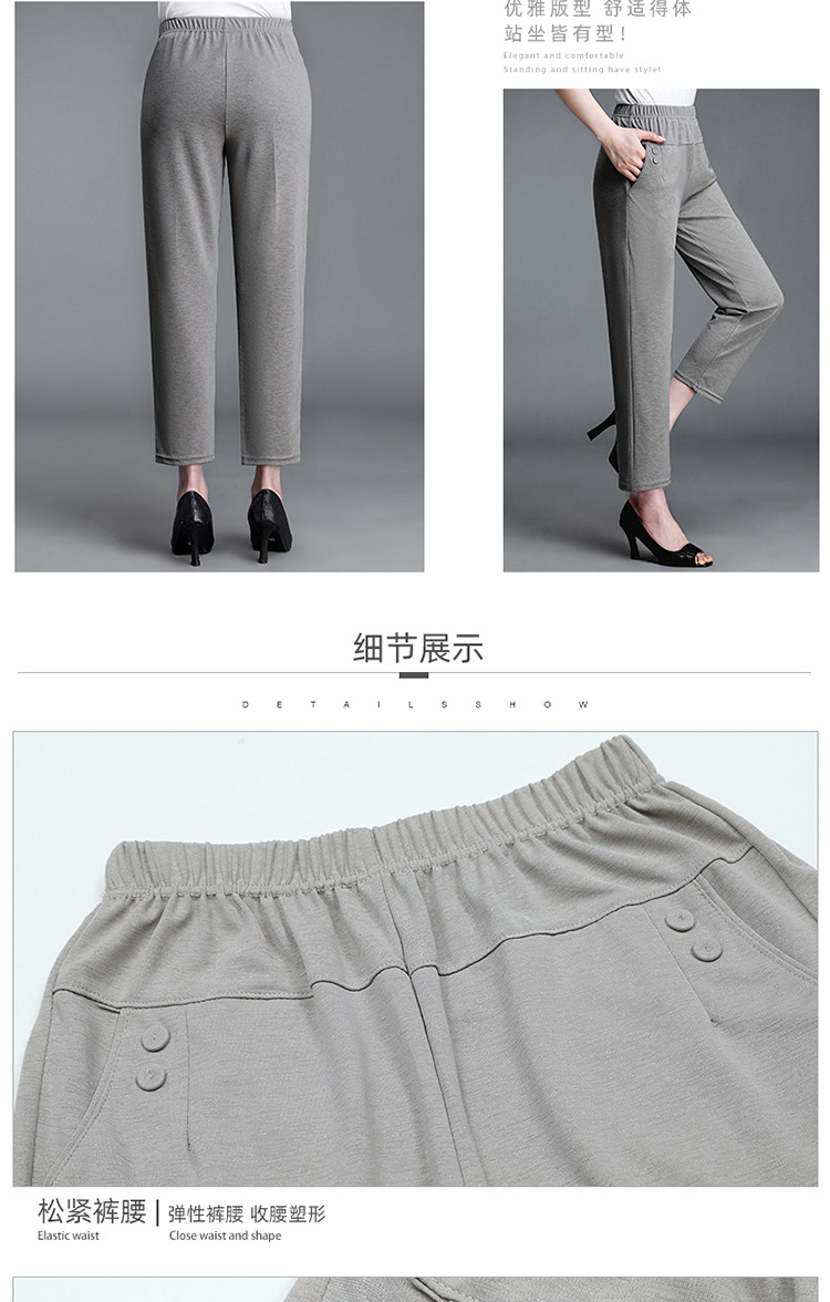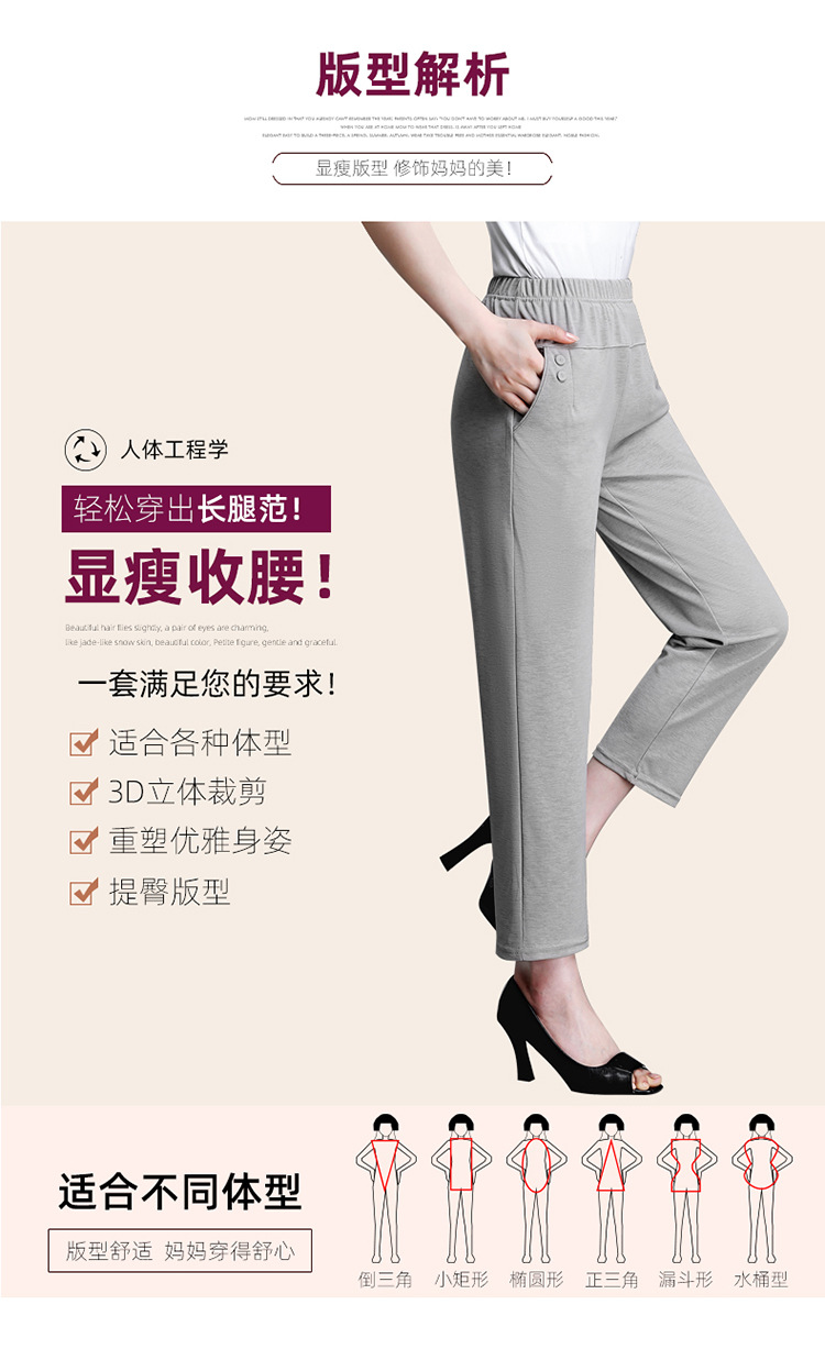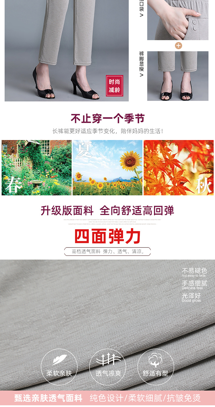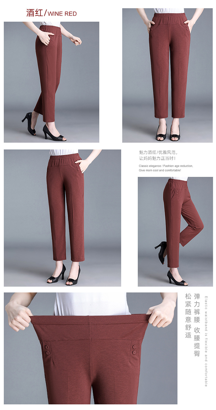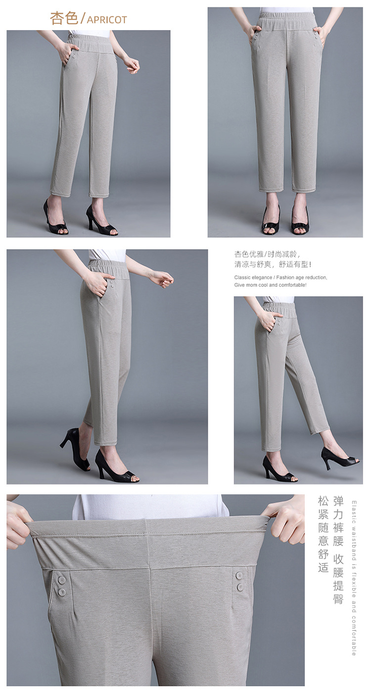 妈妈裤子薄款夏季休闲夏天松紧腰奶奶裤宽松直筒中老年人九分裤女