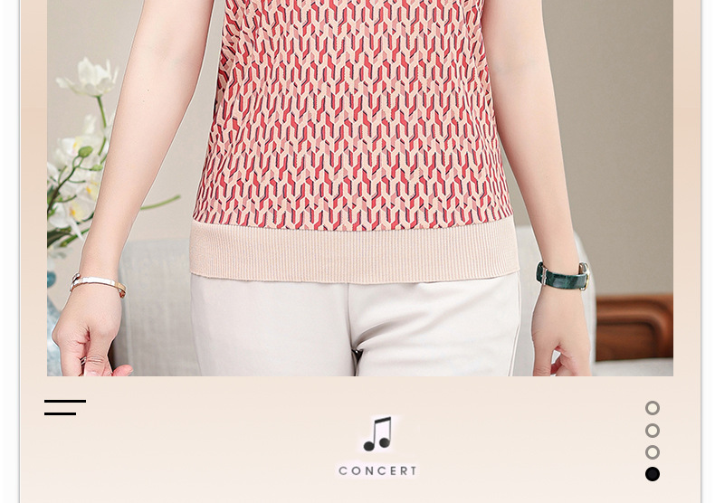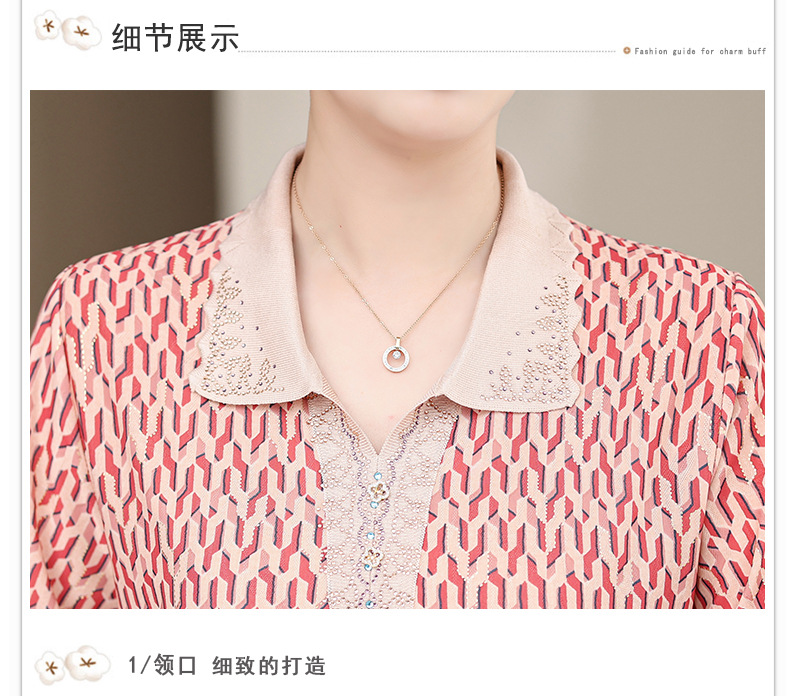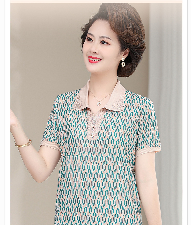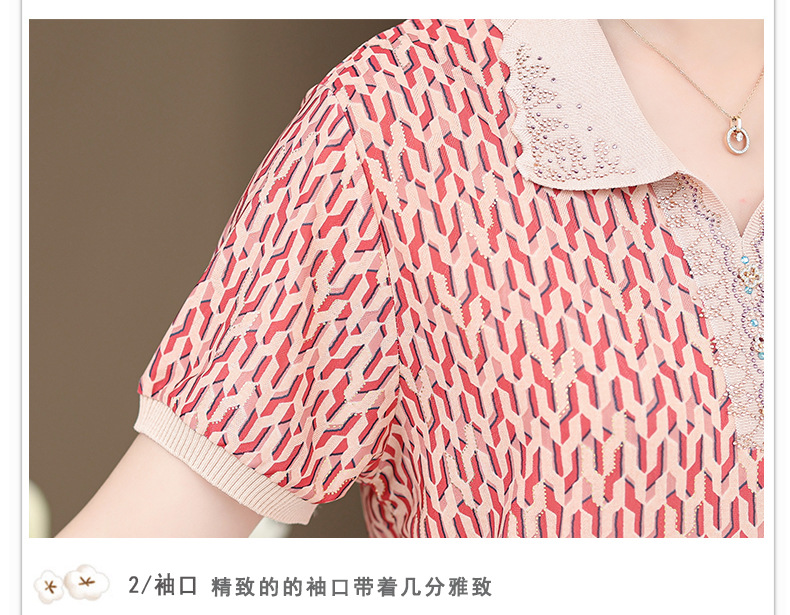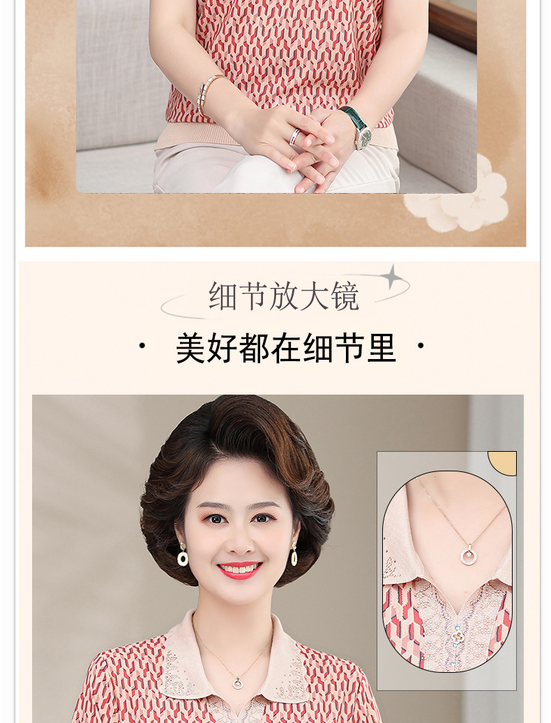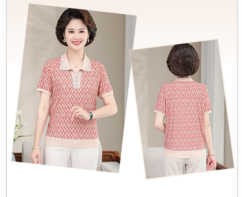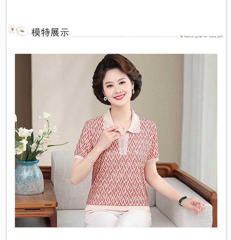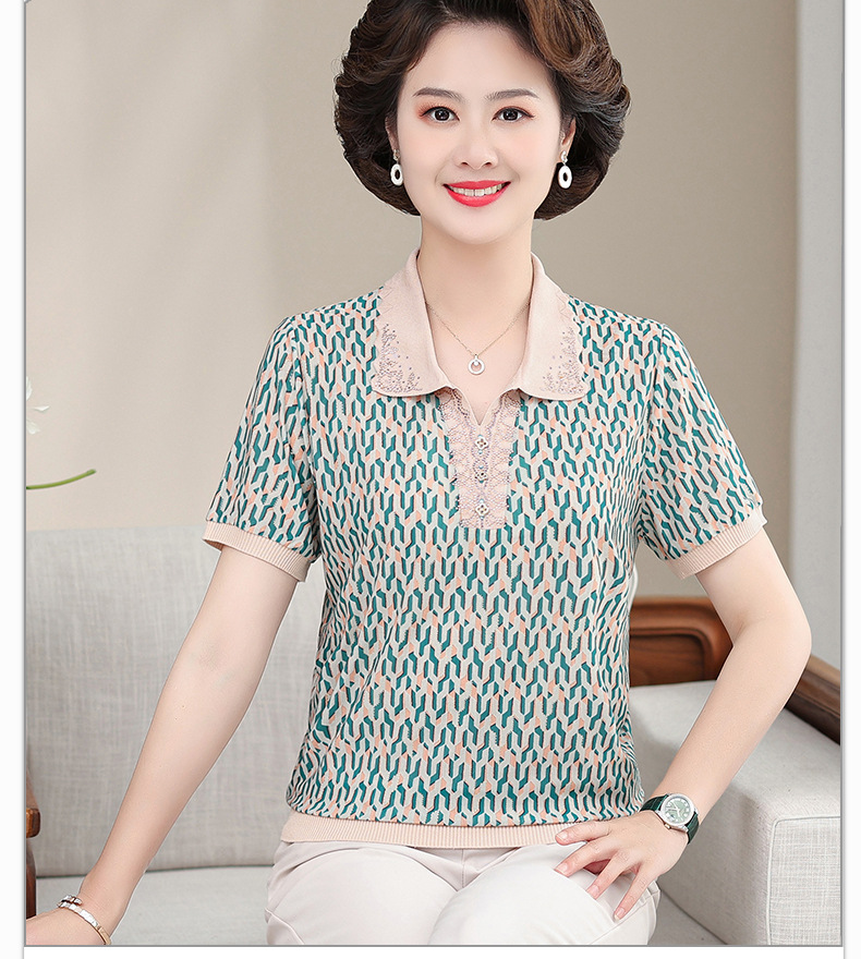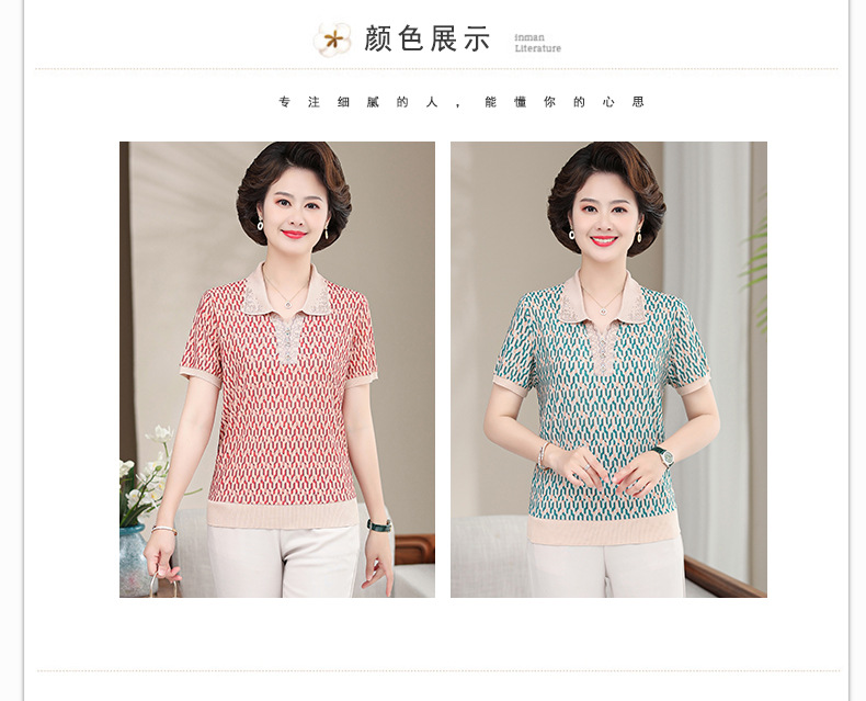50岁妈妈夏装短袖T恤针织洋气小衫中老年妇女冰丝翻领薄款t恤上衣