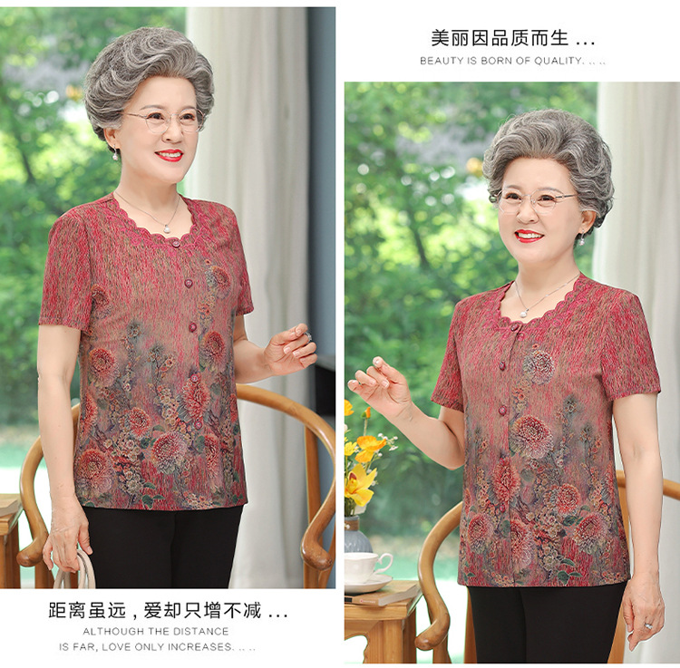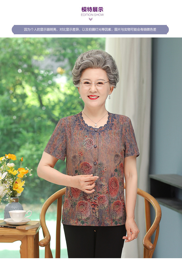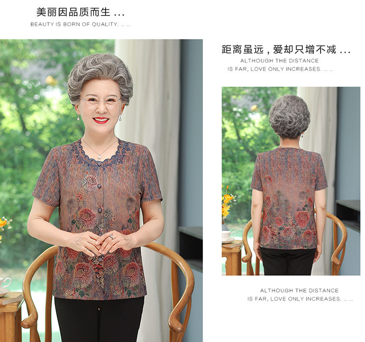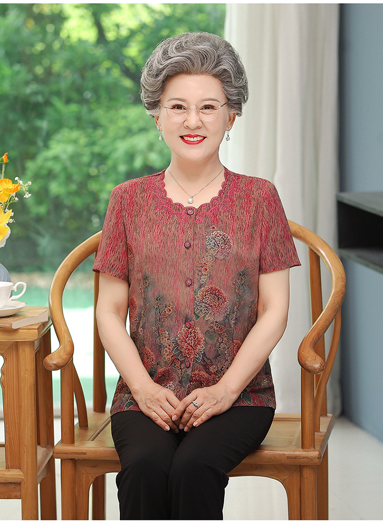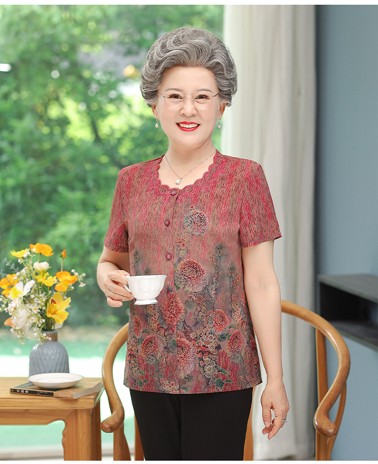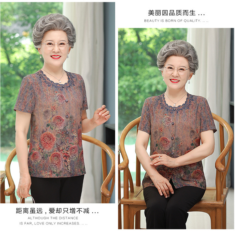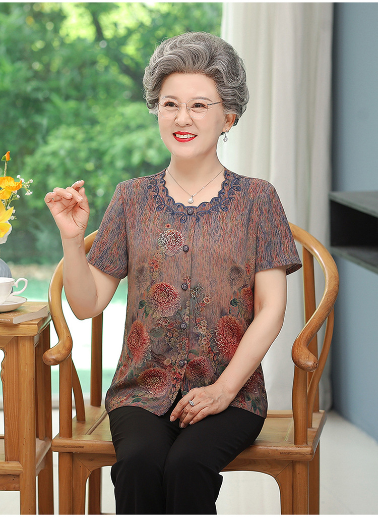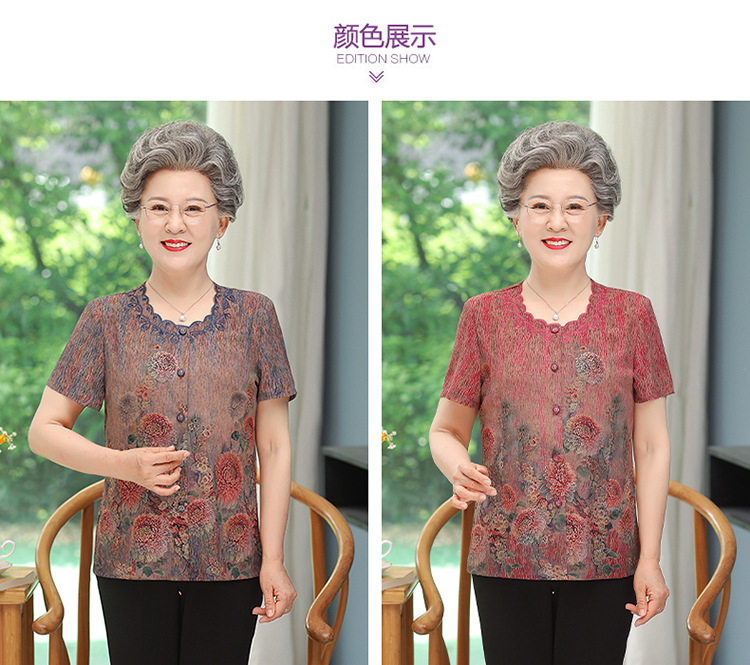 中老年人夏季衬衫女70岁奶奶装薄款衬衣妈妈夏装短袖洋气上衣套装