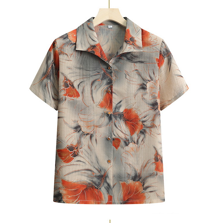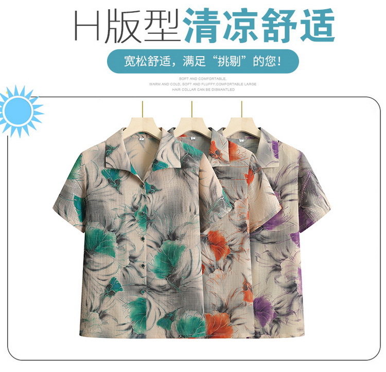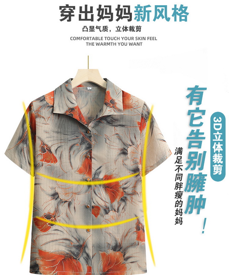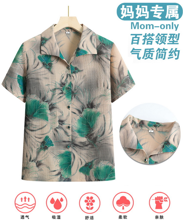 奶奶夏装短袖衬衫60岁70中老年人女翻领开衫上衣妈妈装洋气衬衣
