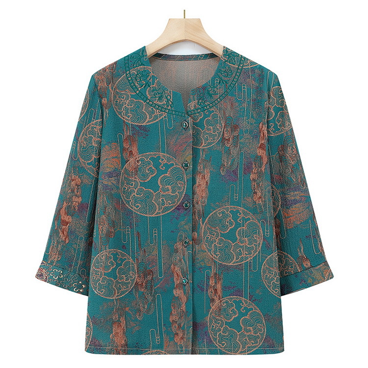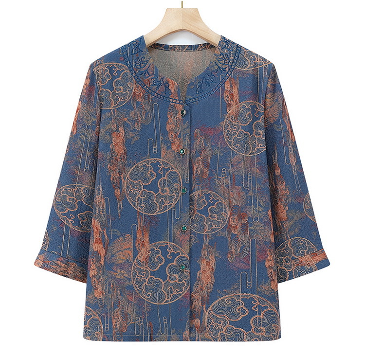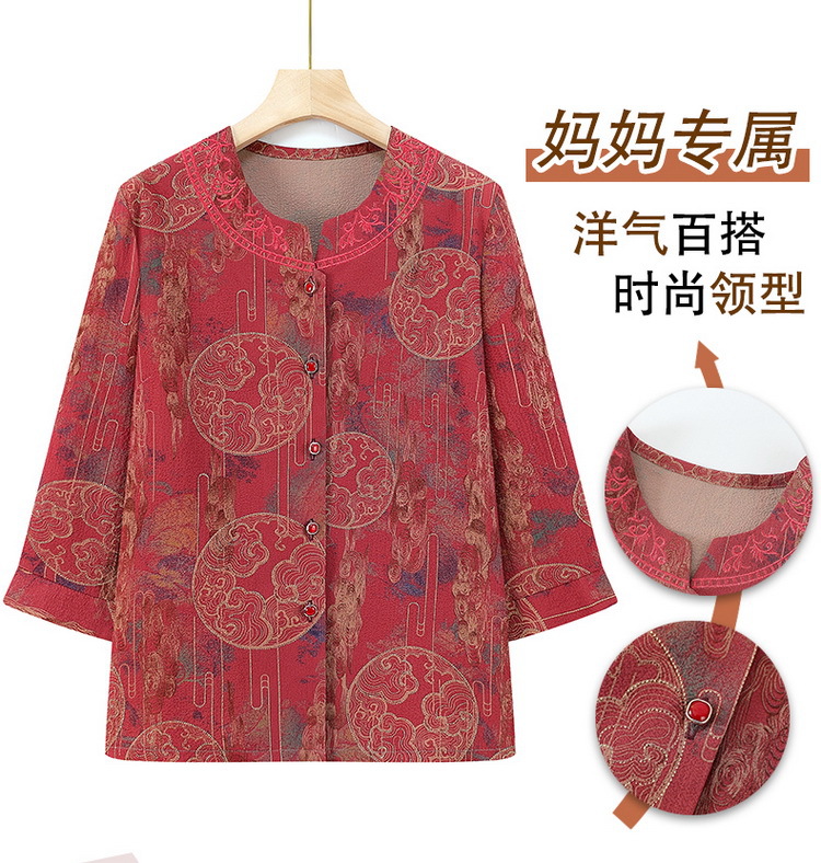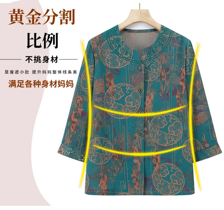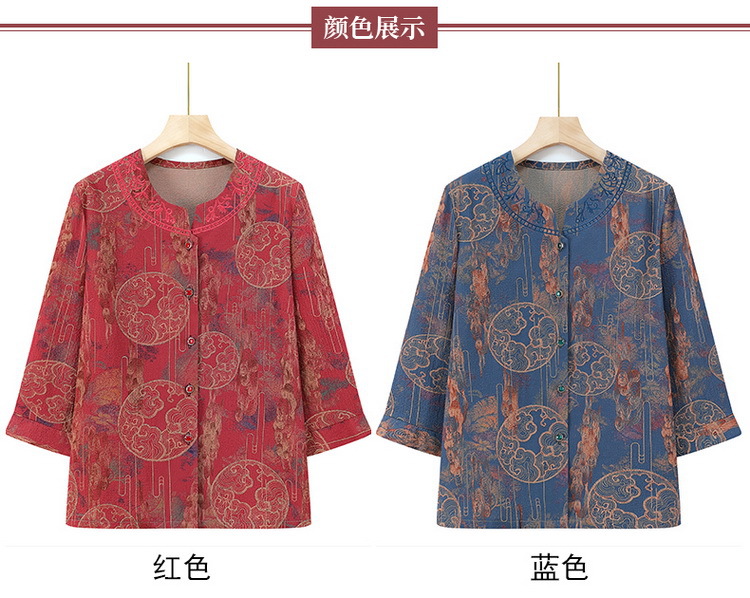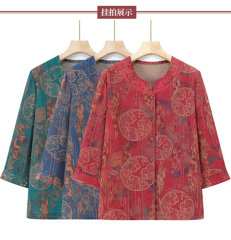 老人衣服奶奶夏装衬衣70岁80中老年女装夏季上衣妈妈七分袖衬衫薄