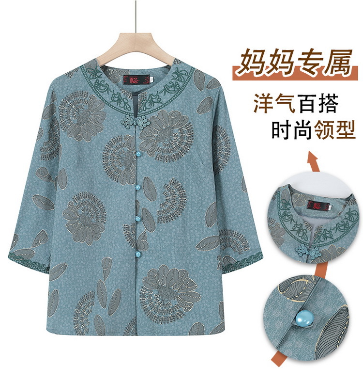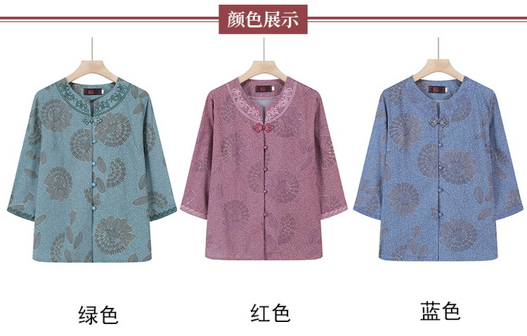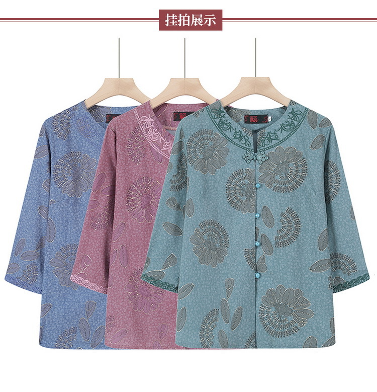 奶奶夏装衬衫薄款中老年人女妈妈装七分袖上衣老太太夏季衣服开衫