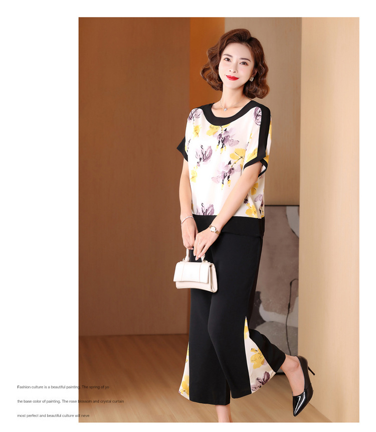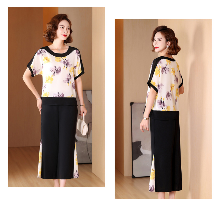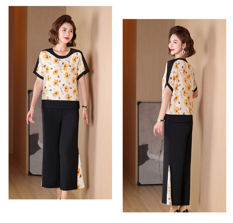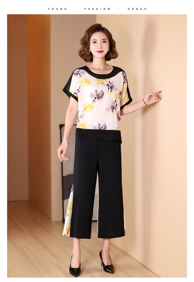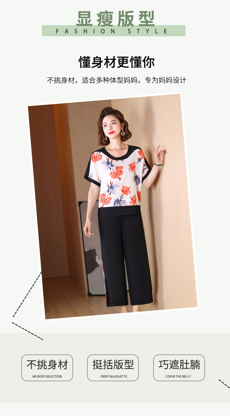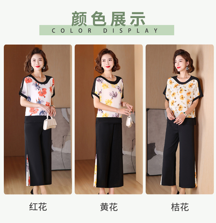 50岁妈妈夏装短袖阔腿裤两件套2023夏季中老年女士时尚九分裤套装