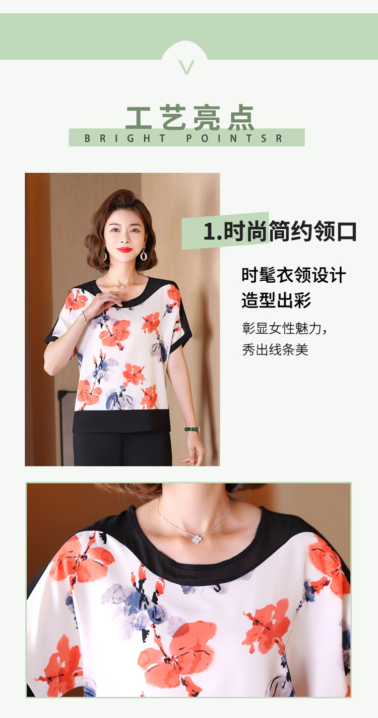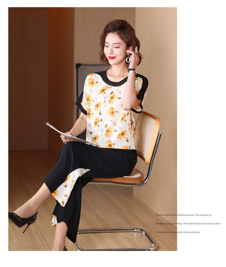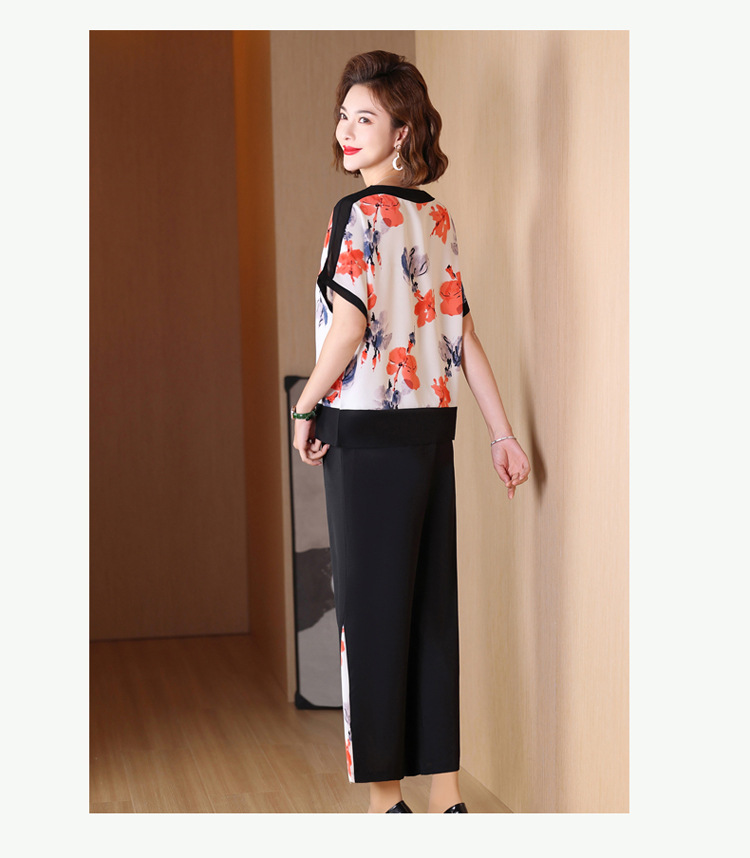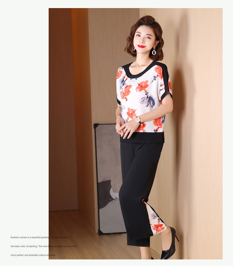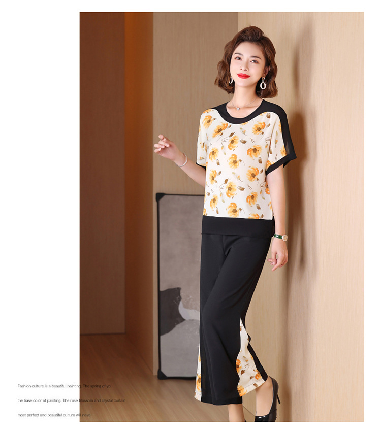 50岁妈妈夏装短袖阔腿裤两件套2023夏季中老年女士时尚九分裤套装