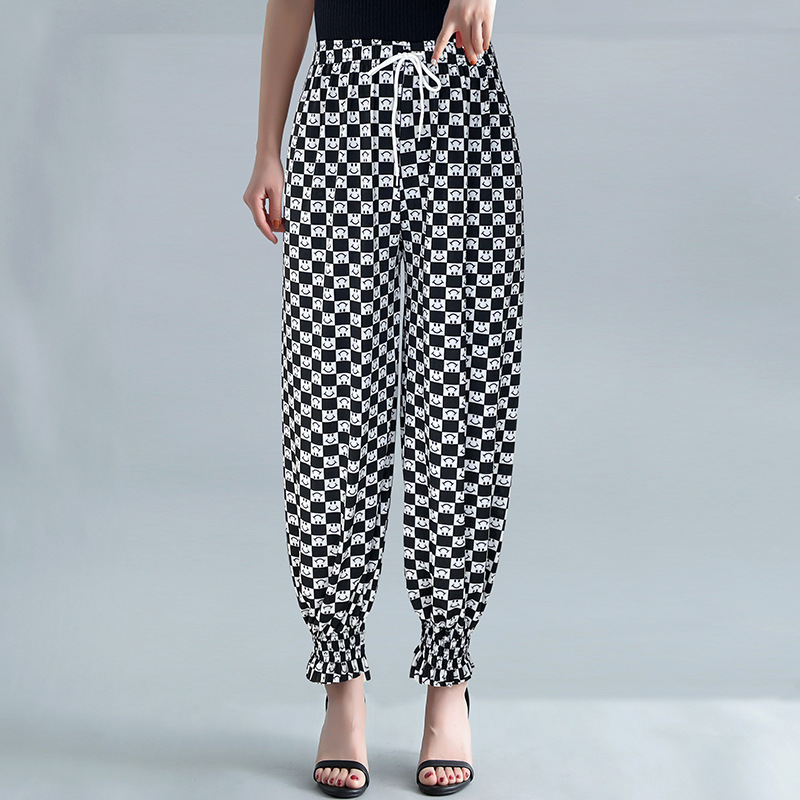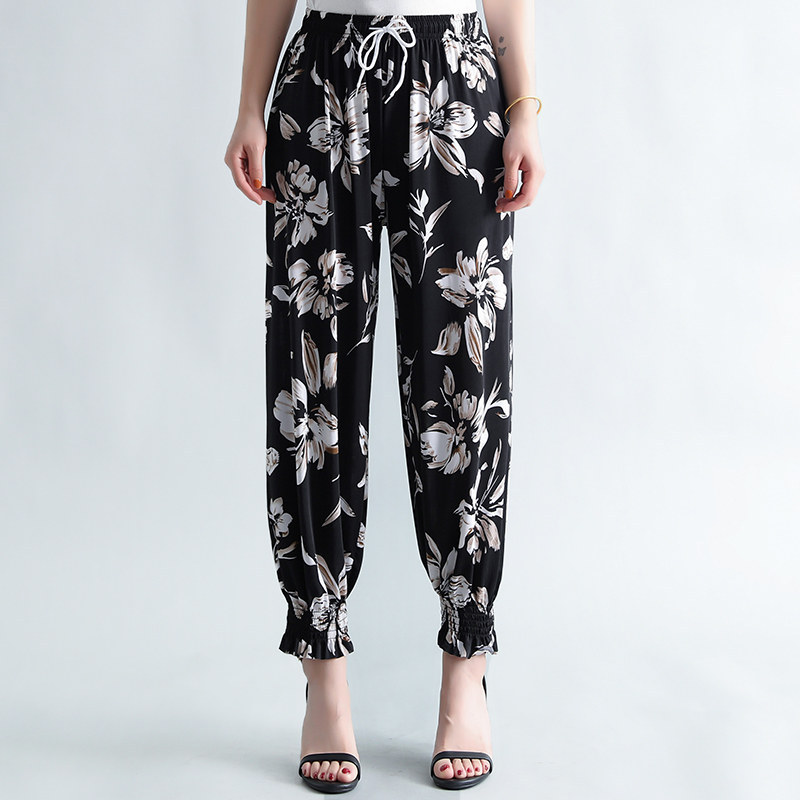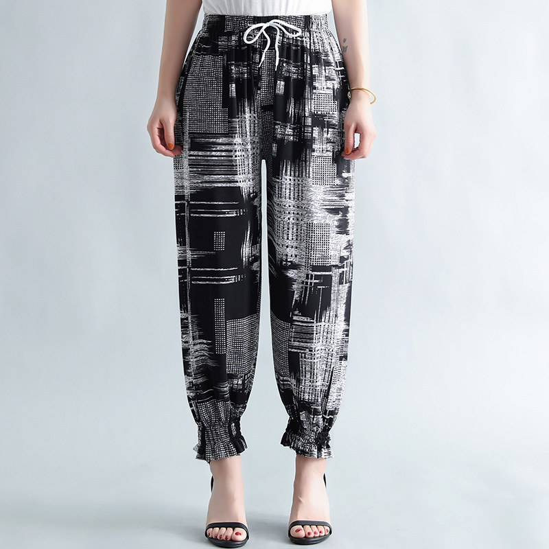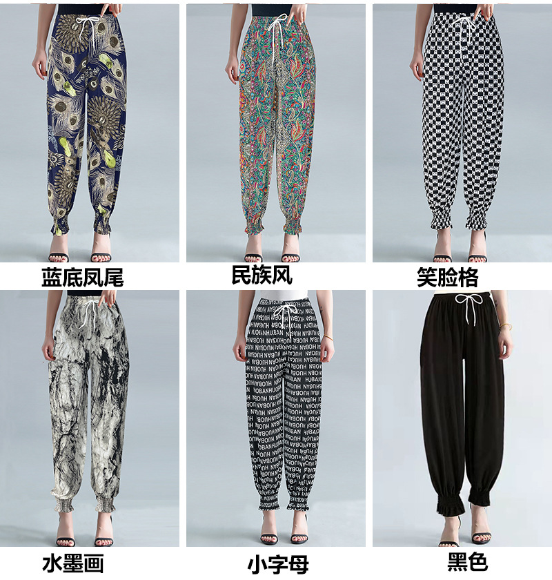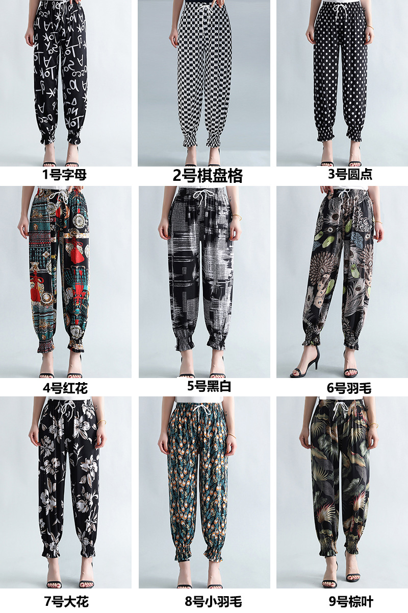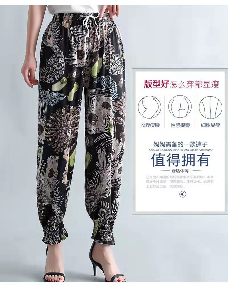 夏季冰丝灯笼裤中老年人女士妈妈防蚊裤高腰宽松休闲束脚弹力裤子