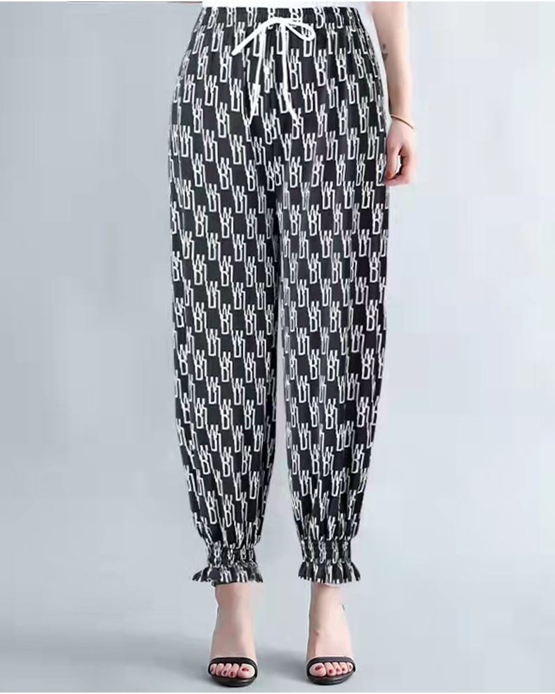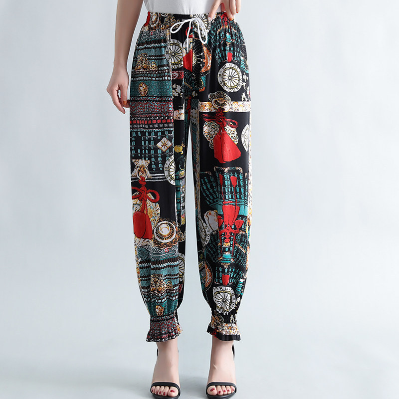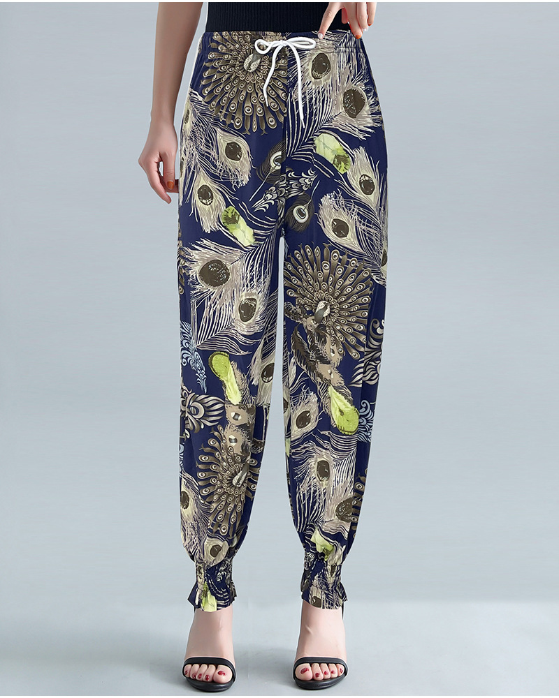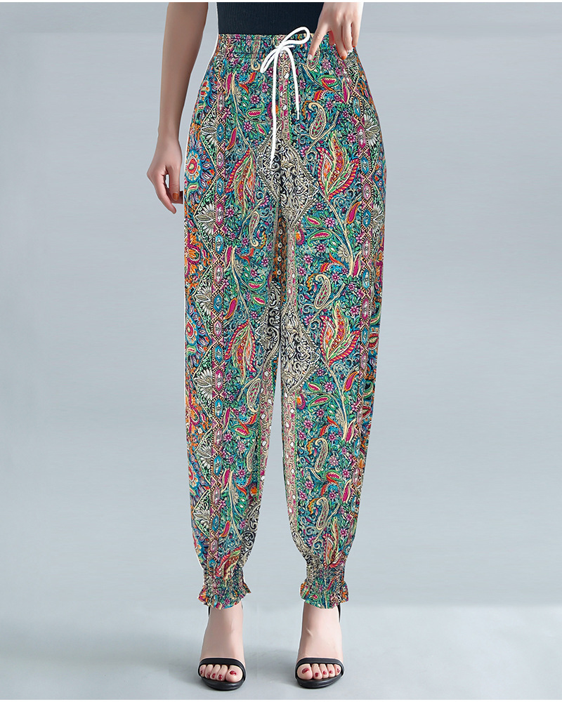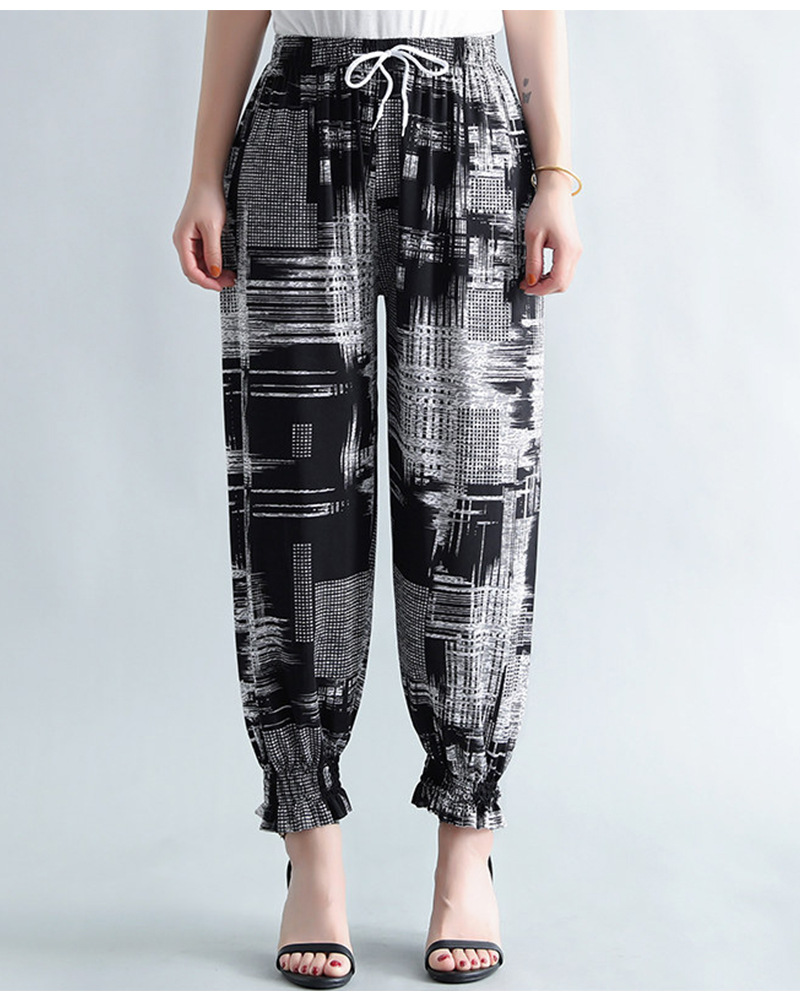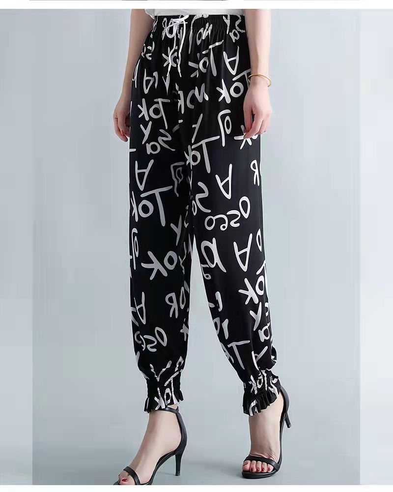 夏季冰丝灯笼裤中老年人女士妈妈防蚊裤高腰宽松休闲束脚弹力裤子