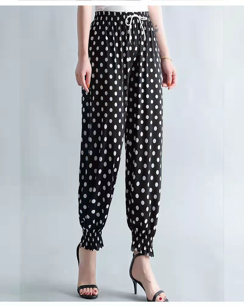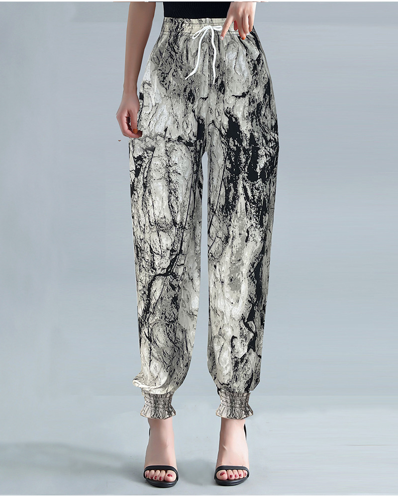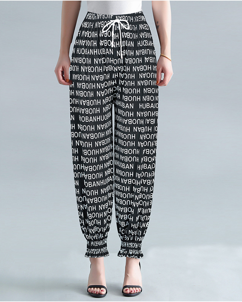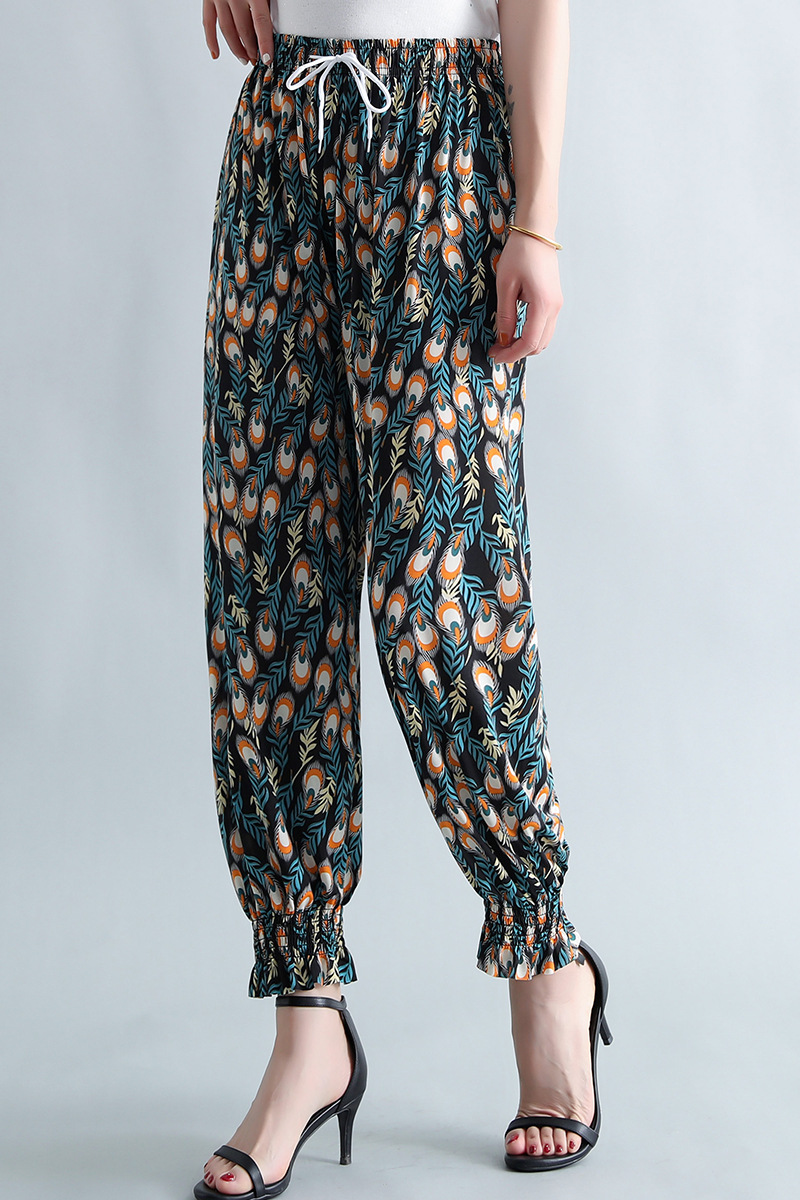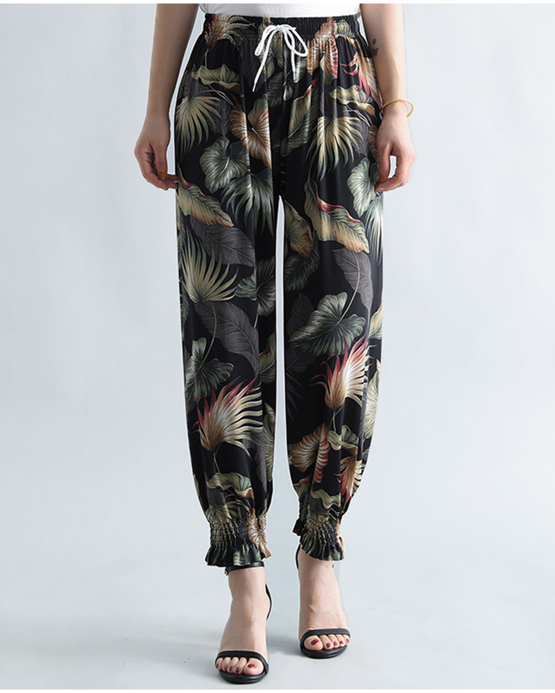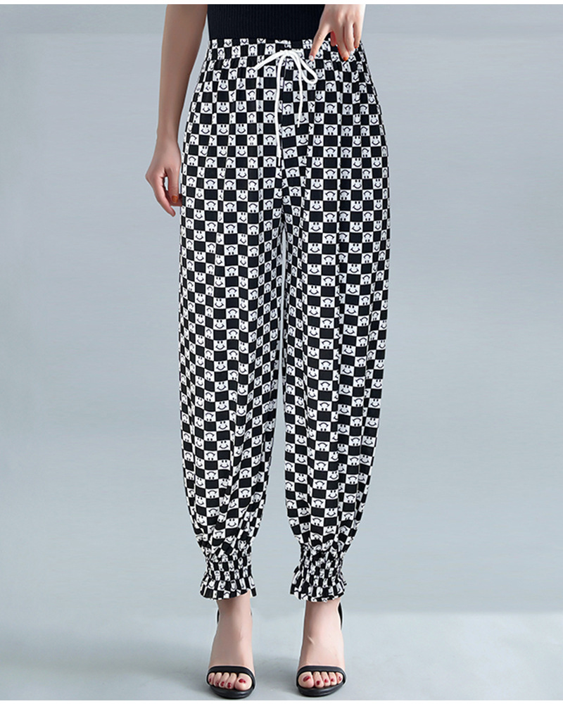 夏季冰丝灯笼裤中老年人女士妈妈防蚊裤高腰宽松休闲束脚弹力裤子