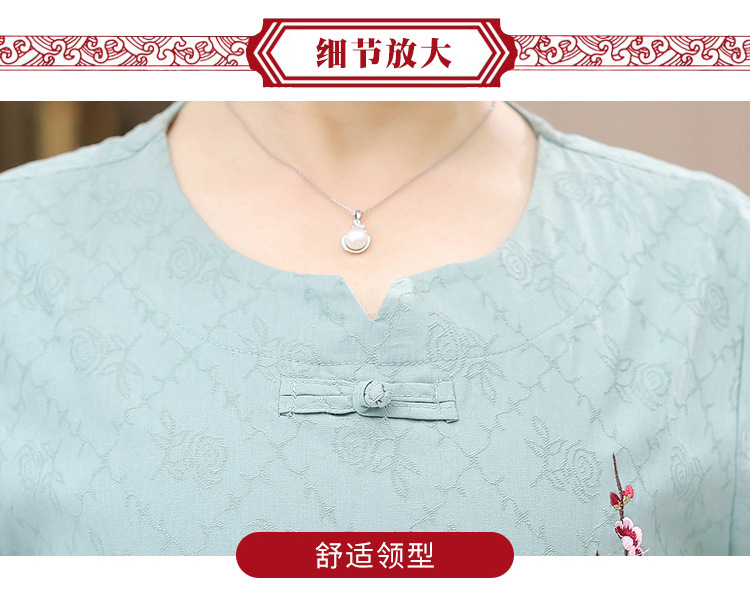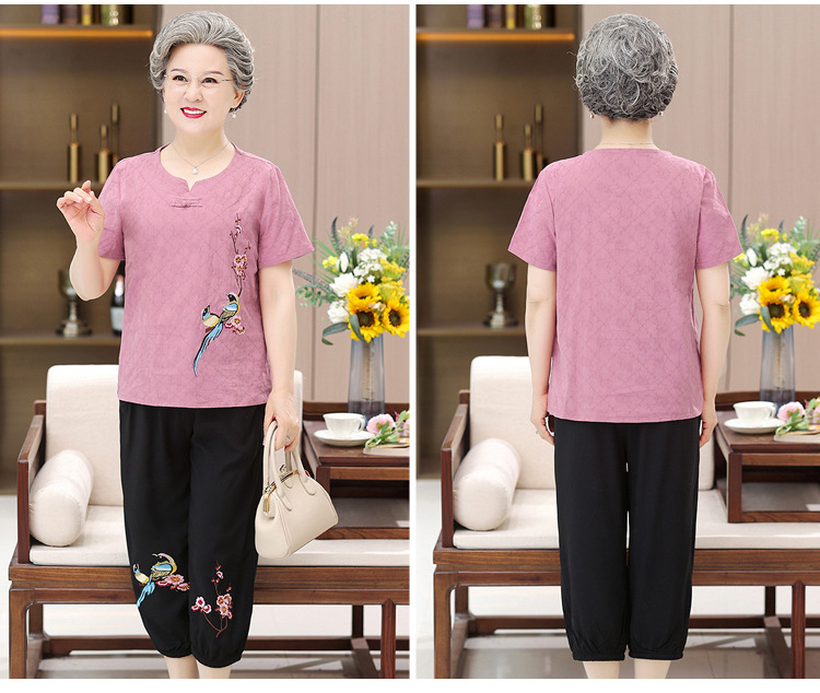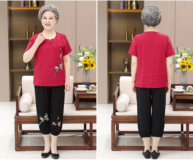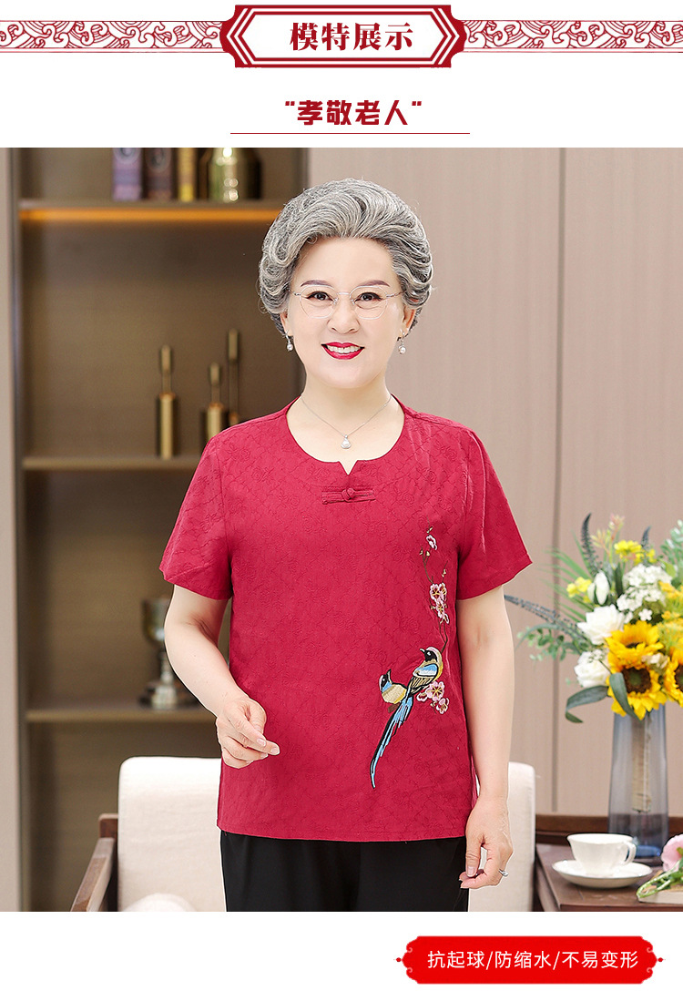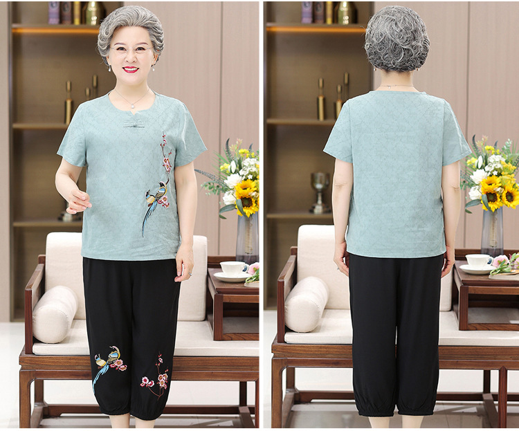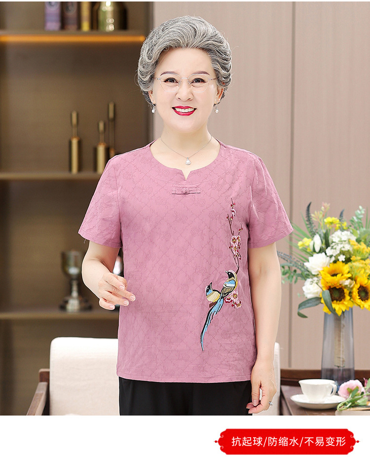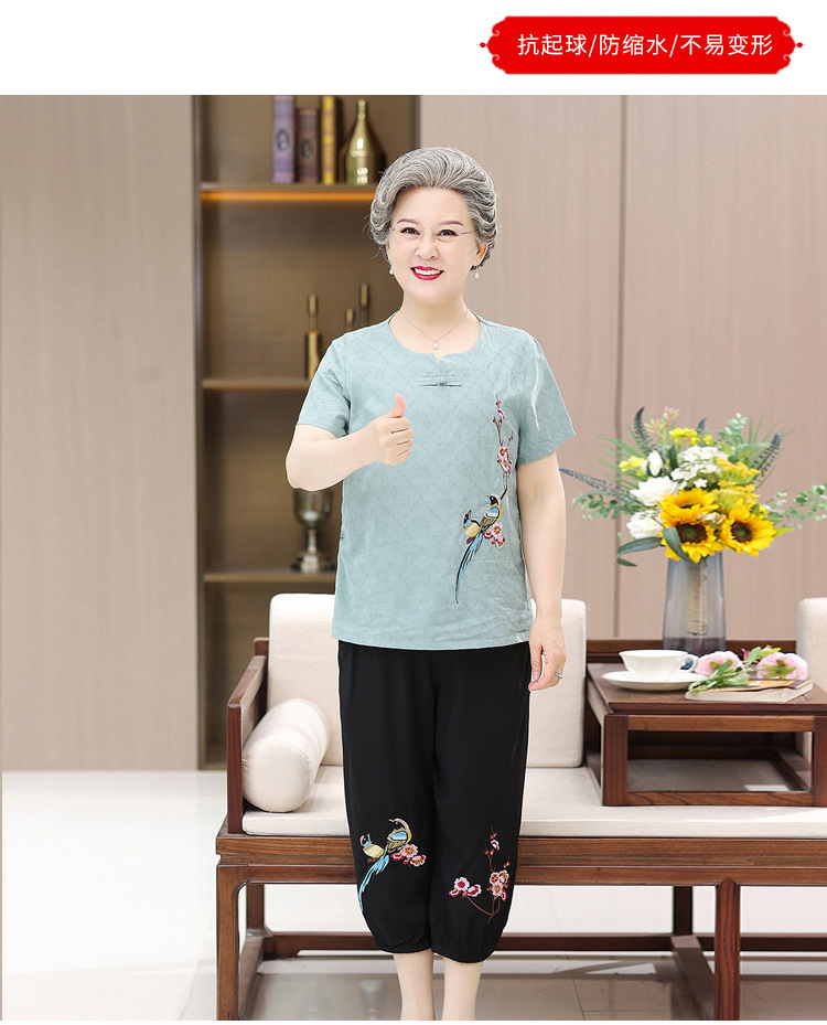 奶奶装短袖T恤60-70岁妈妈夏季棉麻套装80老太太衣服中老年人女装