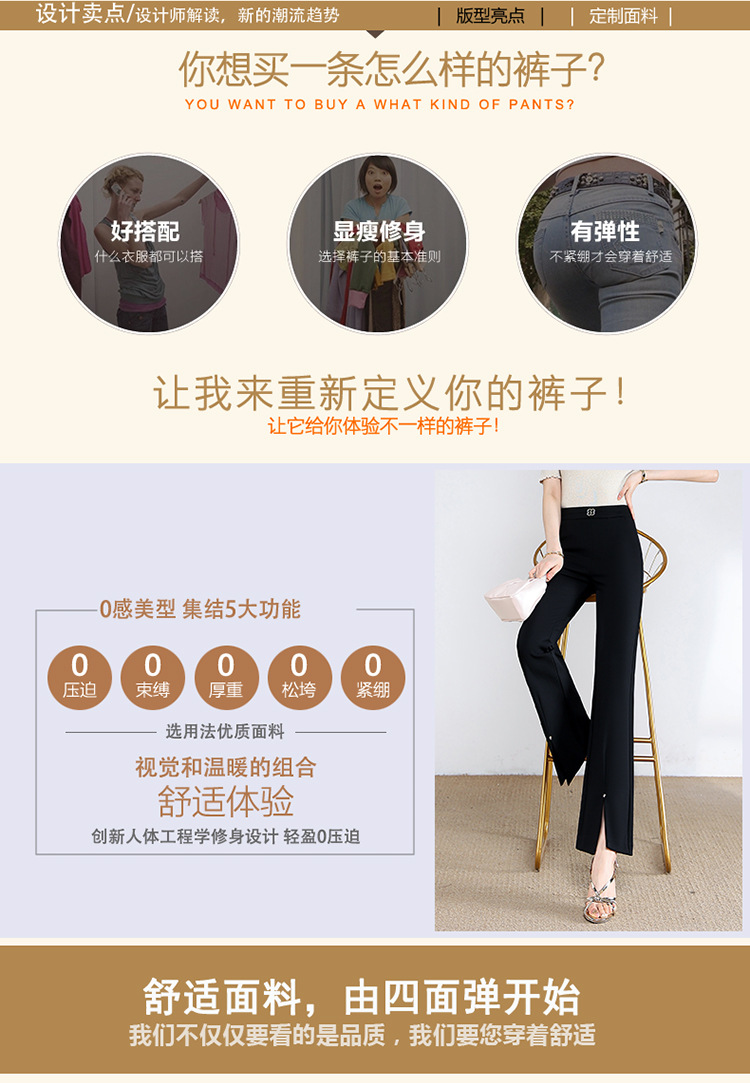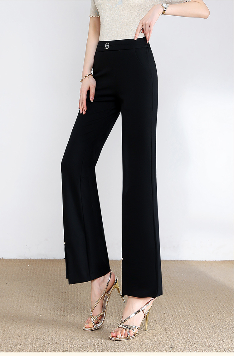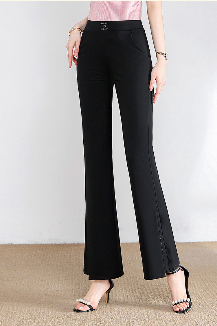 2023新款女装裤子春夏款女裤高腰喇叭裤黑色垂感微喇裤休闲裤长裤