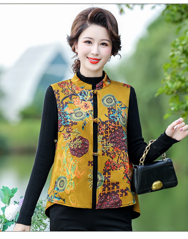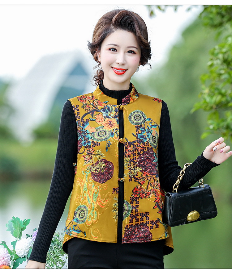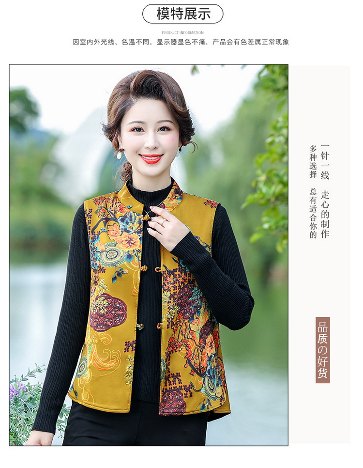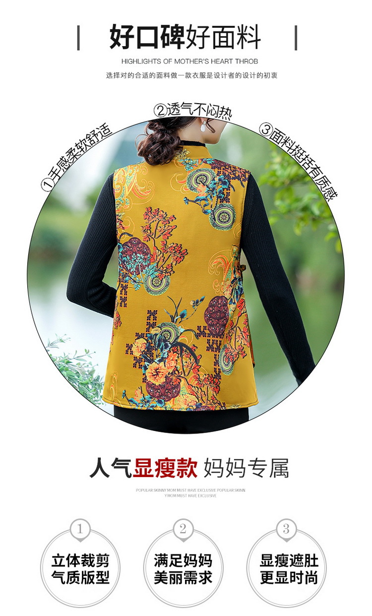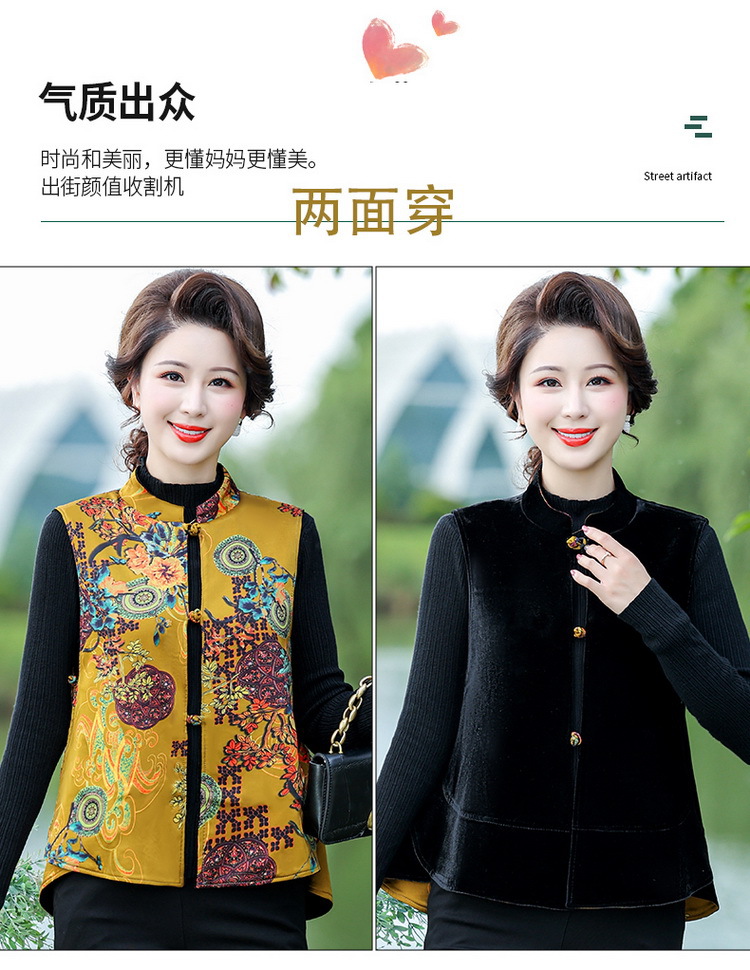 新款妈妈装复古盘扣马甲春秋民族风女装坎肩时尚香云纱两面穿马夹