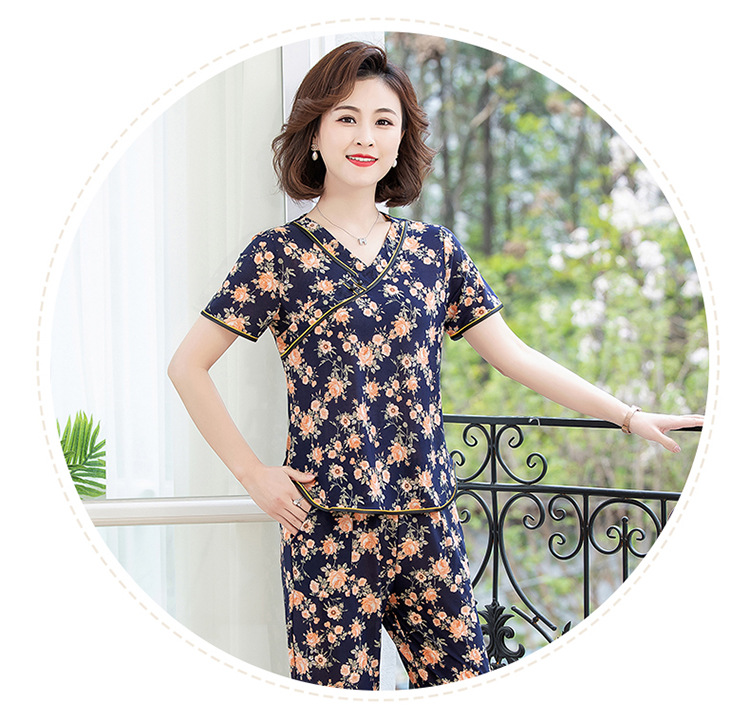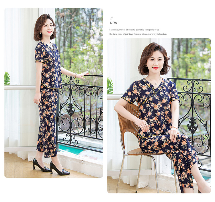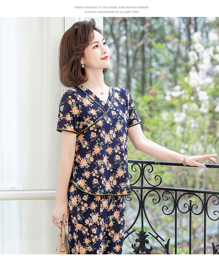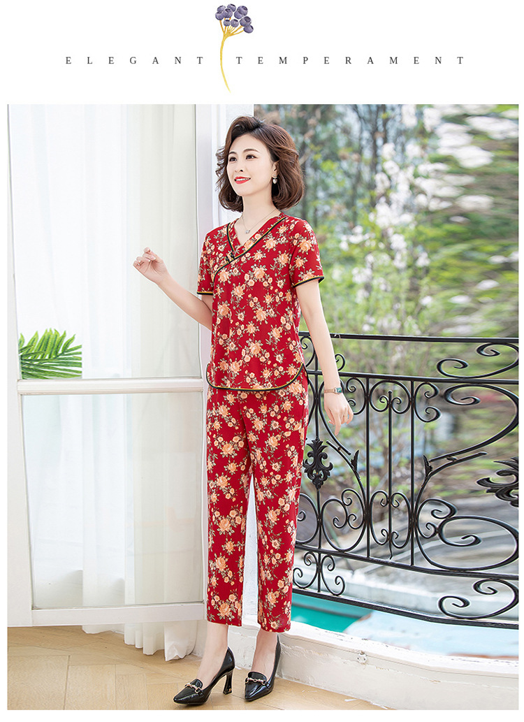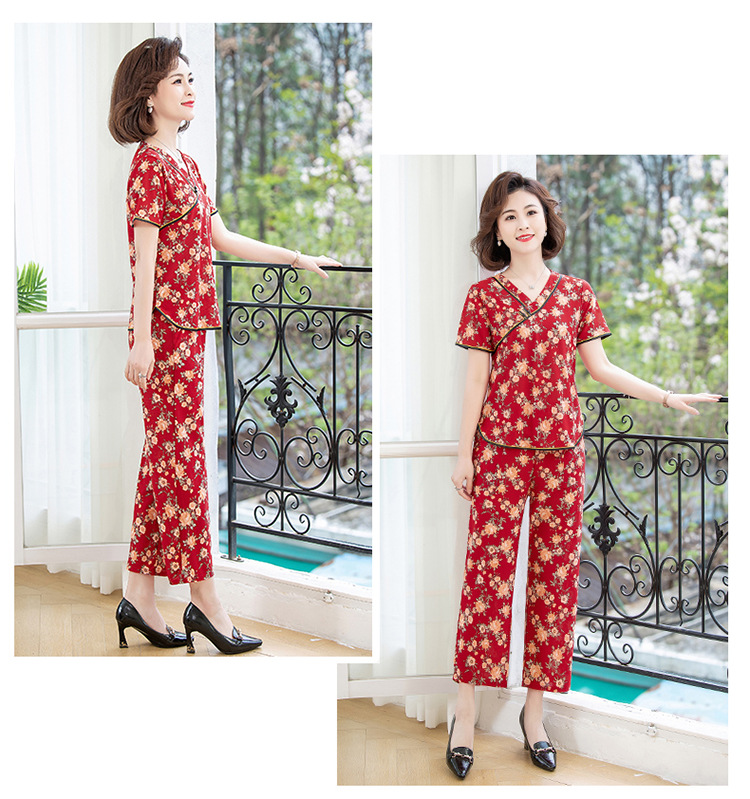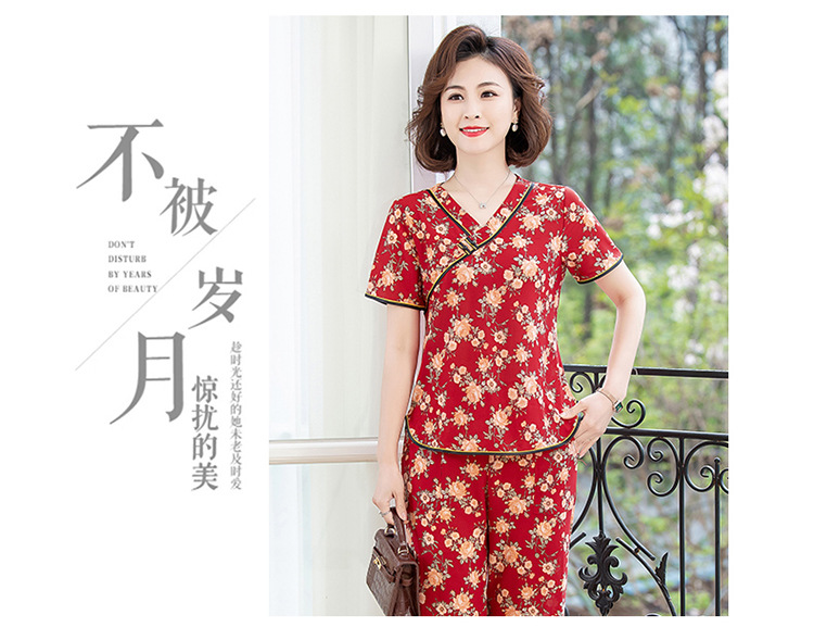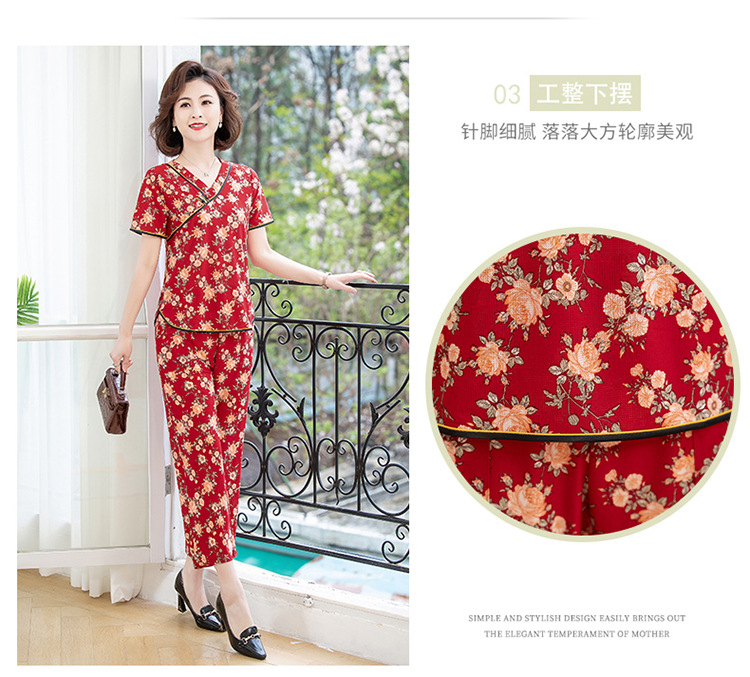 妈妈装民族风套装洋气唐装中老年女中国风夏季新款上衣裤子两件套