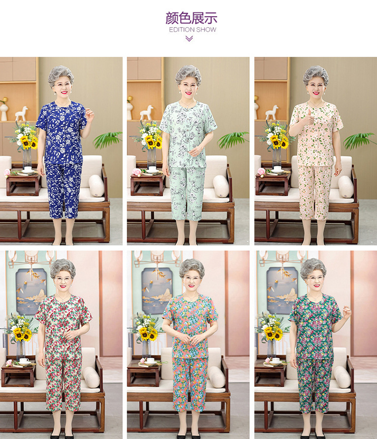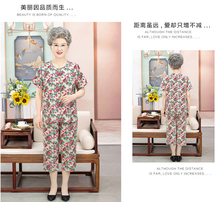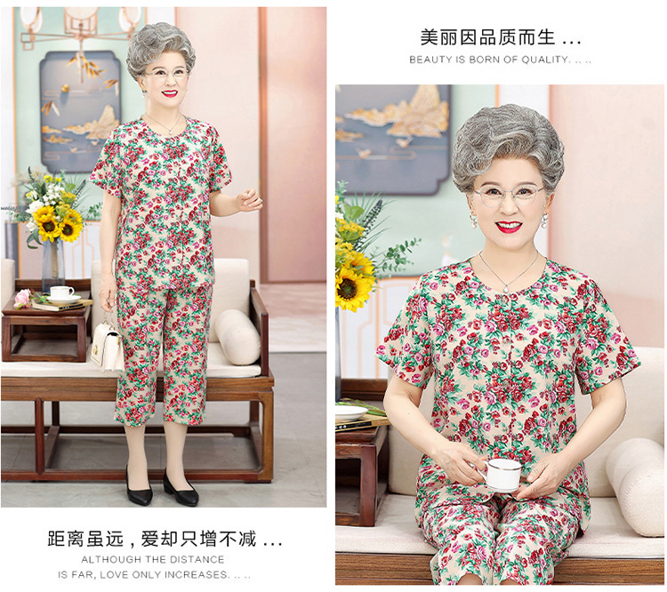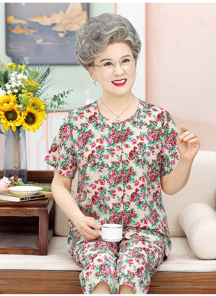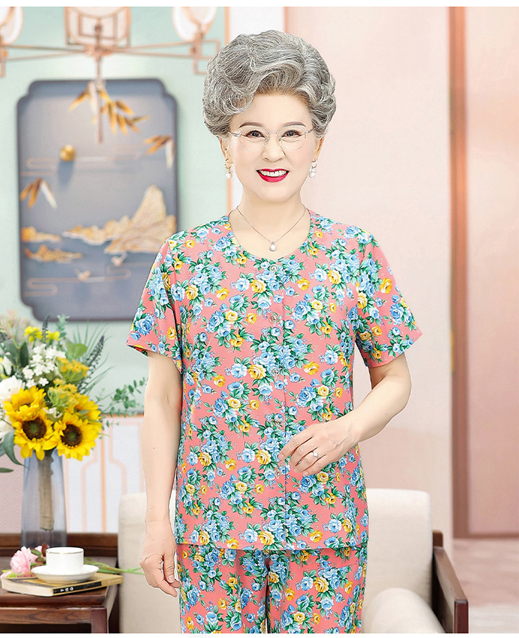 中老年人夏装女奶奶套装70岁80老太太短袖开衫衬衣妈妈装两件套