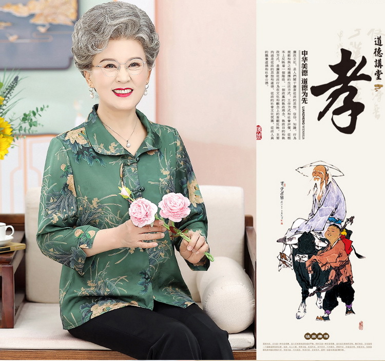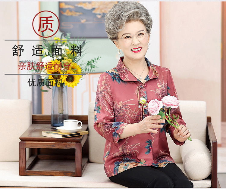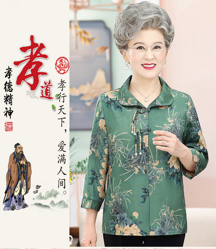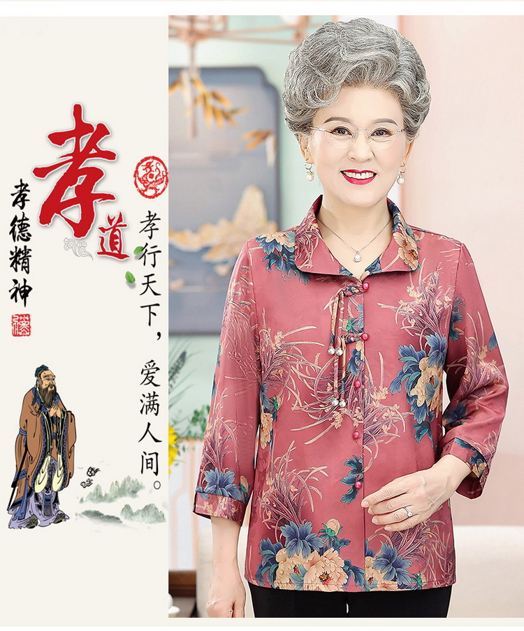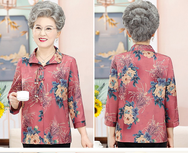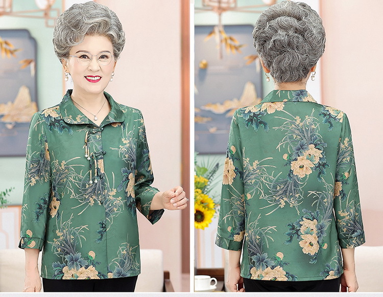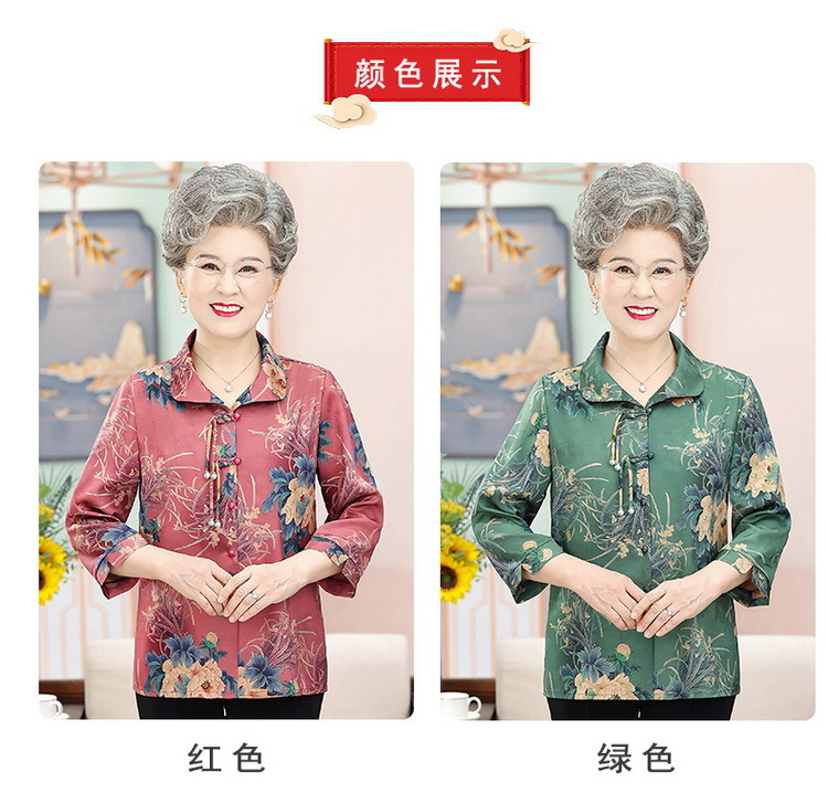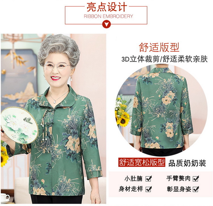 中老年人女夏装衬衫洋气新款奶奶七分袖衬衣70妈妈老太太时尚上衣