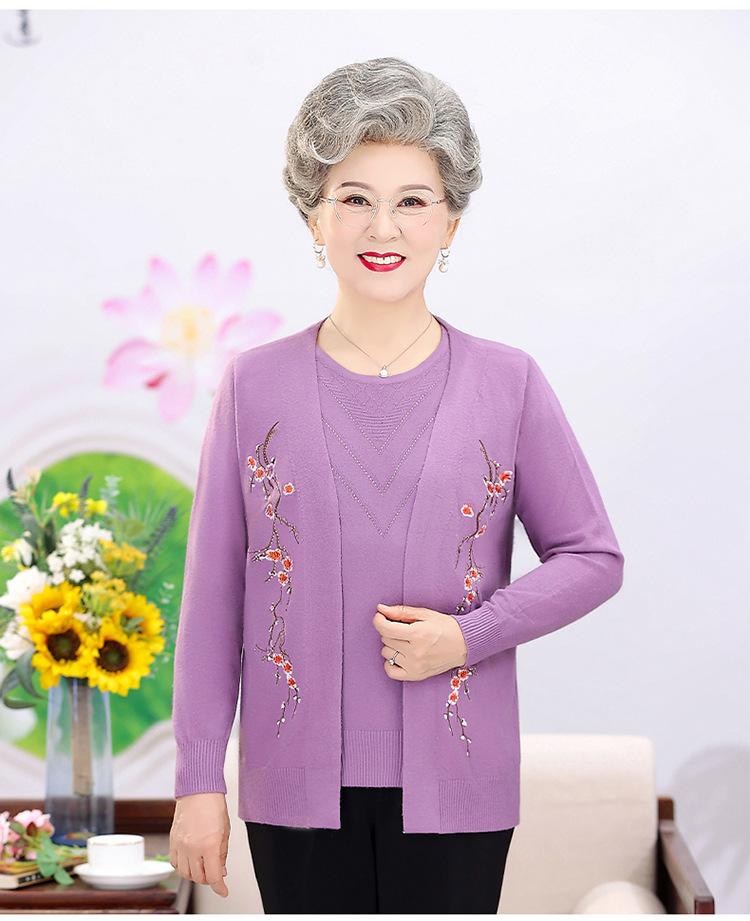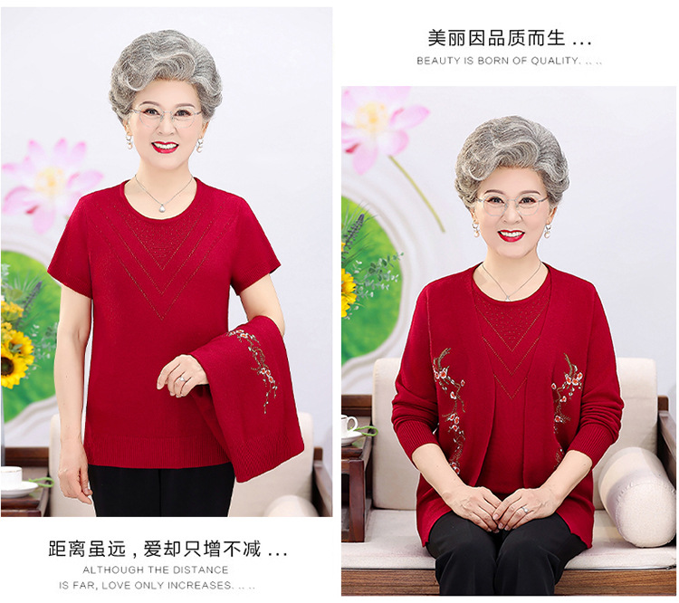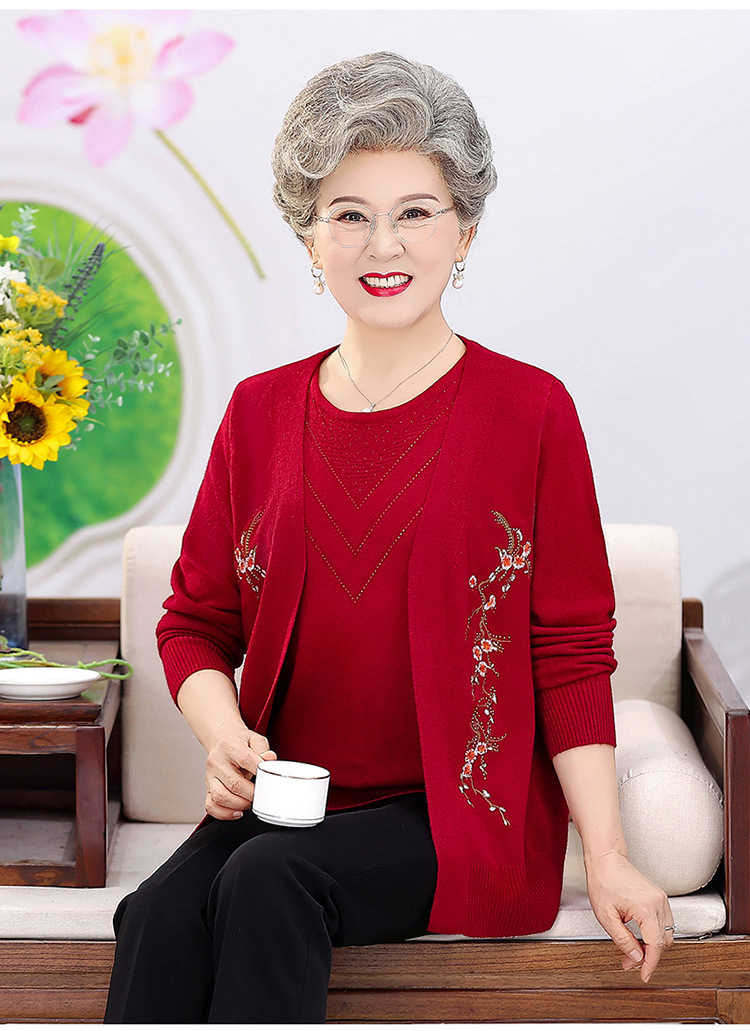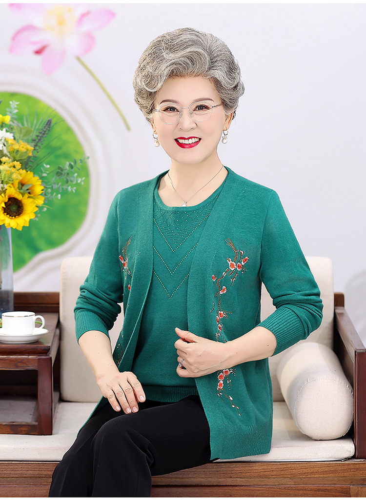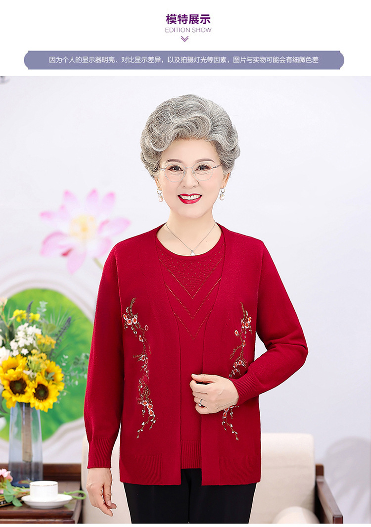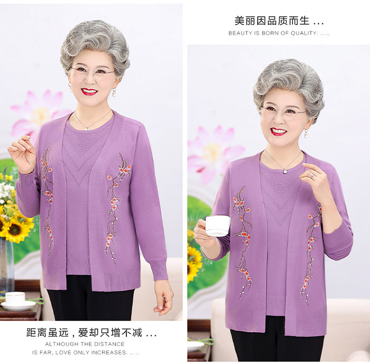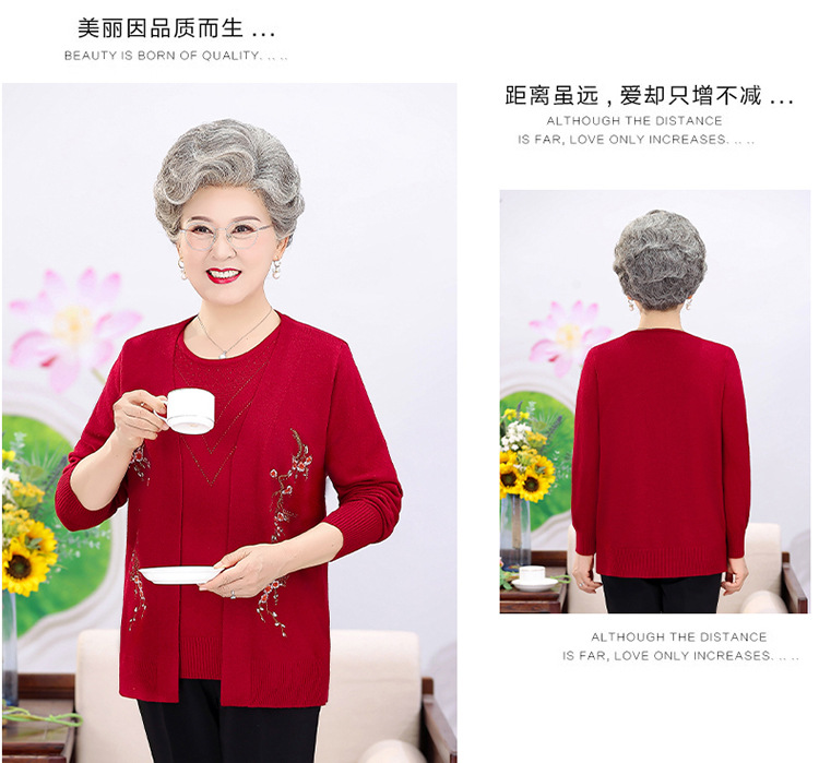 春装新款奶奶装毛衣两件套中老年女妈妈装洋气长袖真两件针织开衫