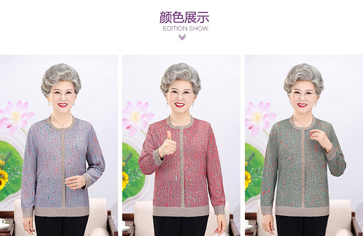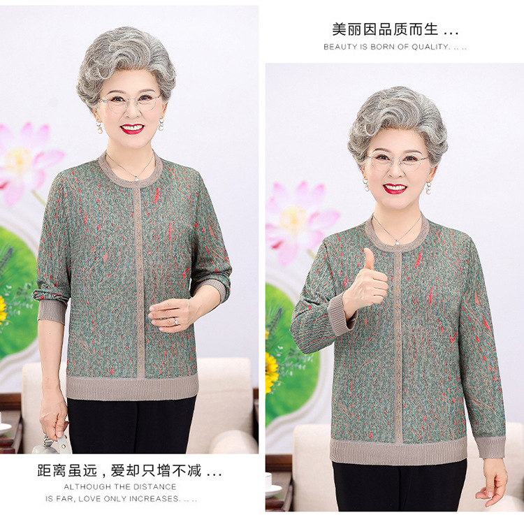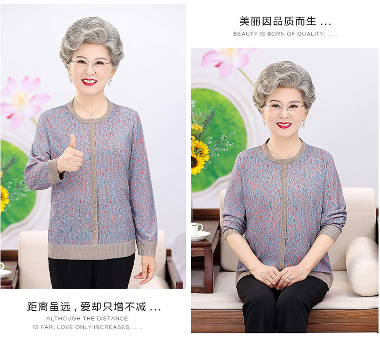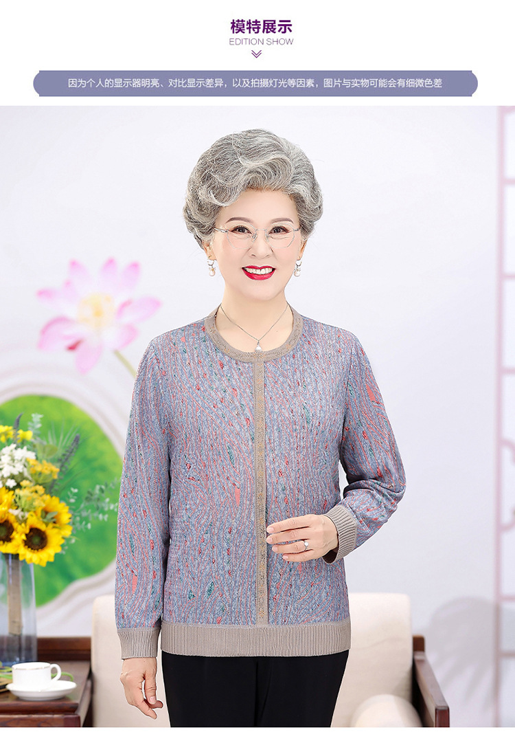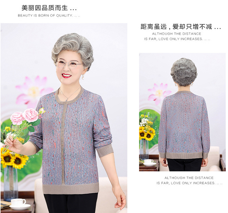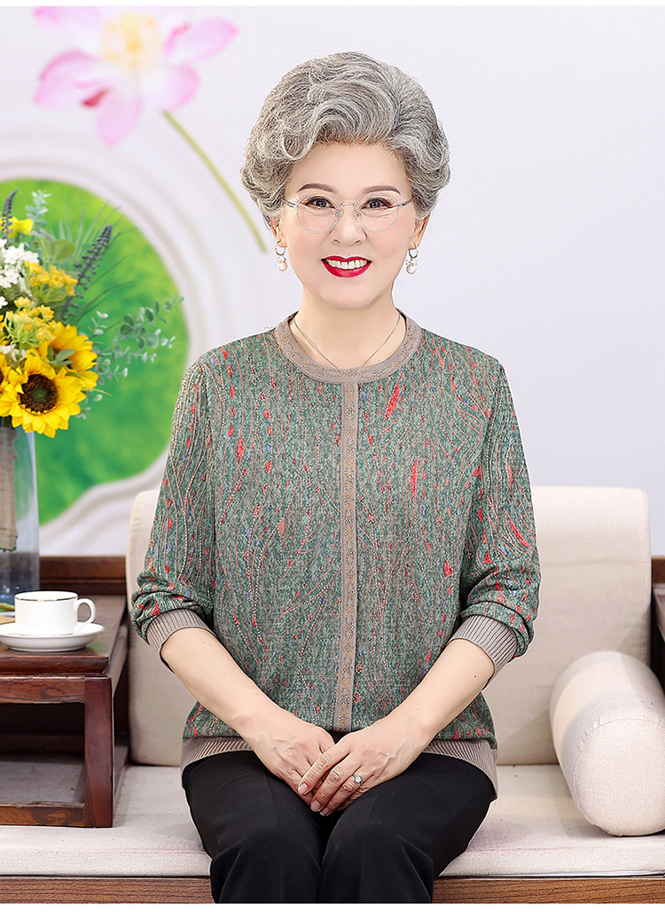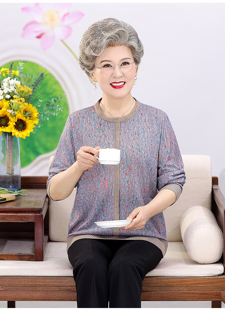 妈妈装薄款针织衫中老年女套头毛衣T恤上衣奶奶装春秋圆领打底衫