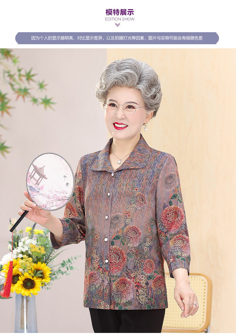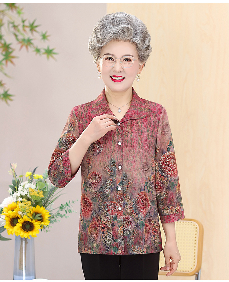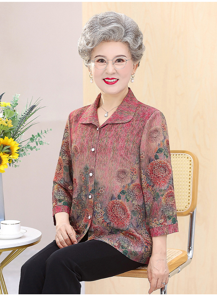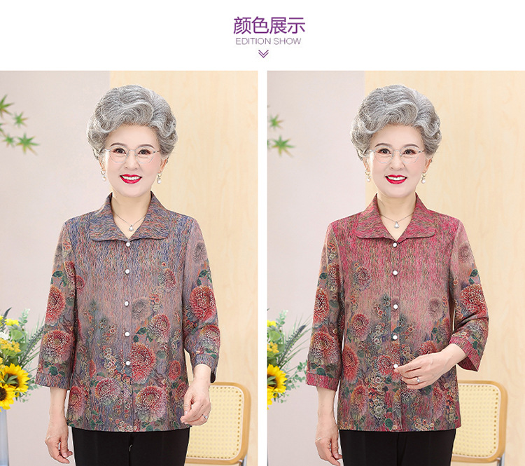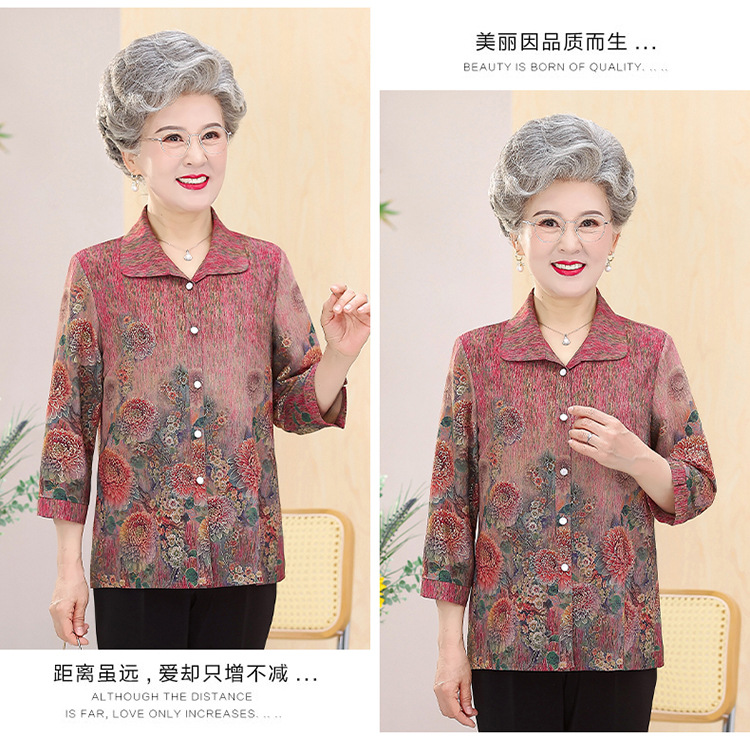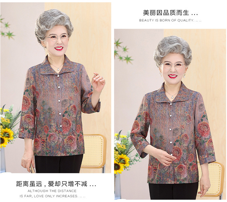 老年人七分袖衬衫夏装大码上衣妈妈70岁80太太衣服奶奶装翻领衬衣