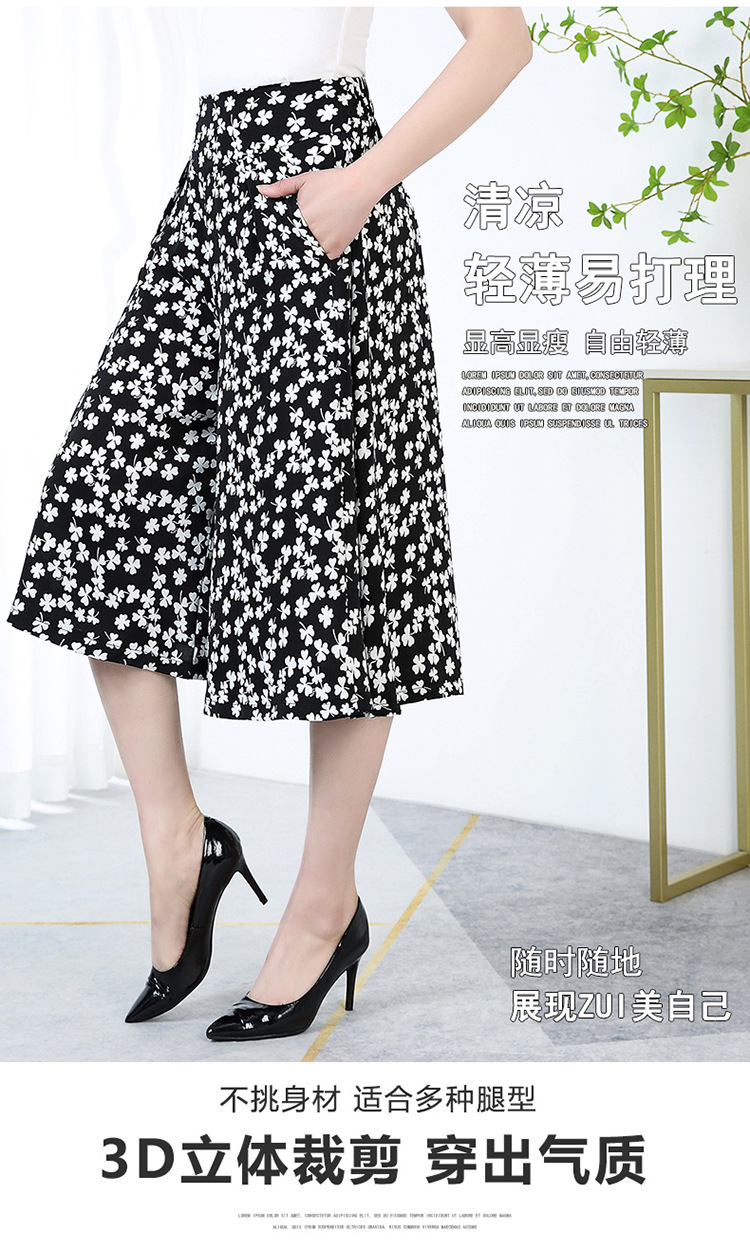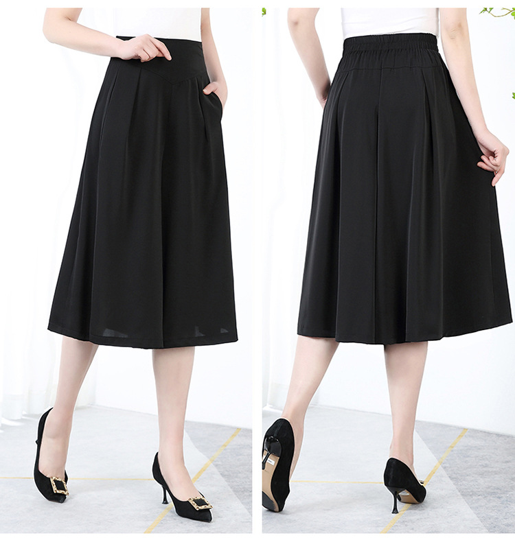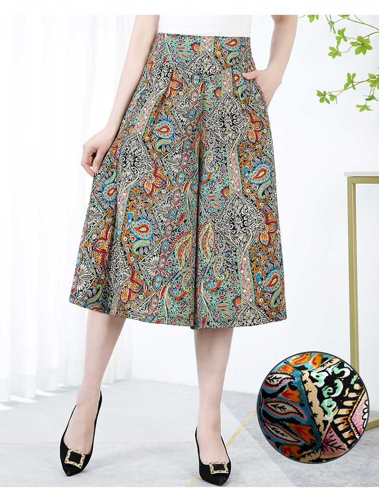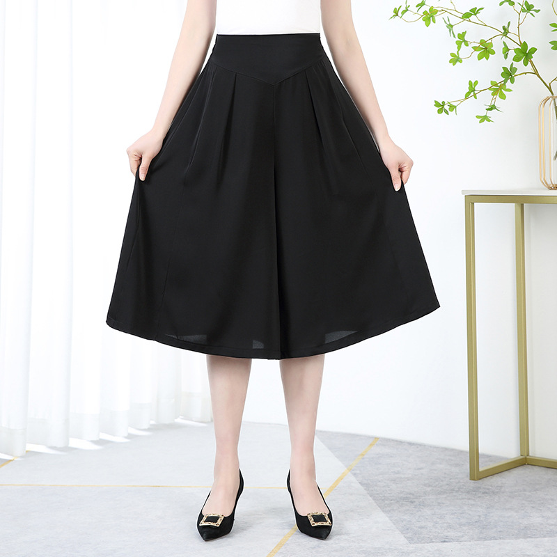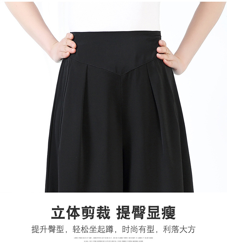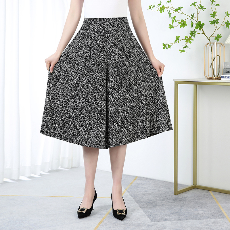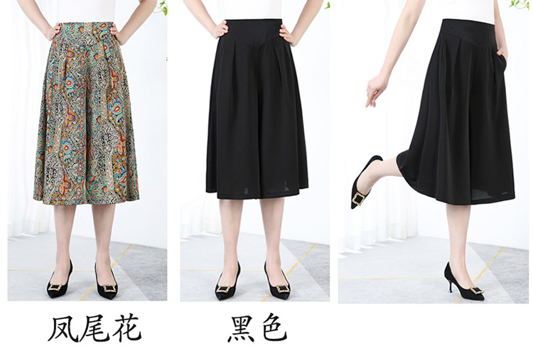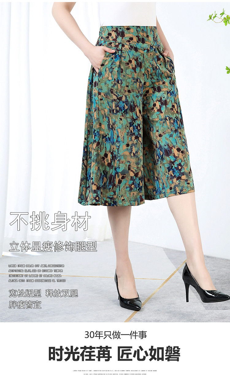 夏天中老年裙裤阔腿裤妈妈裤夏季薄款中年女裤七分裤松紧宽松大码