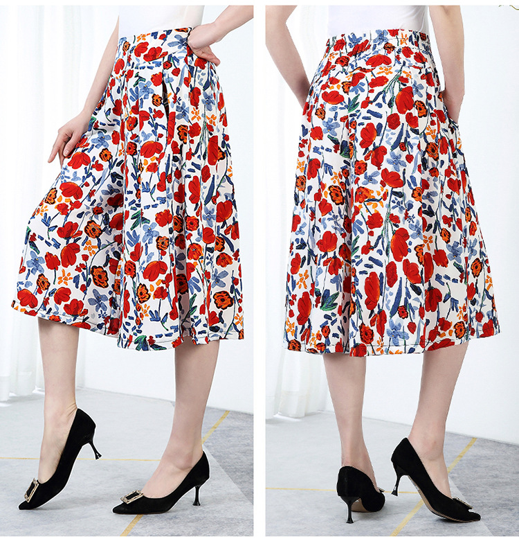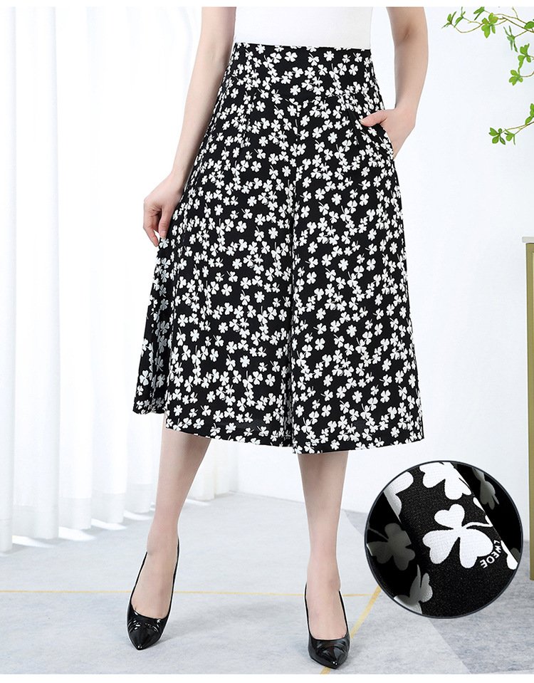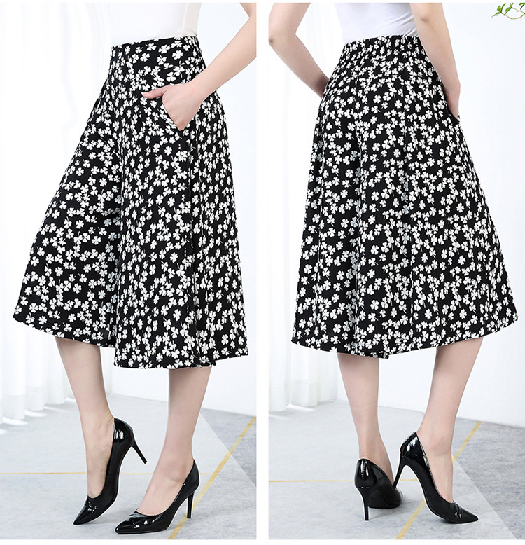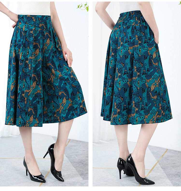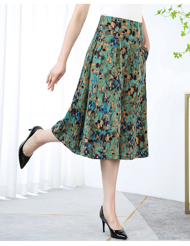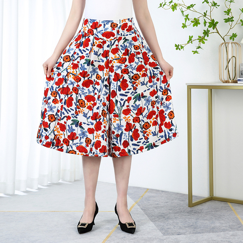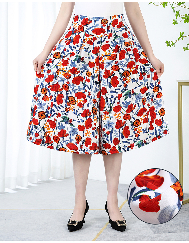 夏天中老年裙裤阔腿裤妈妈裤夏季薄款中年女裤七分裤松紧宽松大码