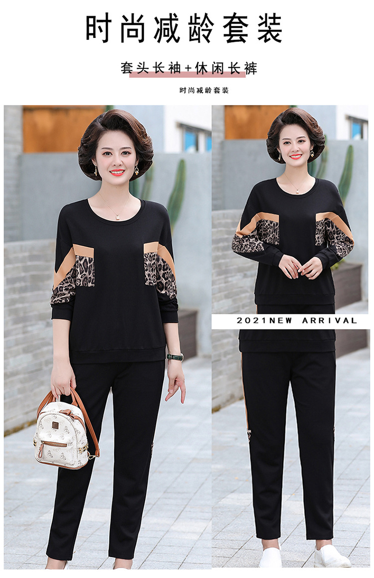 中老年运动服套装女春秋两件套2023新款洋气T恤中年妈妈春装卫衣