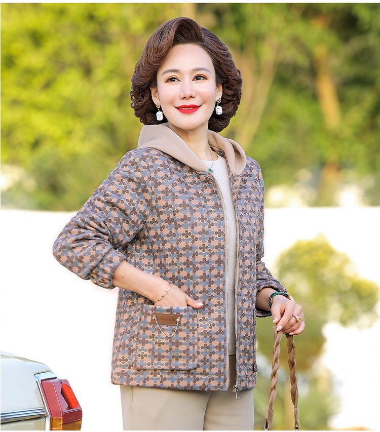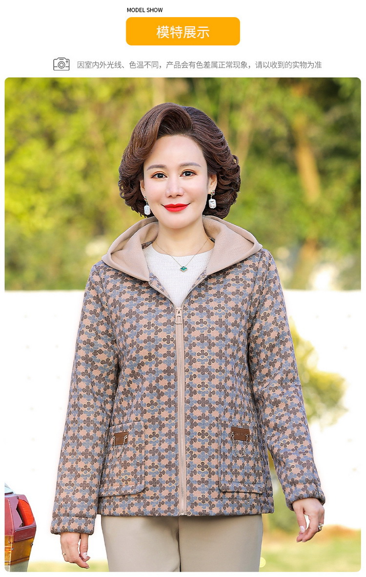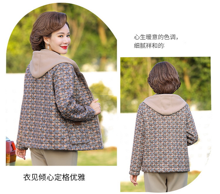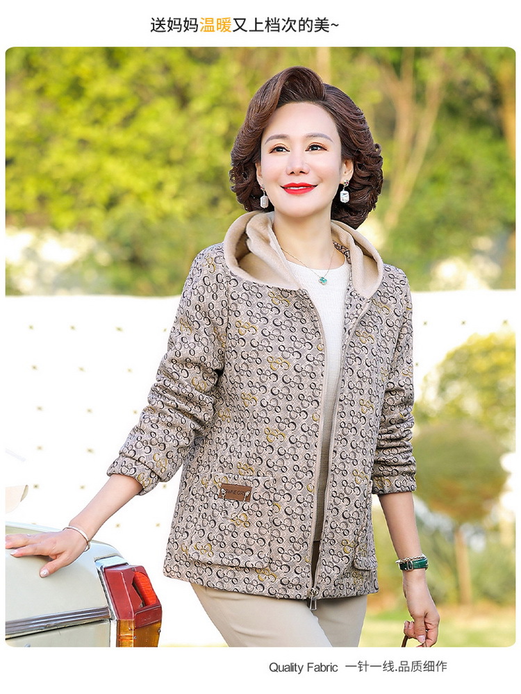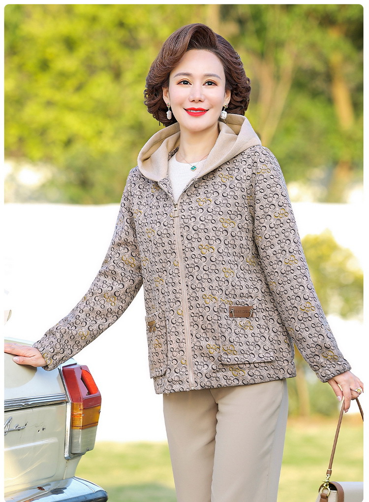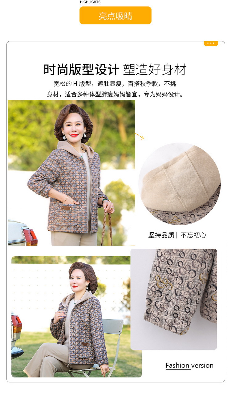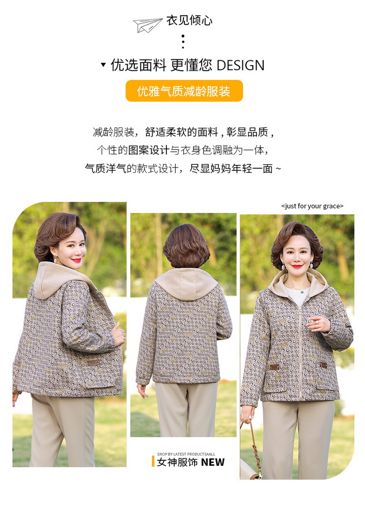 妈妈春装外套2023新款洋气中年女装春秋连帽短款休闲宽松夹克上衣