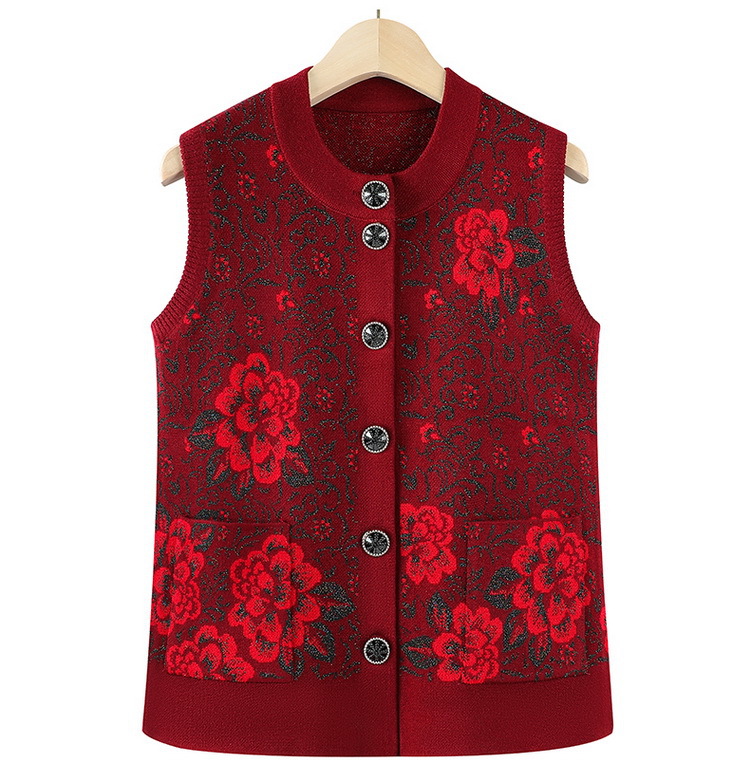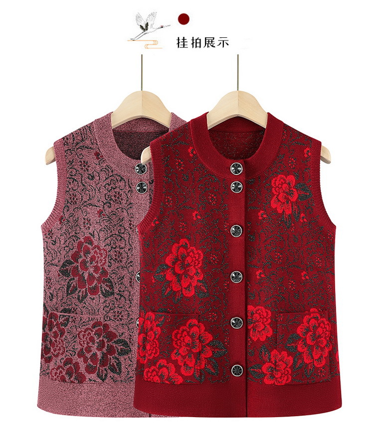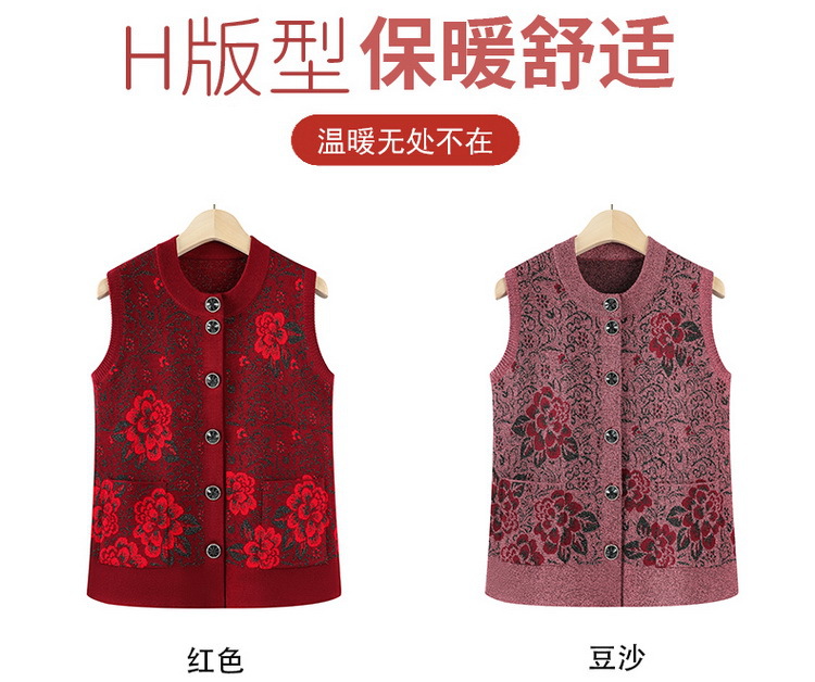 中老年人马甲毛衣春秋坎肩针织衫老人背心奶奶春装开衫马夹外套女