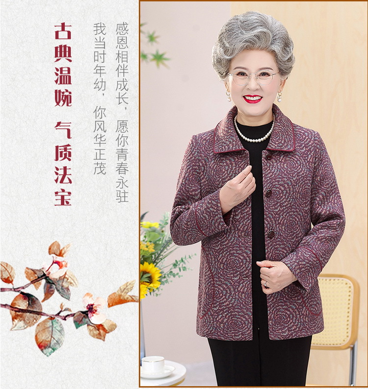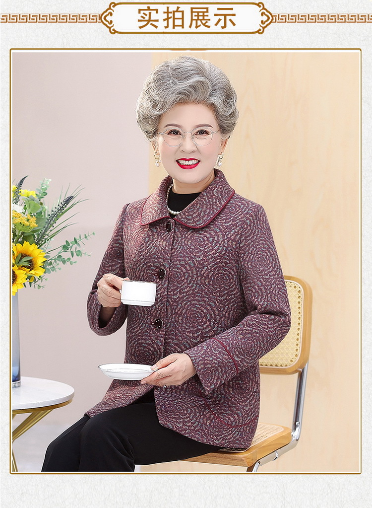 中老年人春装女奶奶装外套60岁70老太太衣服妈妈春秋翻领洋气上衣