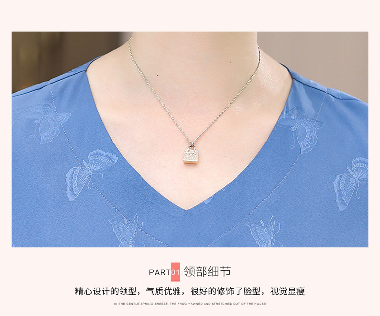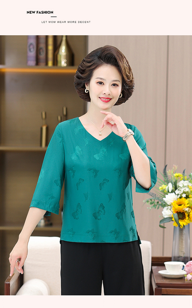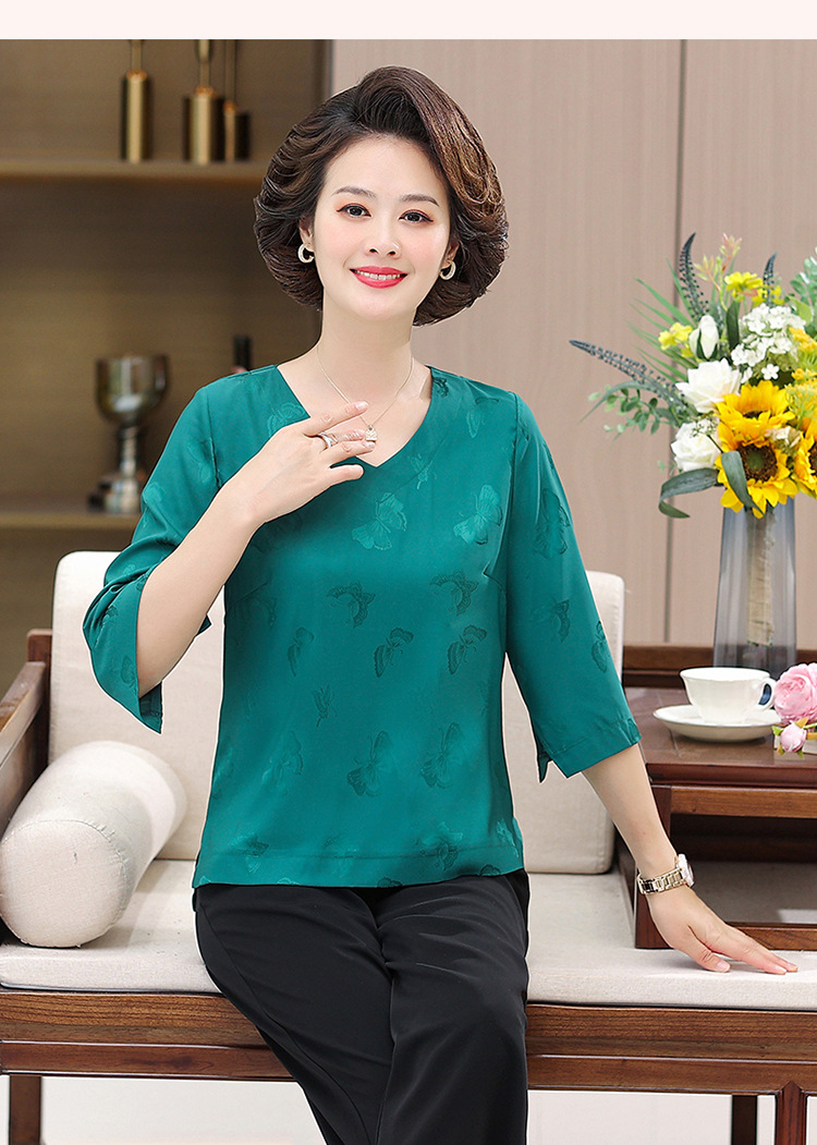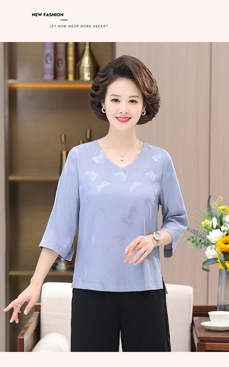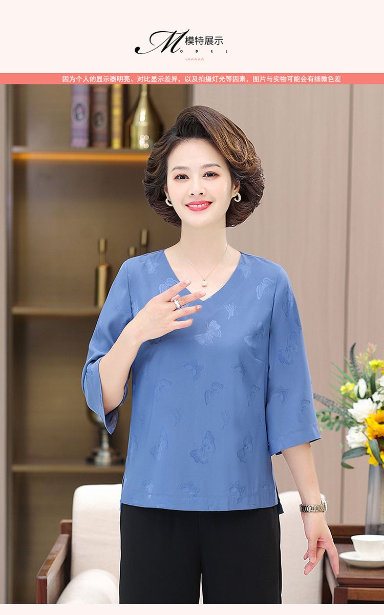 新款妈妈夏装中袖t恤中老年仿真丝上衣女时尚洋气宽松50岁60小衫