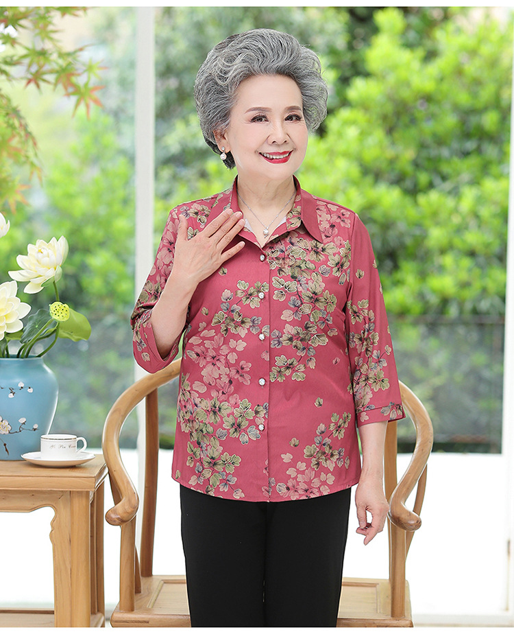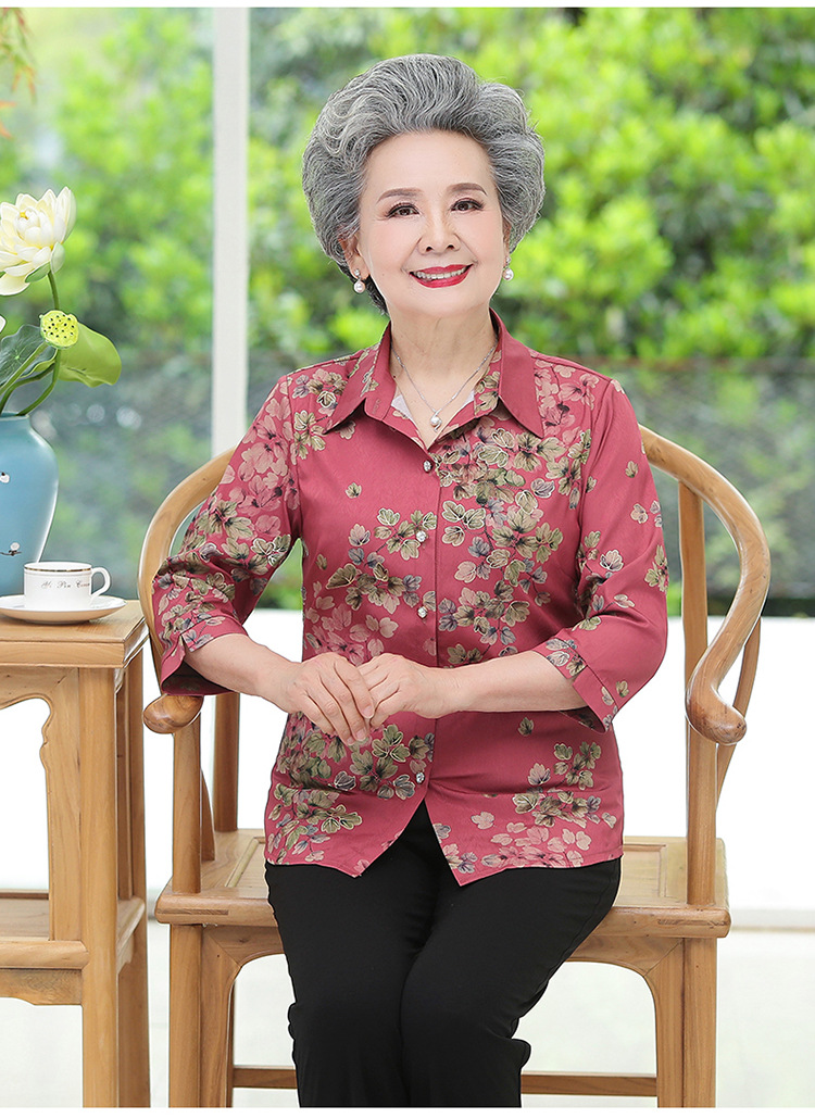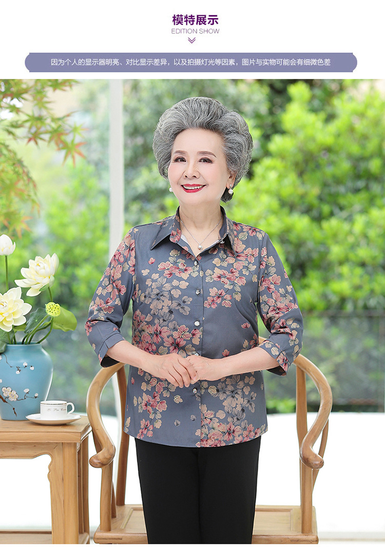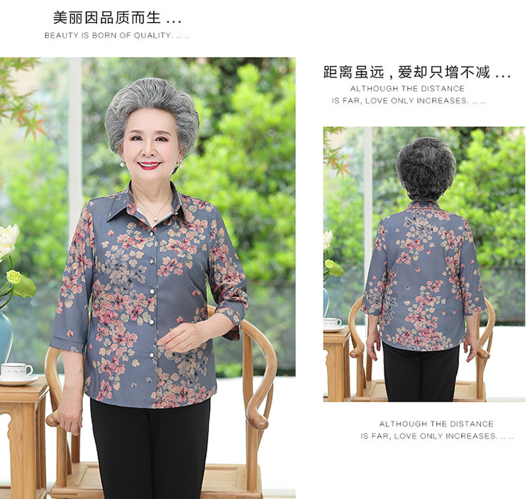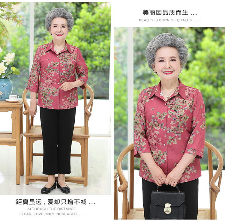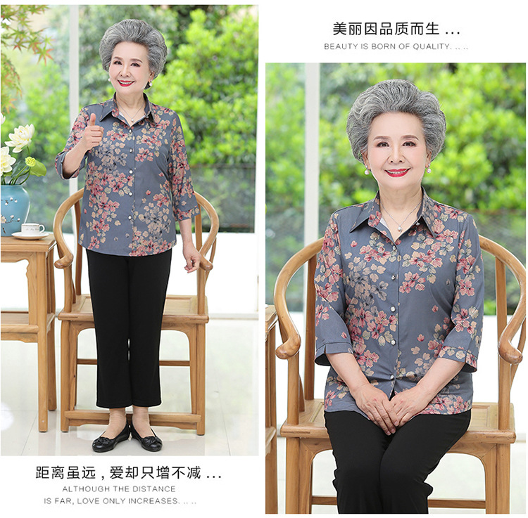 老年人夏装女奶奶中袖衬衫70岁妈妈七分袖衬衣开衫老太太夏季套装