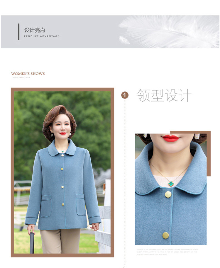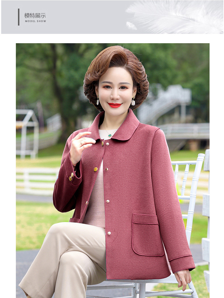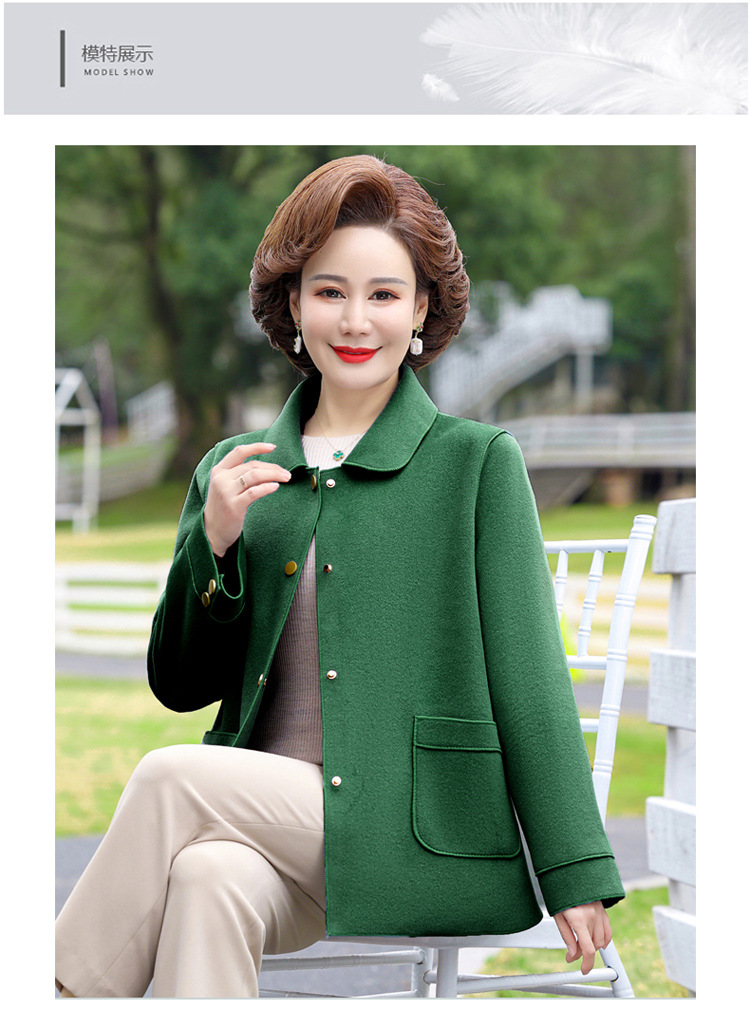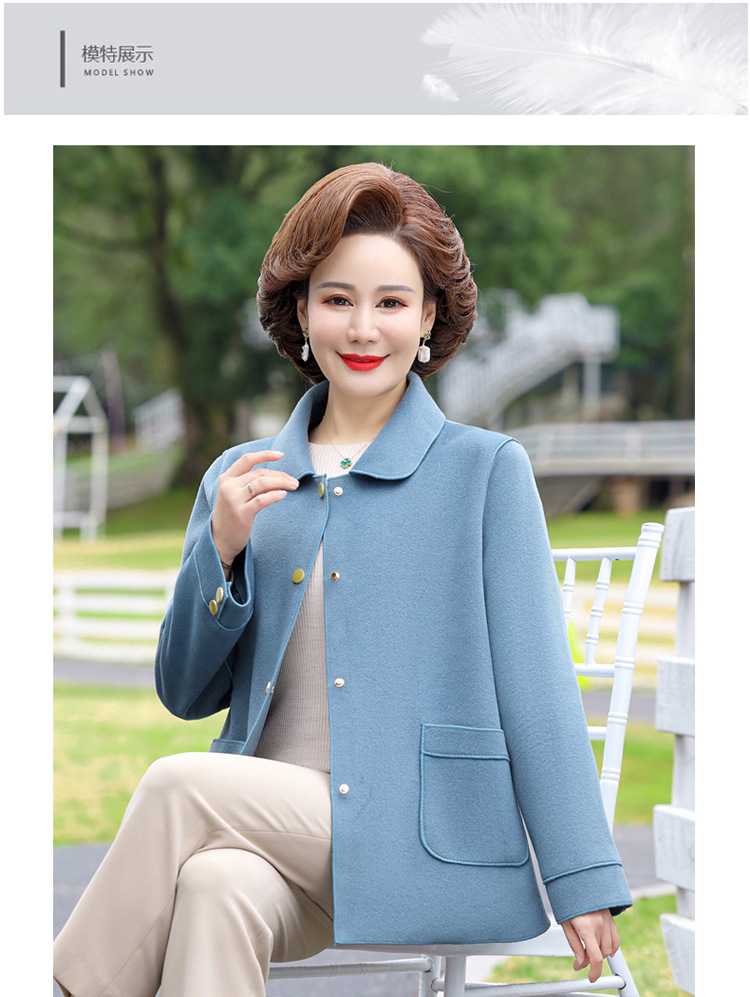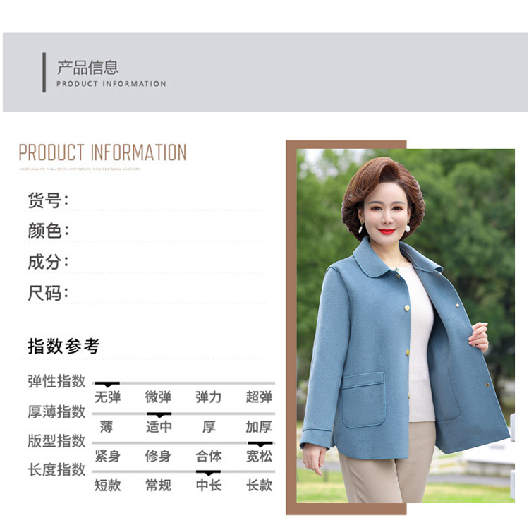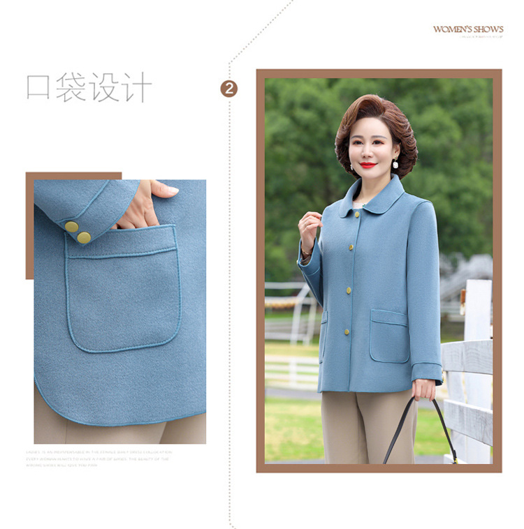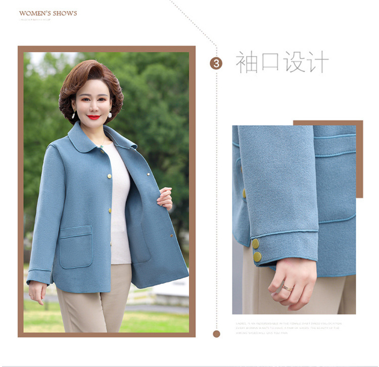 中年妈妈春装洋气新款双面呢大衣短款40岁50中老年人春秋毛呢外套