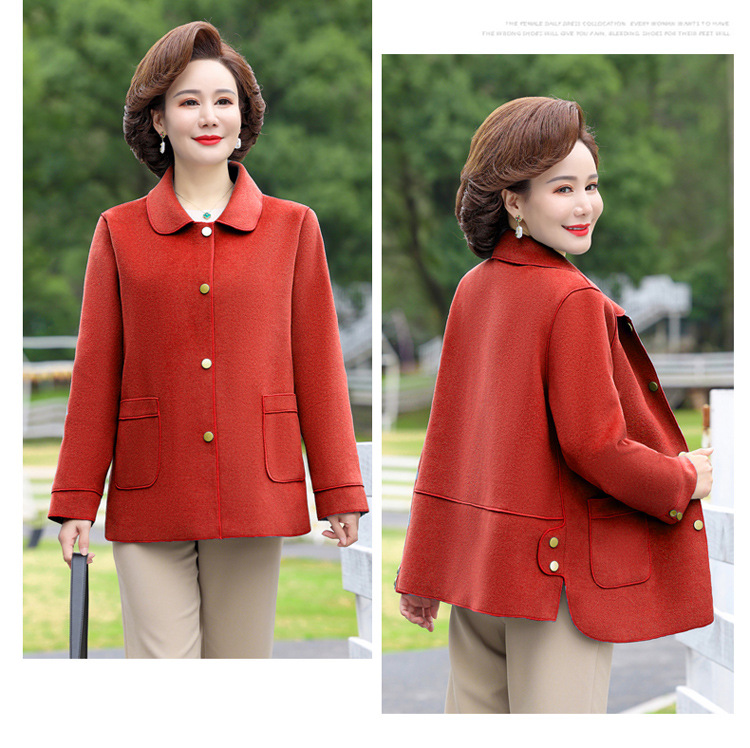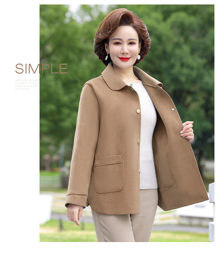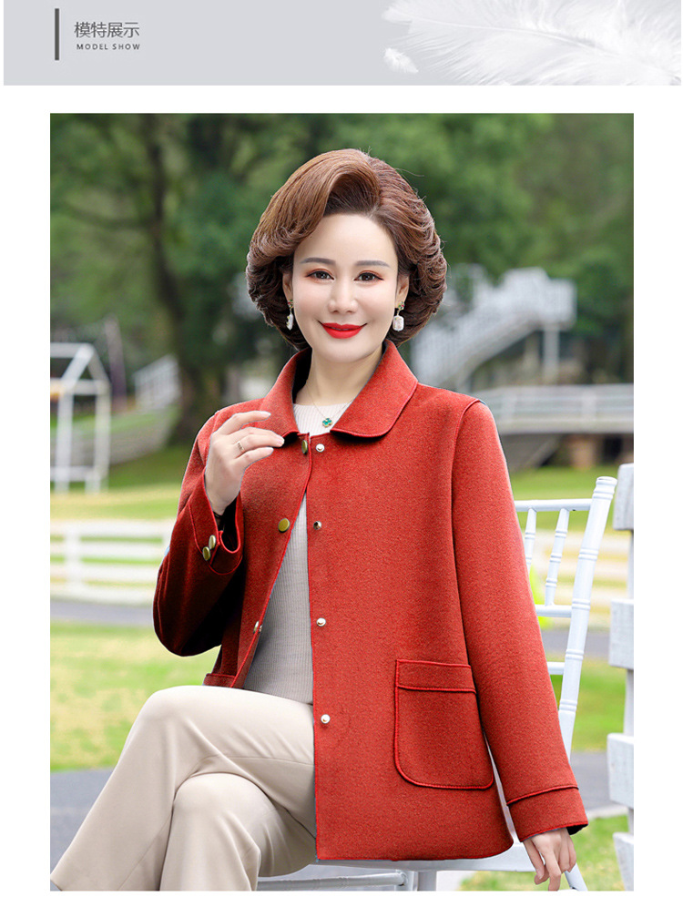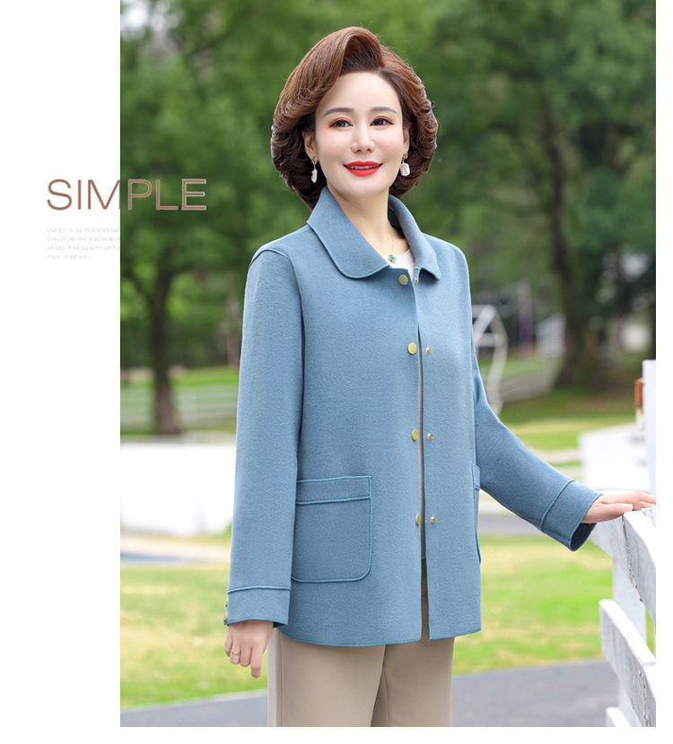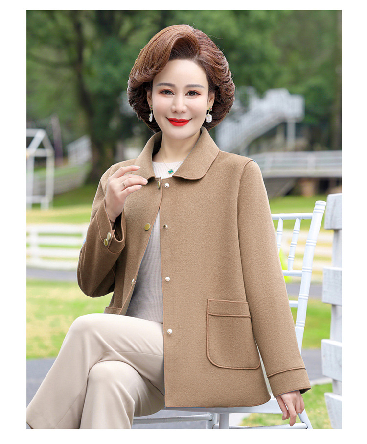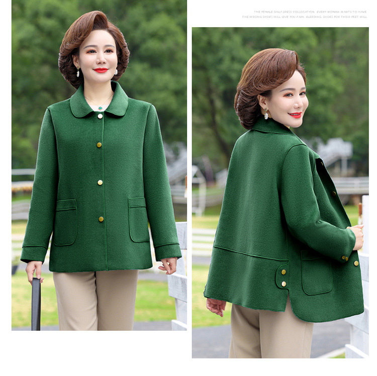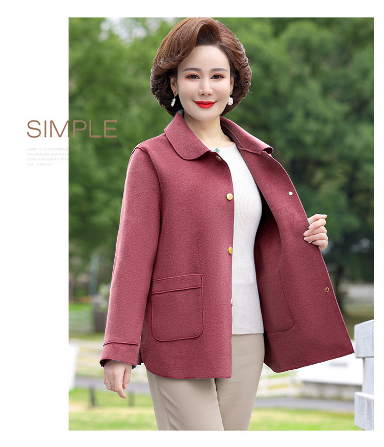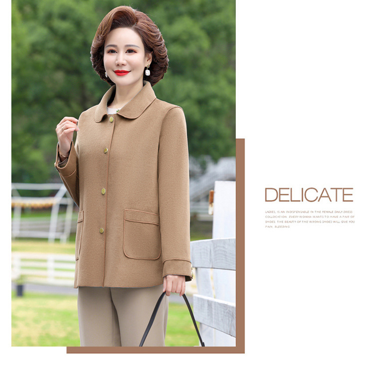 中年妈妈春装洋气新款双面呢大衣短款40岁50中老年人春秋毛呢外套