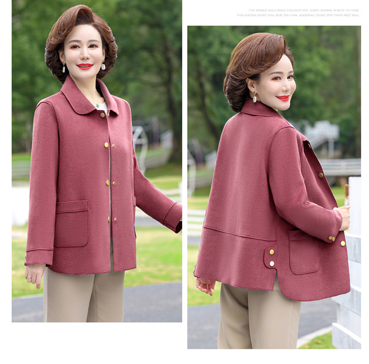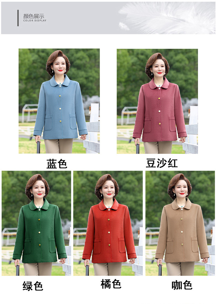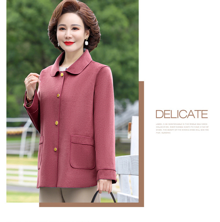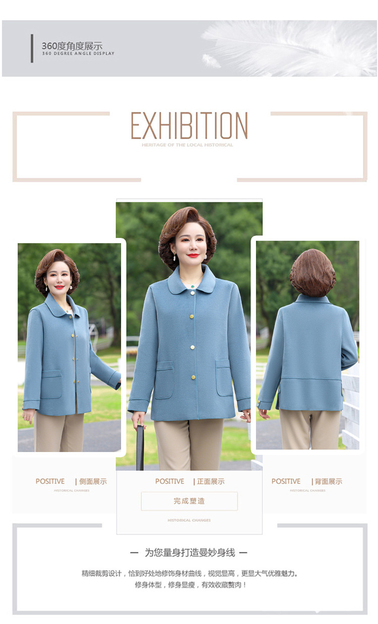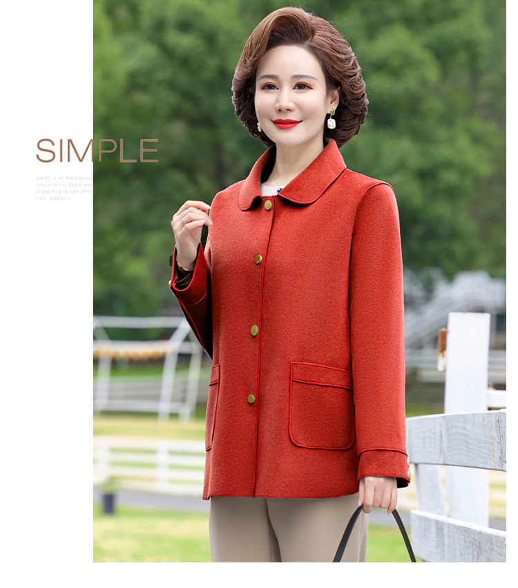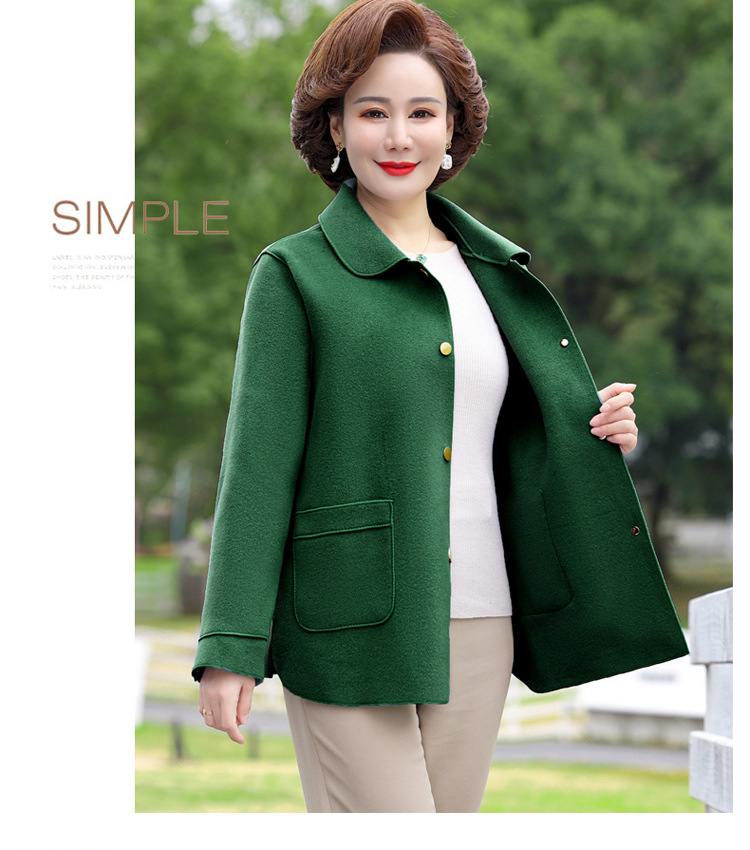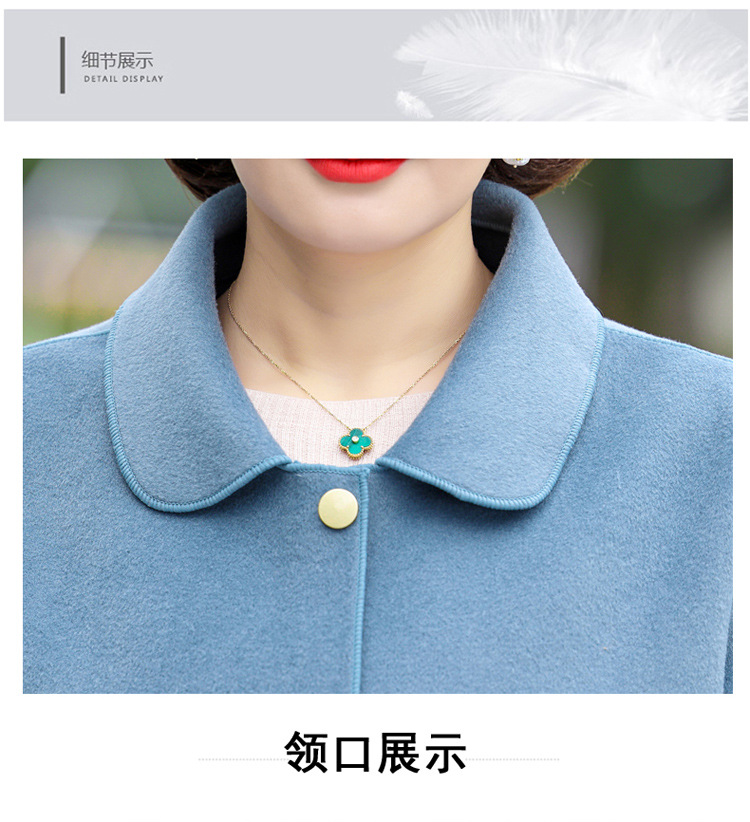 中年妈妈春装洋气新款双面呢大衣短款40岁50中老年人春秋毛呢外套