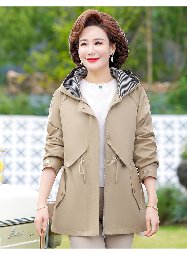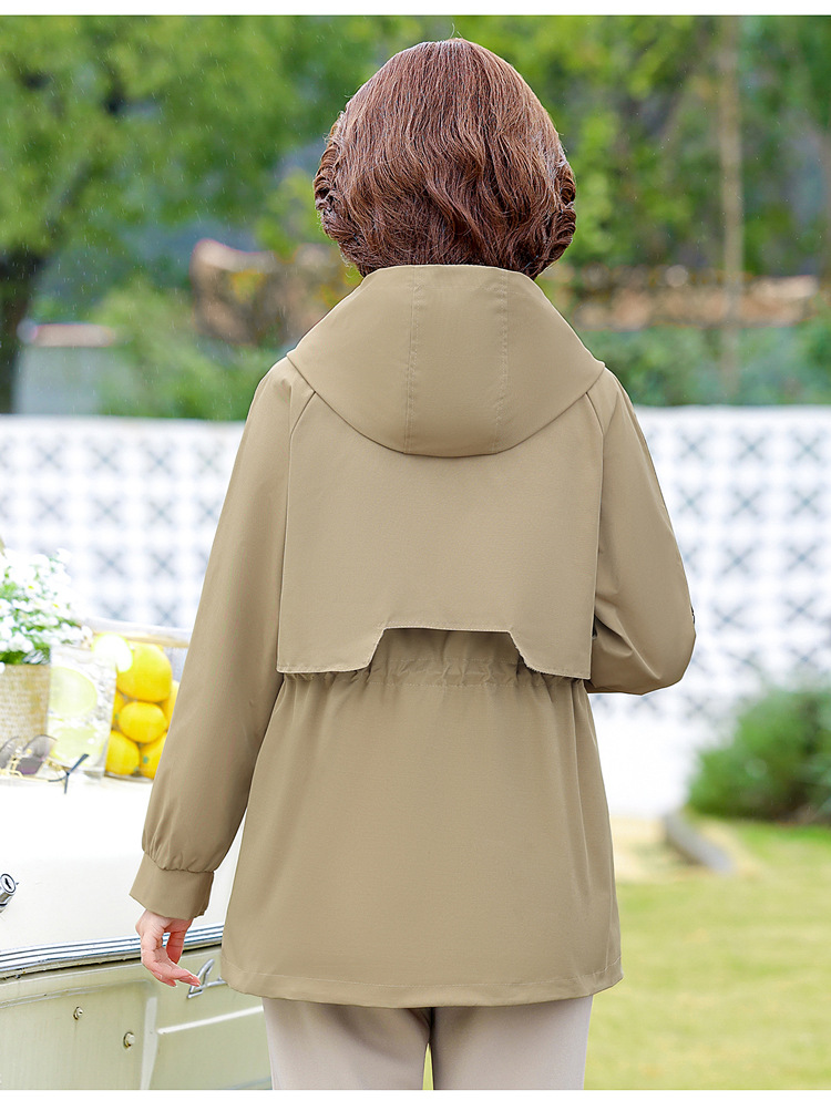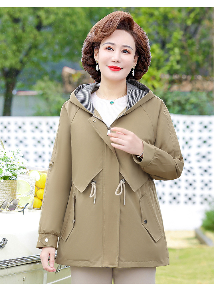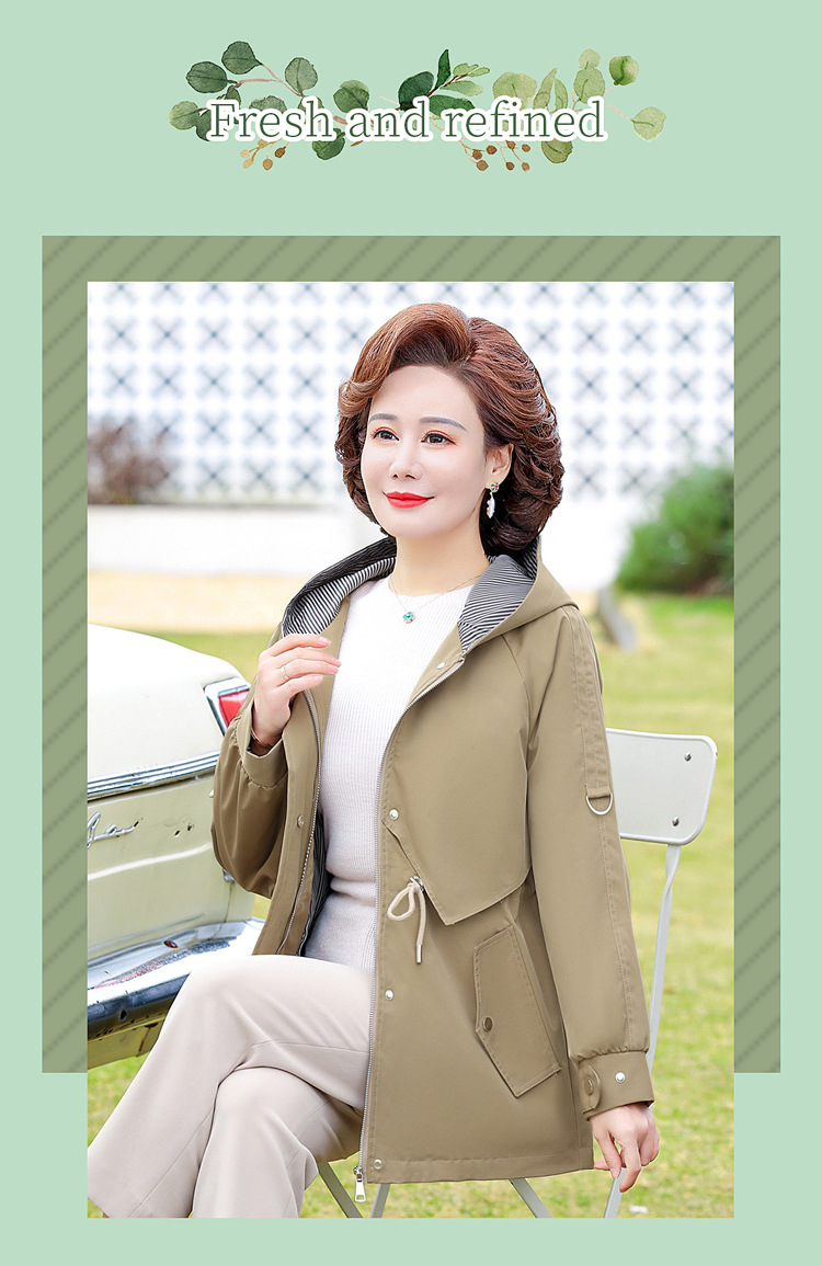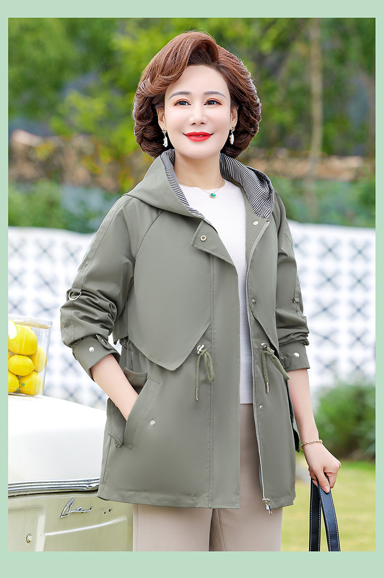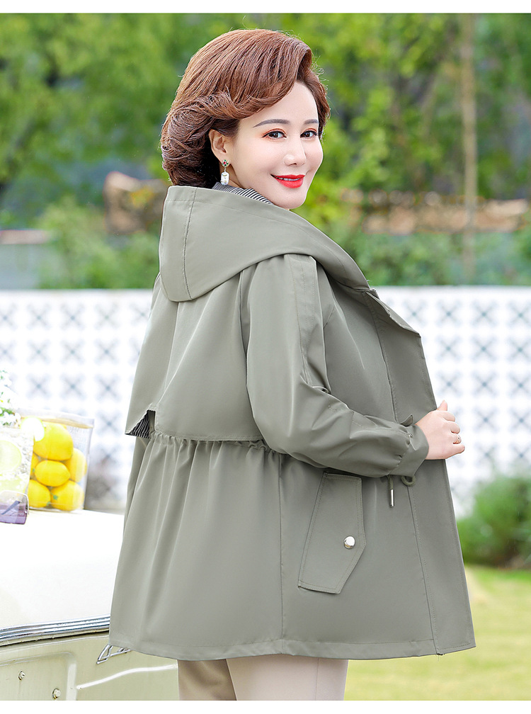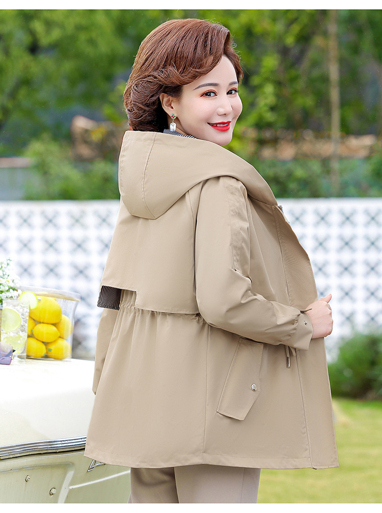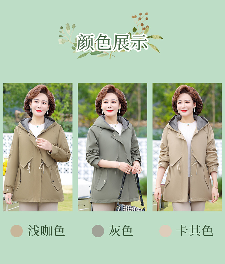 妈妈春装外套短款中年妇女休闲连帽上衣2023新款中老年女春秋风衣