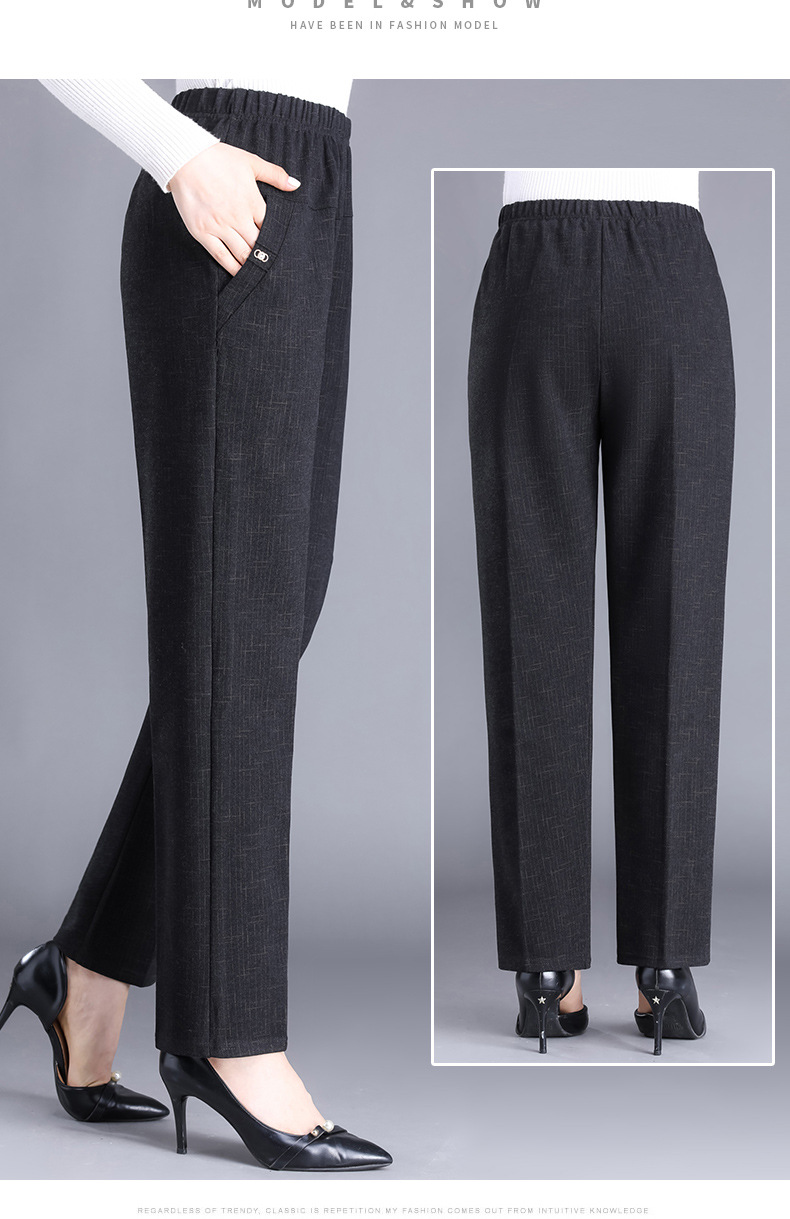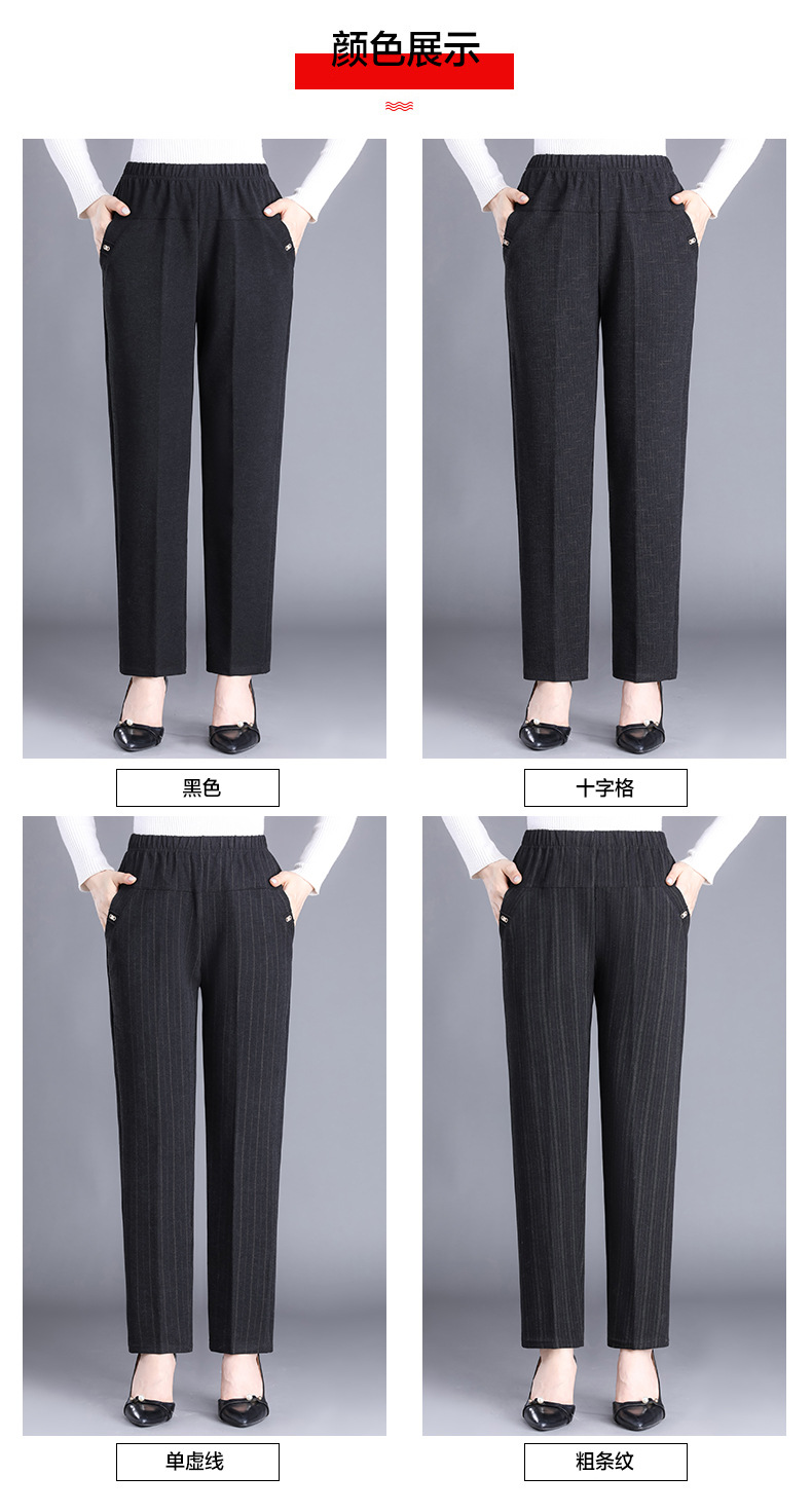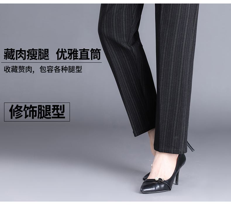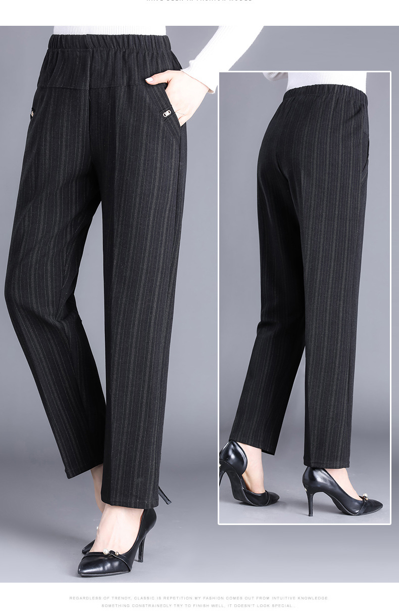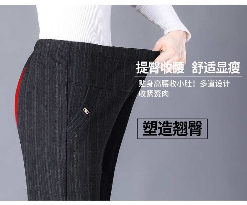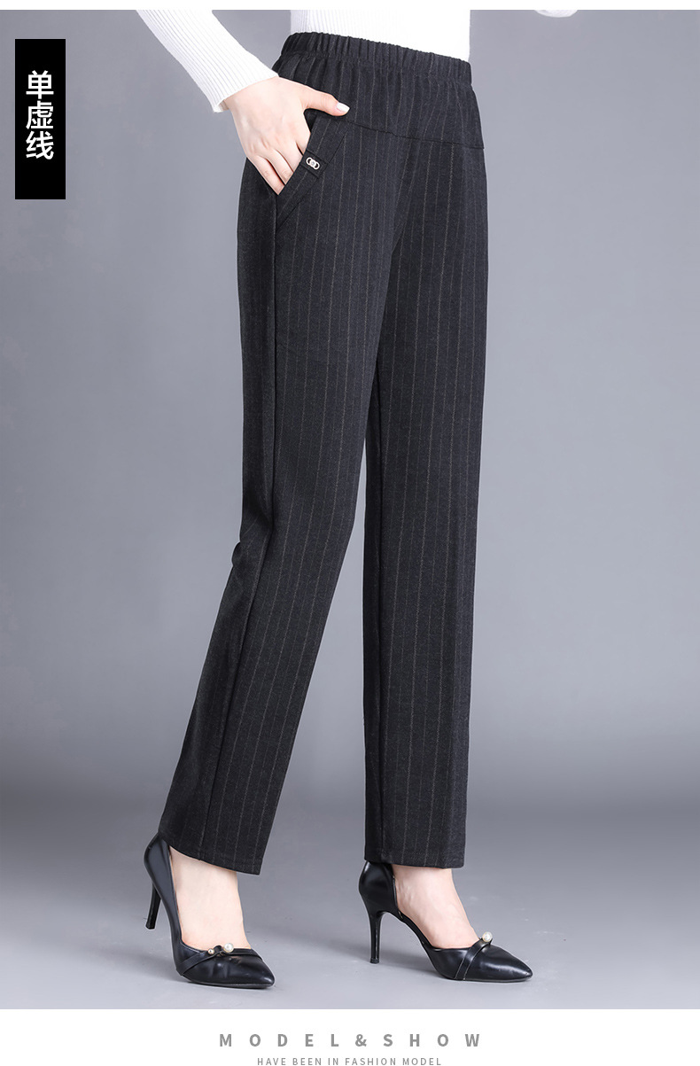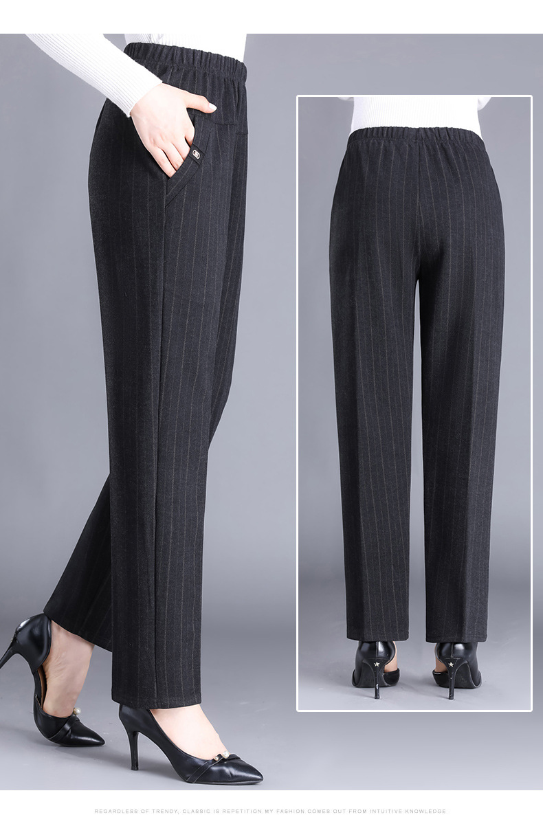 裤子女条纹厚款2023春秋中老年女装直筒长裤高腰宽松休闲妈妈裤子