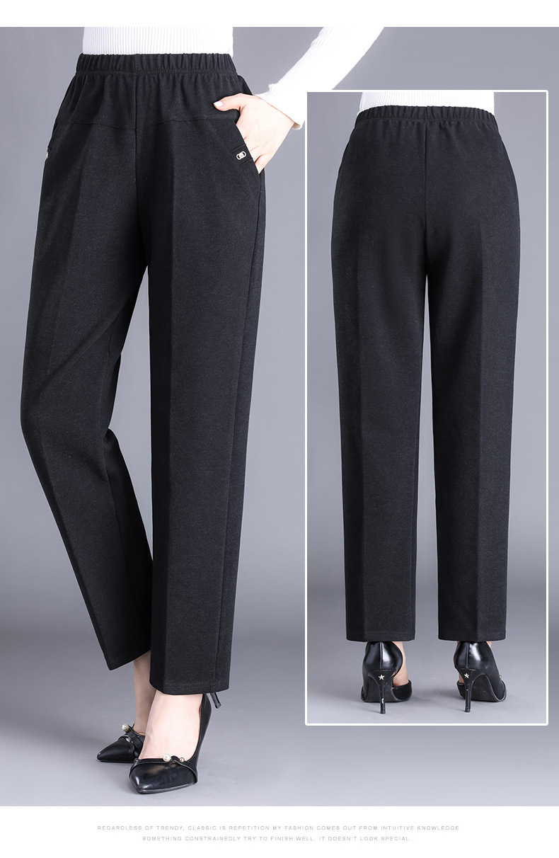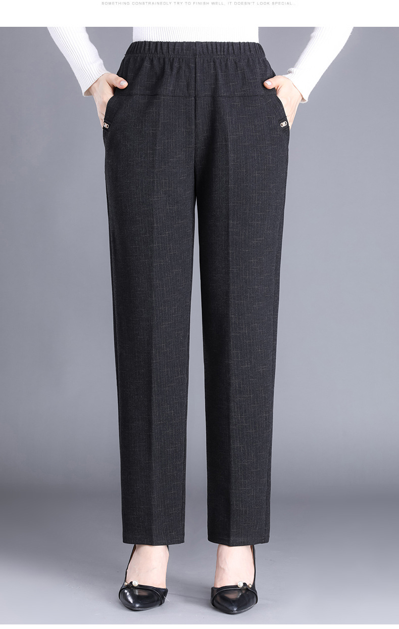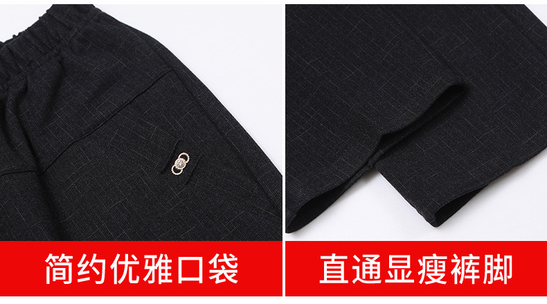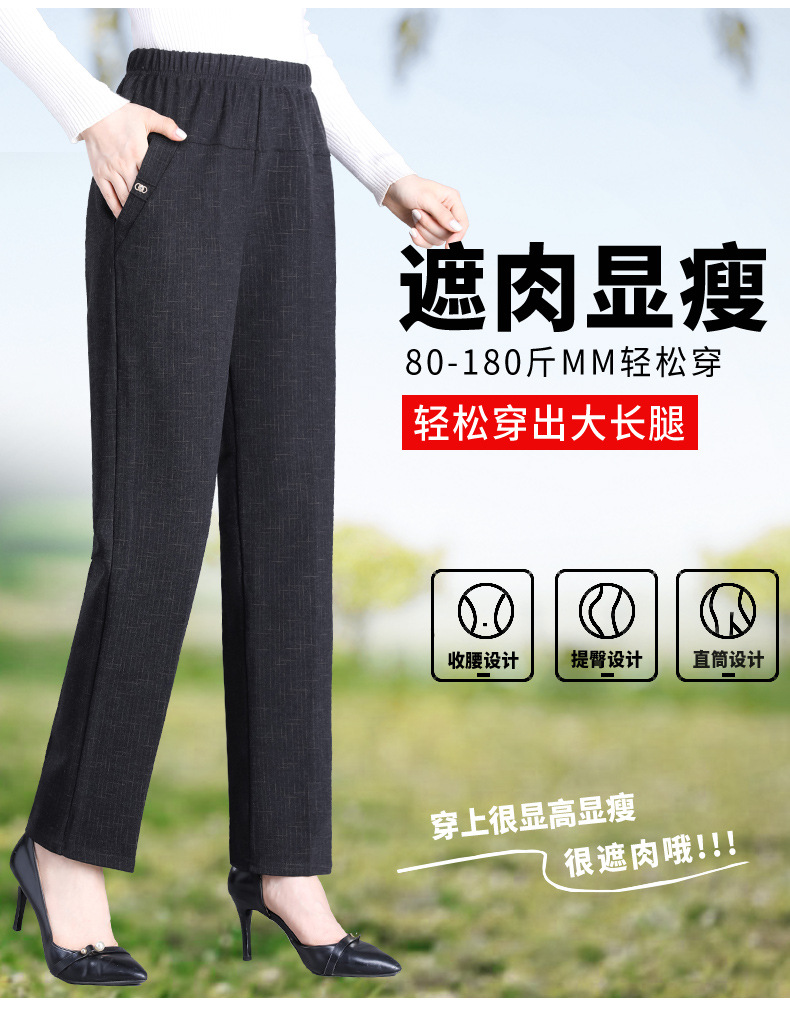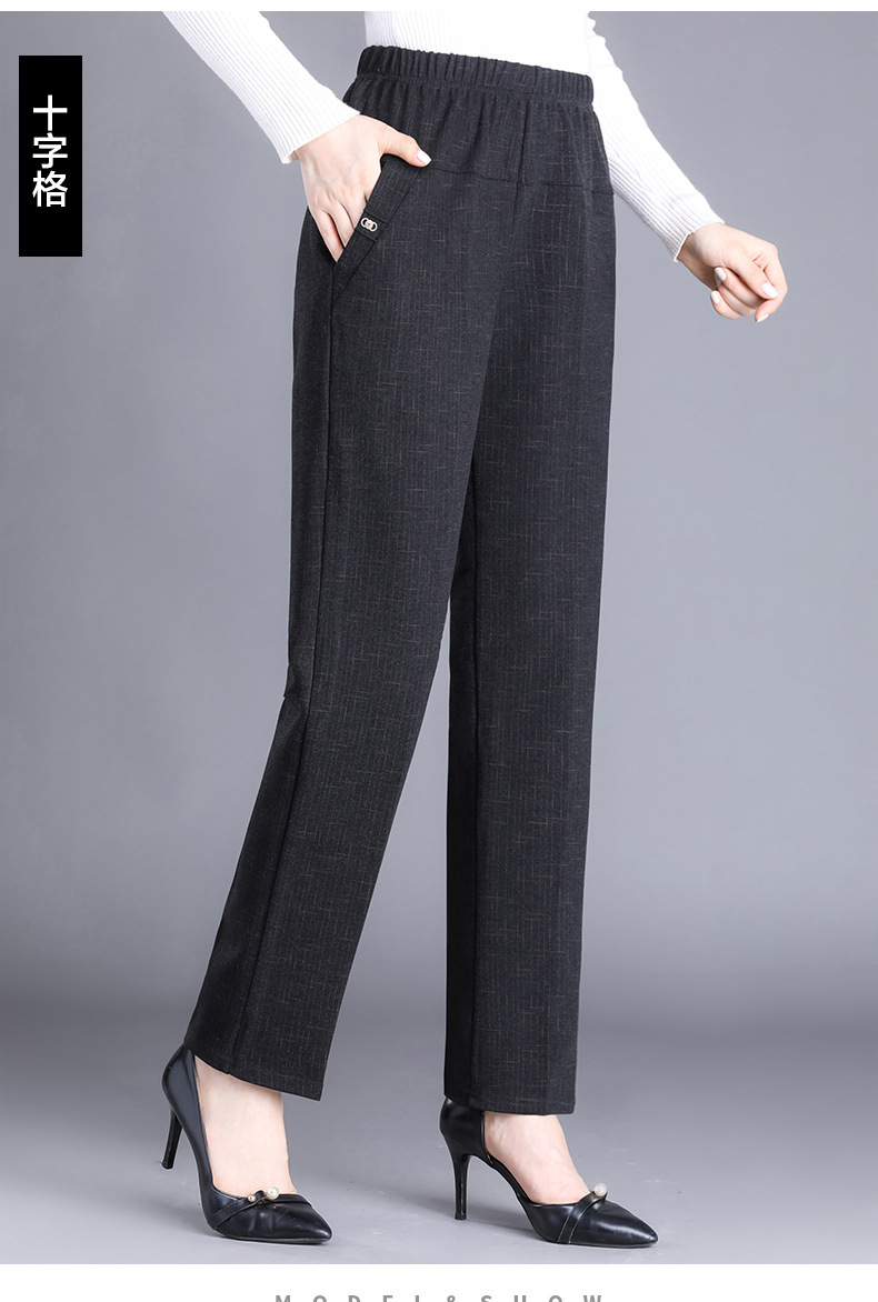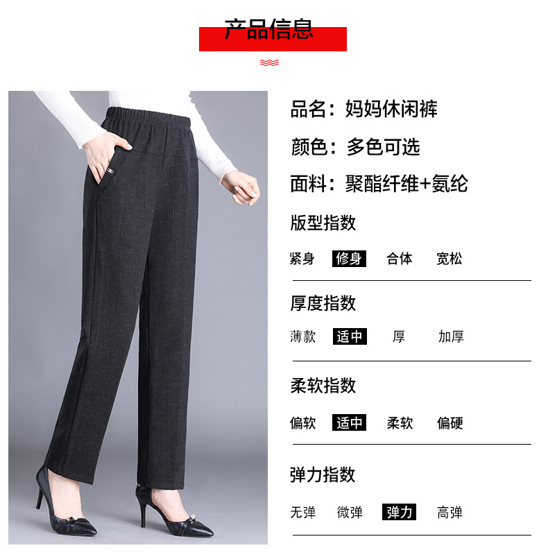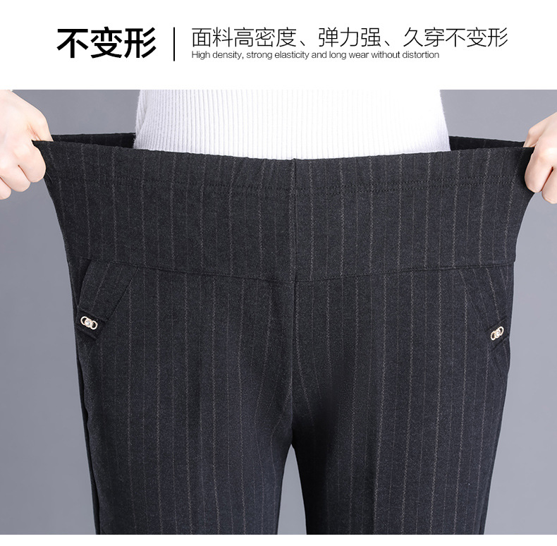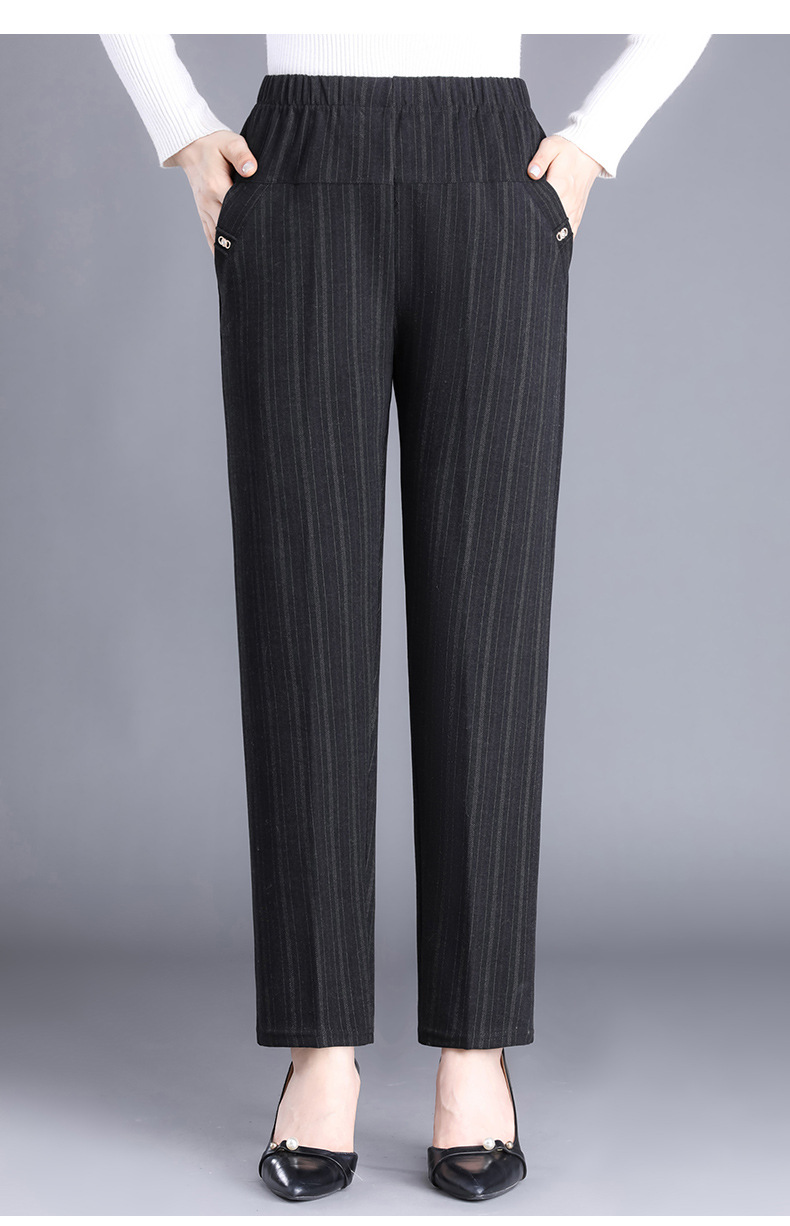 裤子女条纹厚款2023春秋中老年女装直筒长裤高腰宽松休闲妈妈裤子