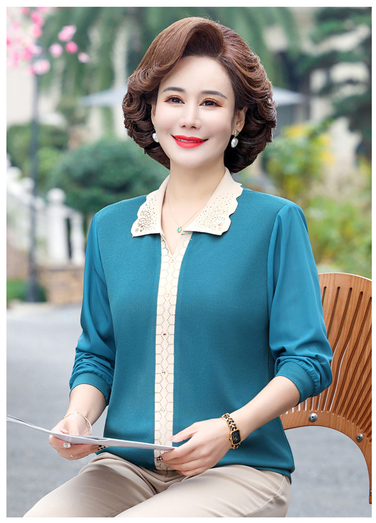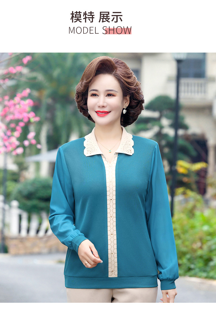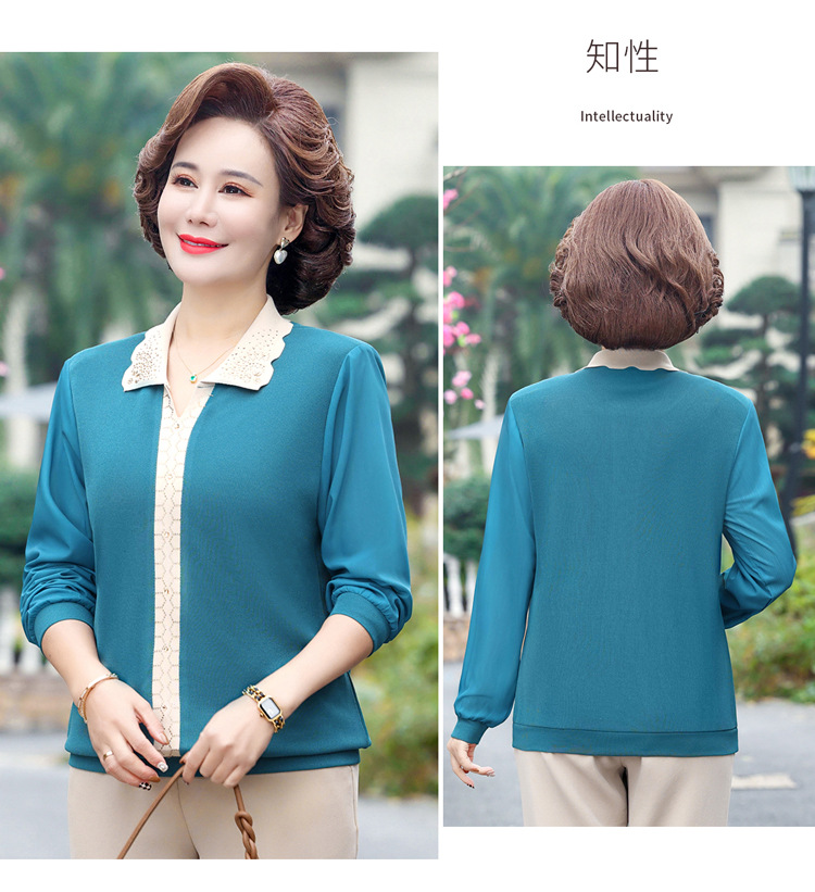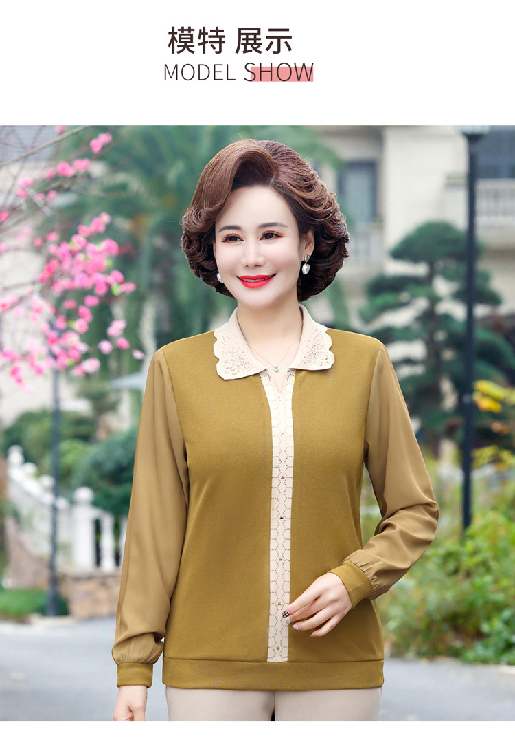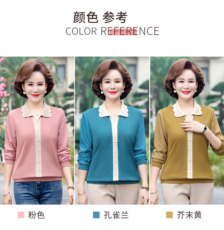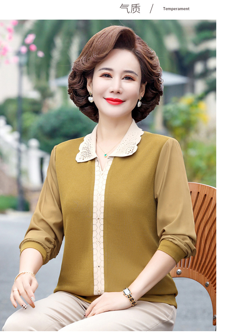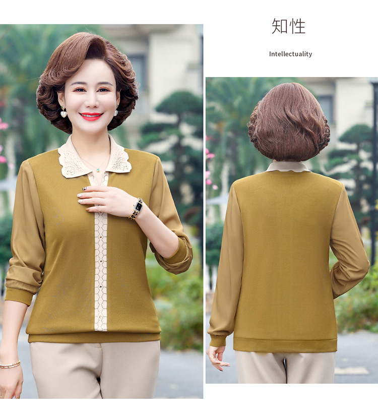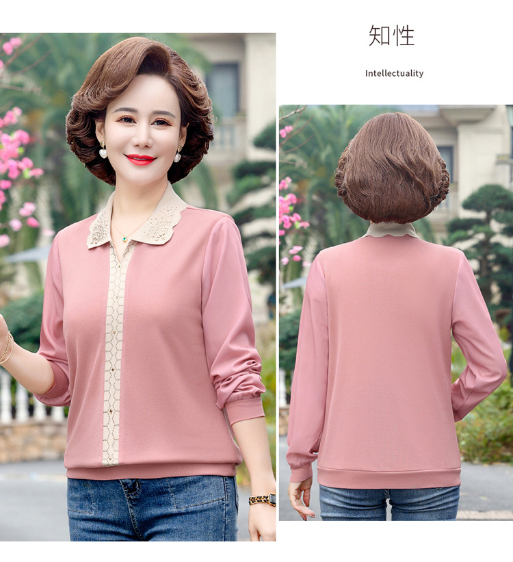 50岁妈妈春装长袖T恤洋气小衫2023新款中老年妇女春秋针织打底衫