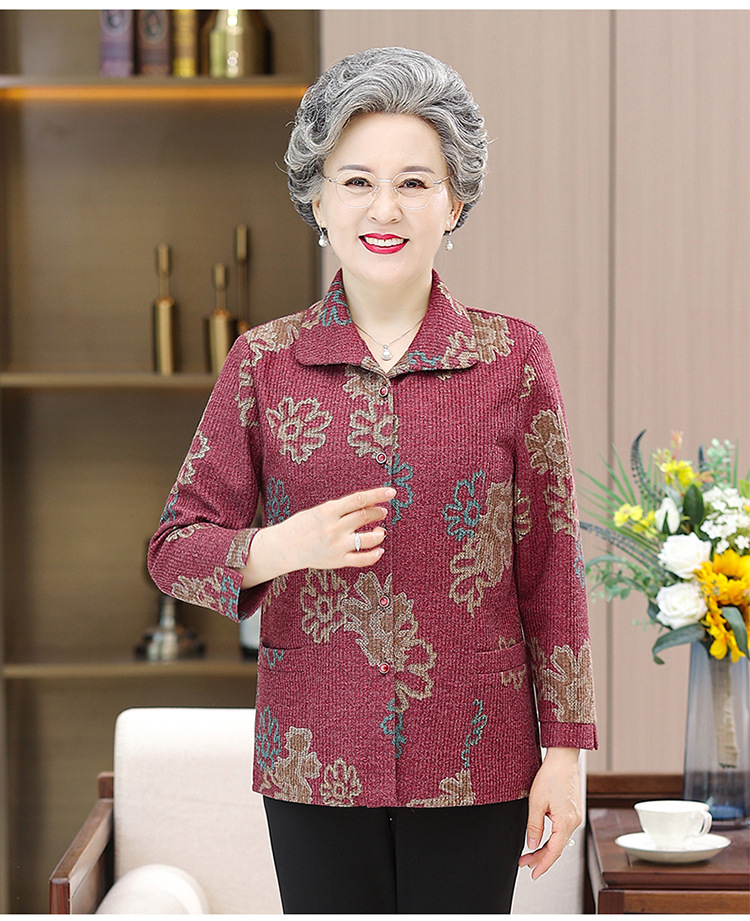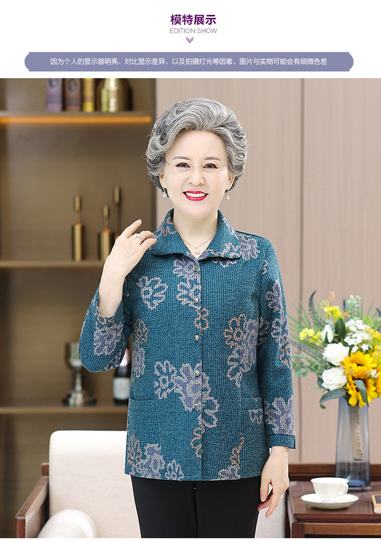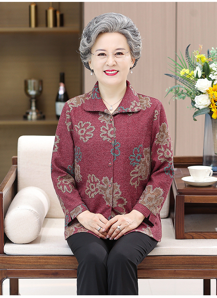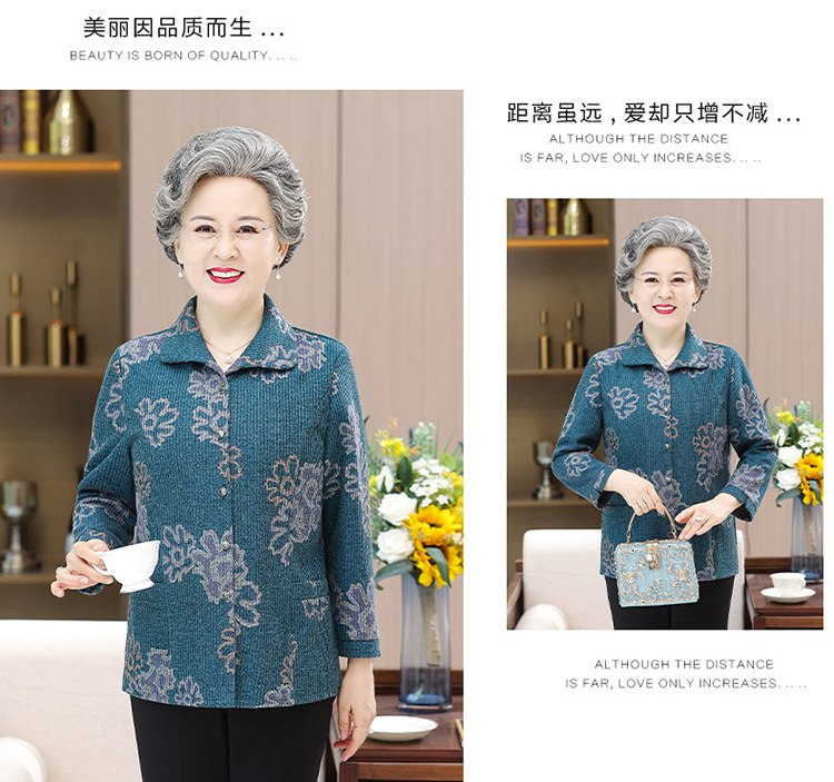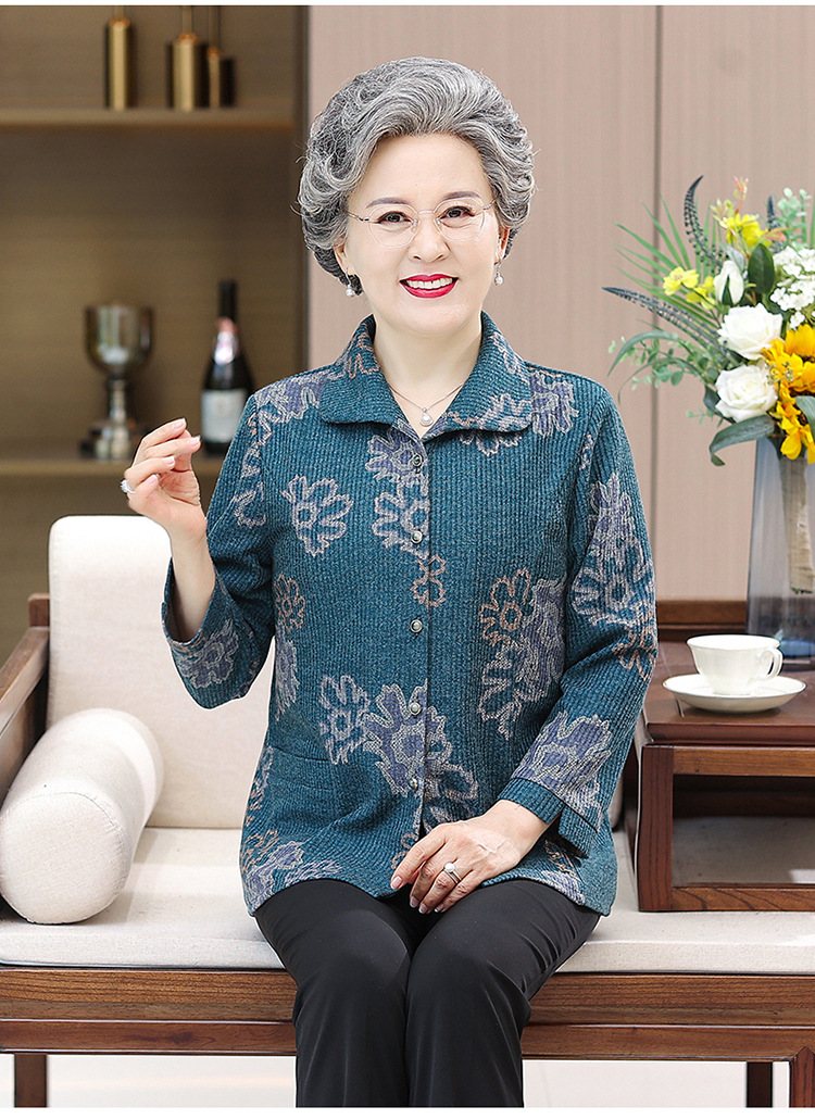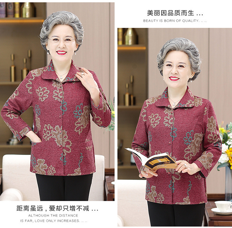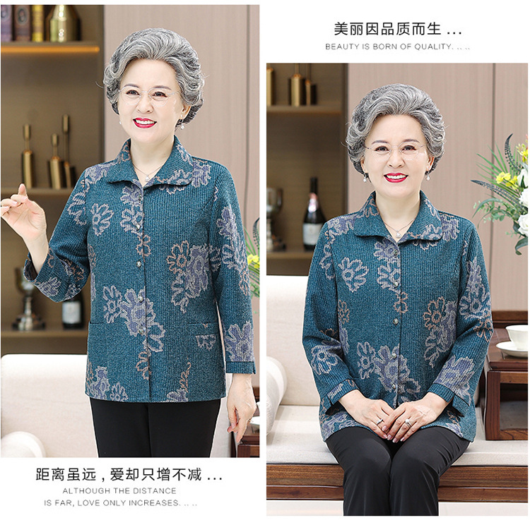 奶奶装长袖厚衬衫中老年人春秋装女妈妈薄外套上衣太太6070岁衣服