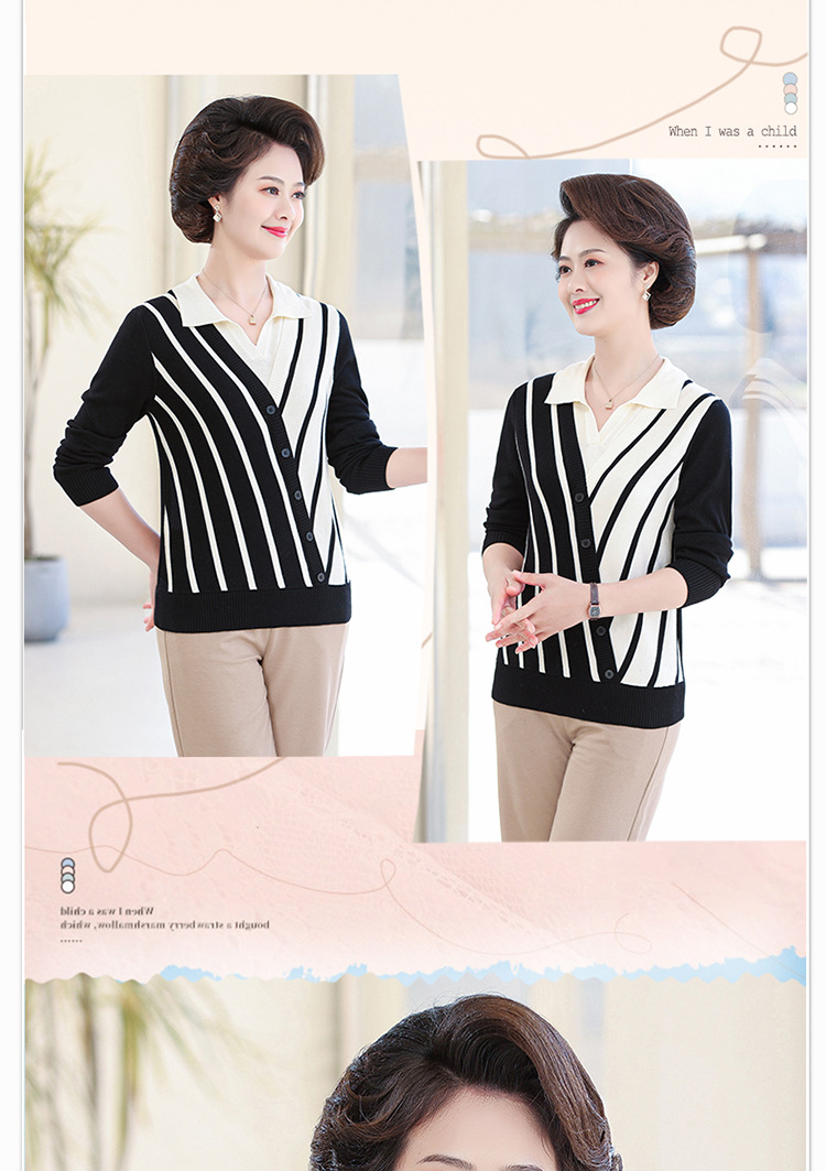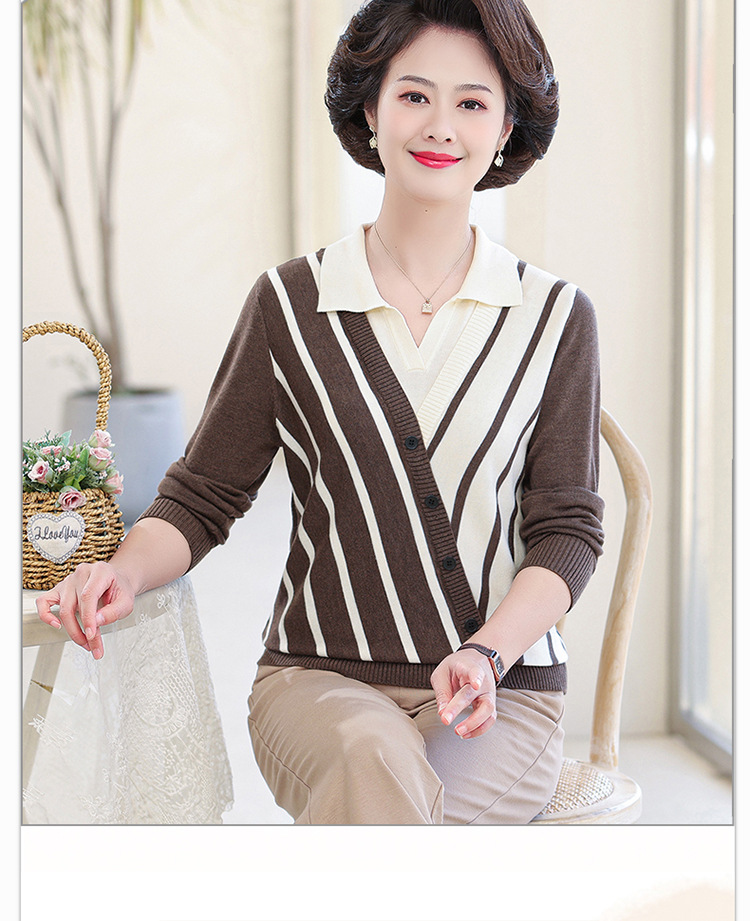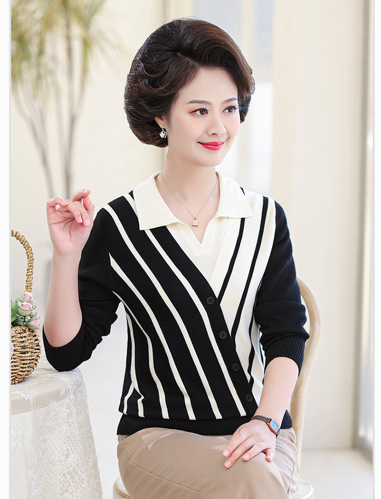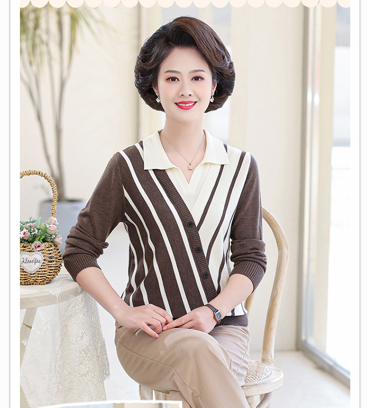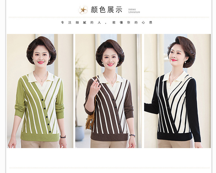 妈妈秋装洋气假两件长袖上衣中年妇女毛衣时尚薄款春秋针织打底衫