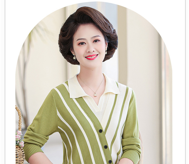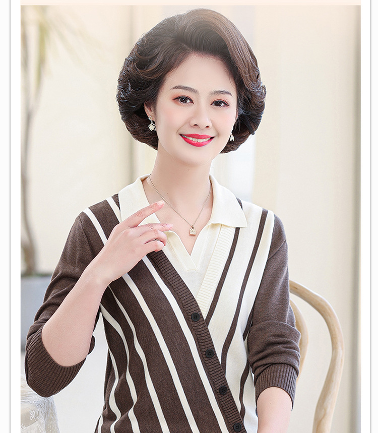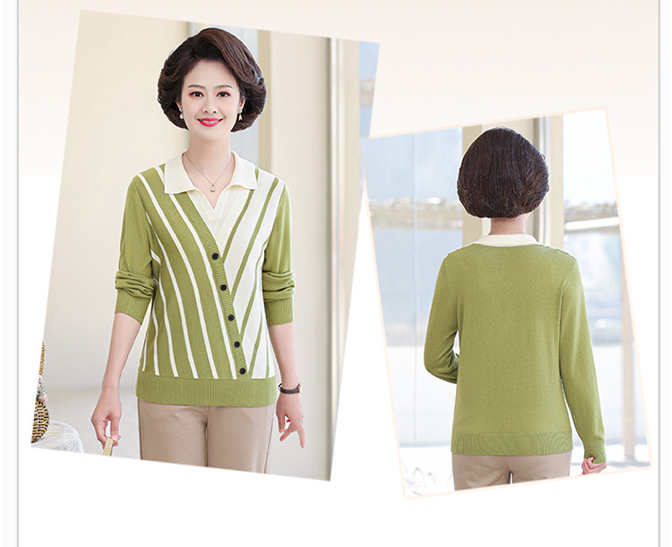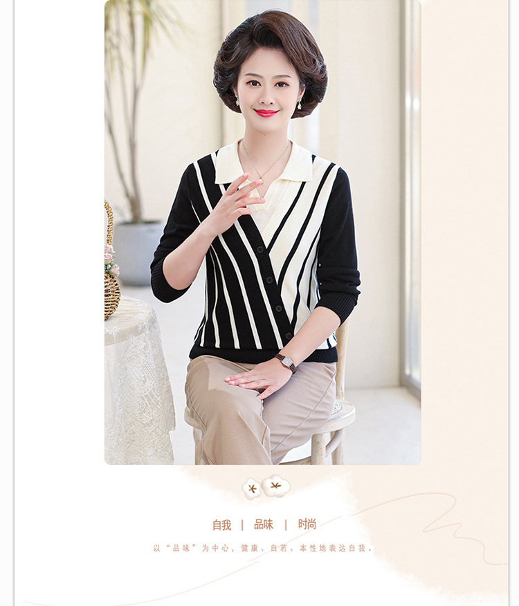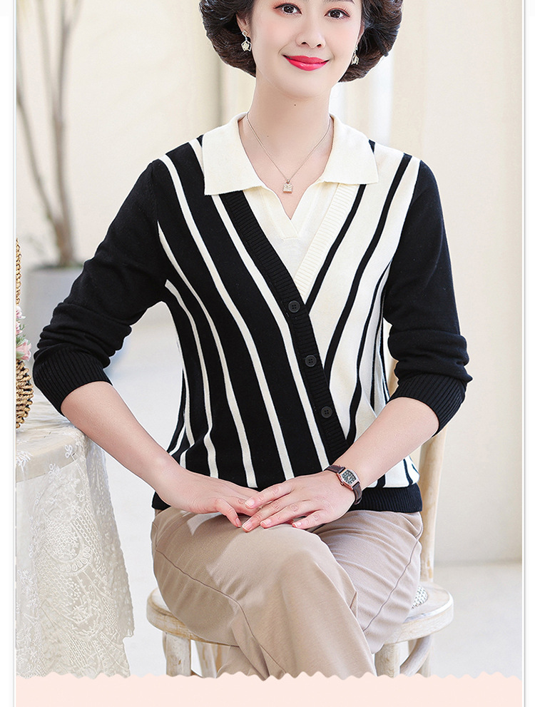 妈妈秋装洋气假两件长袖上衣中年妇女毛衣时尚薄款春秋针织打底衫