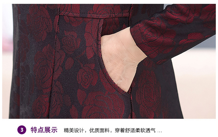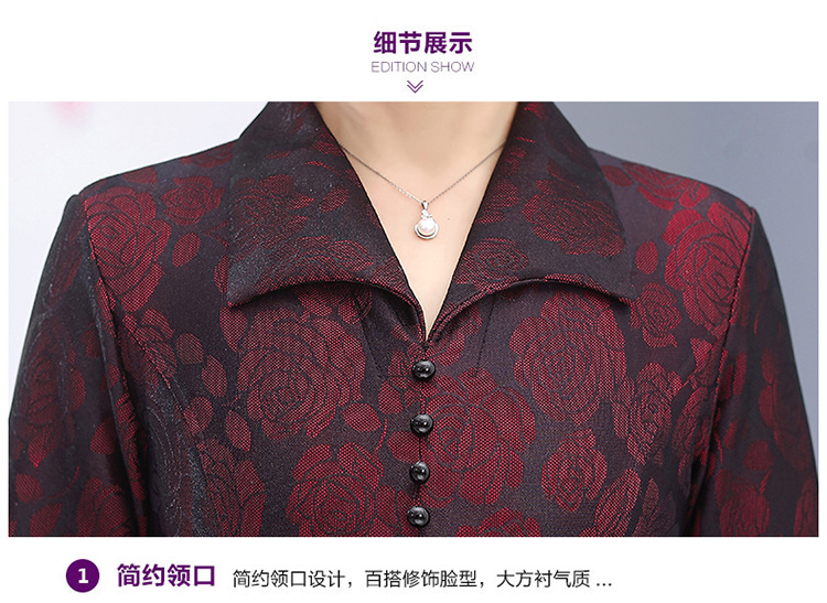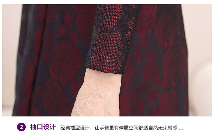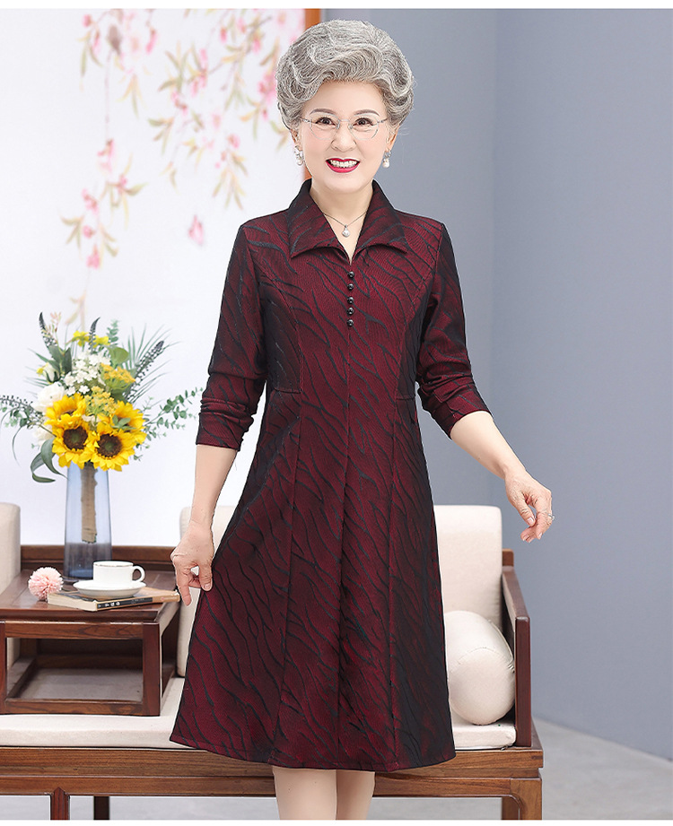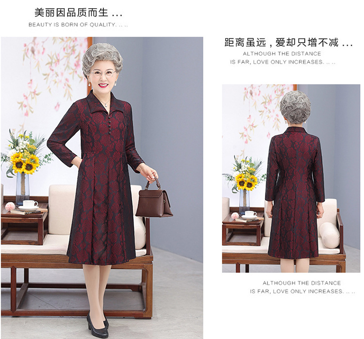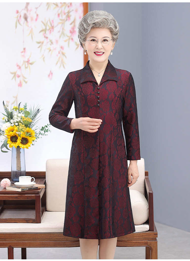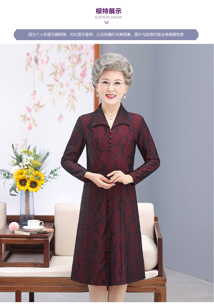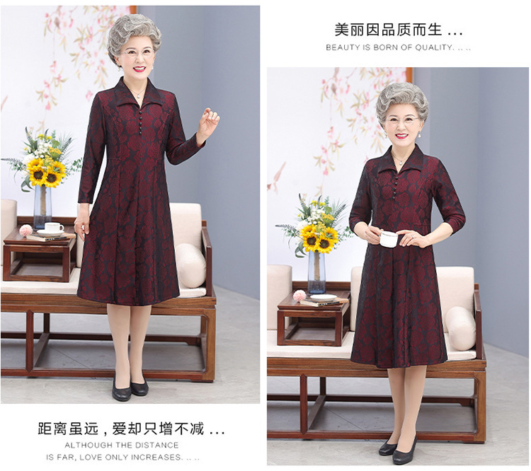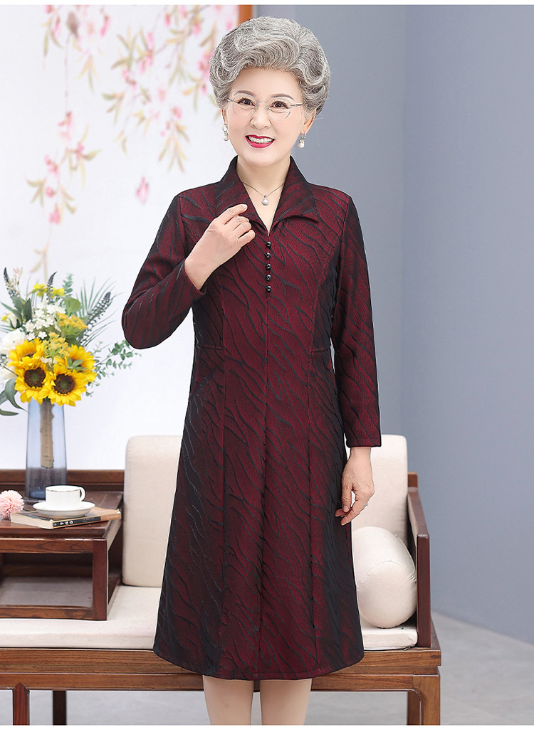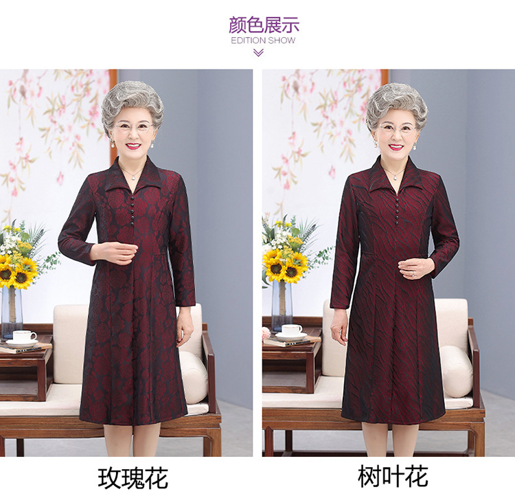中老年女装春秋长袖翻领打底裙子妈妈中长款过膝奶奶洋气连衣裙